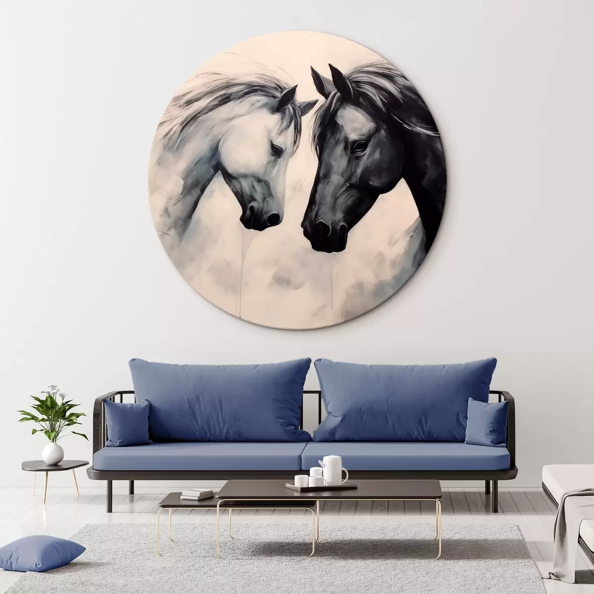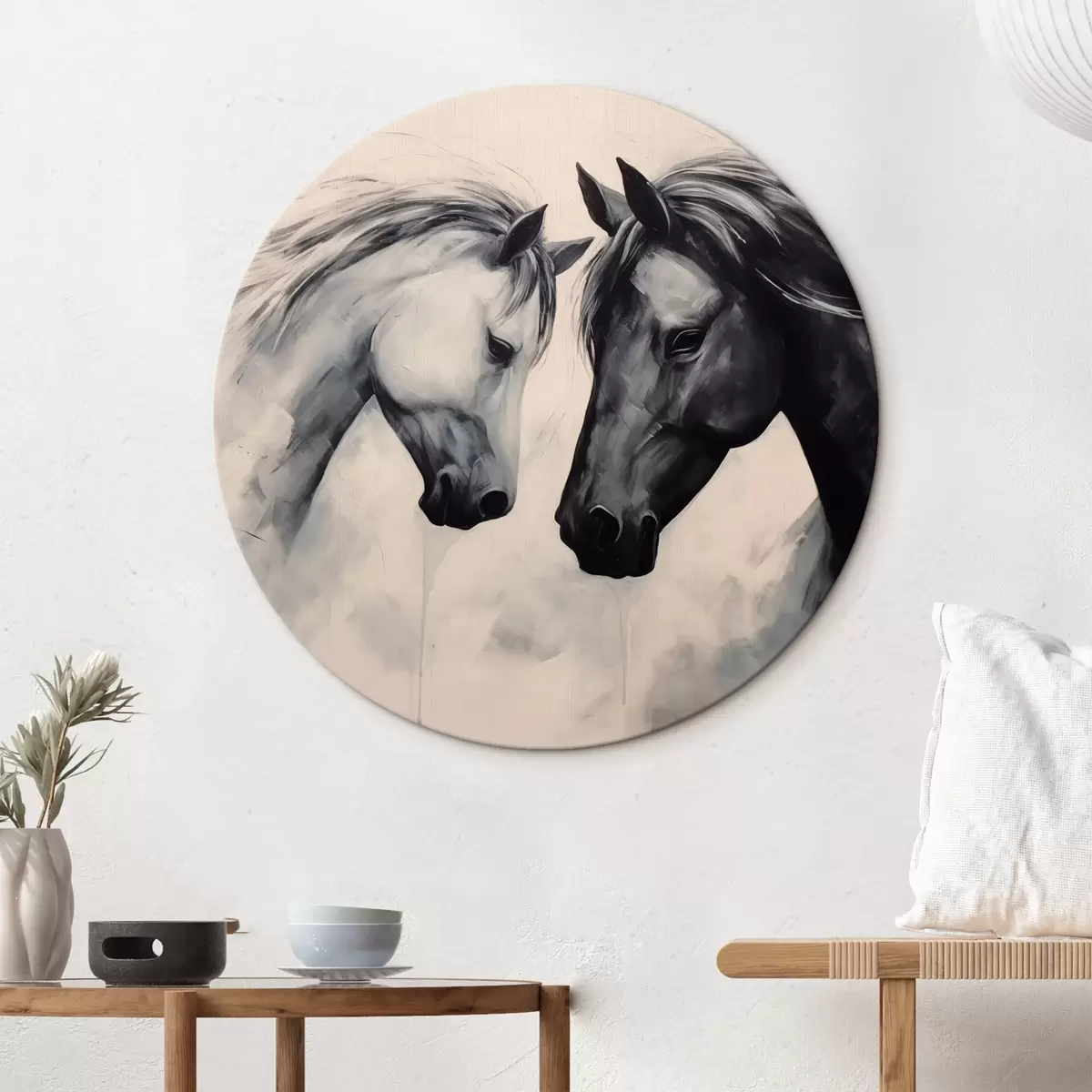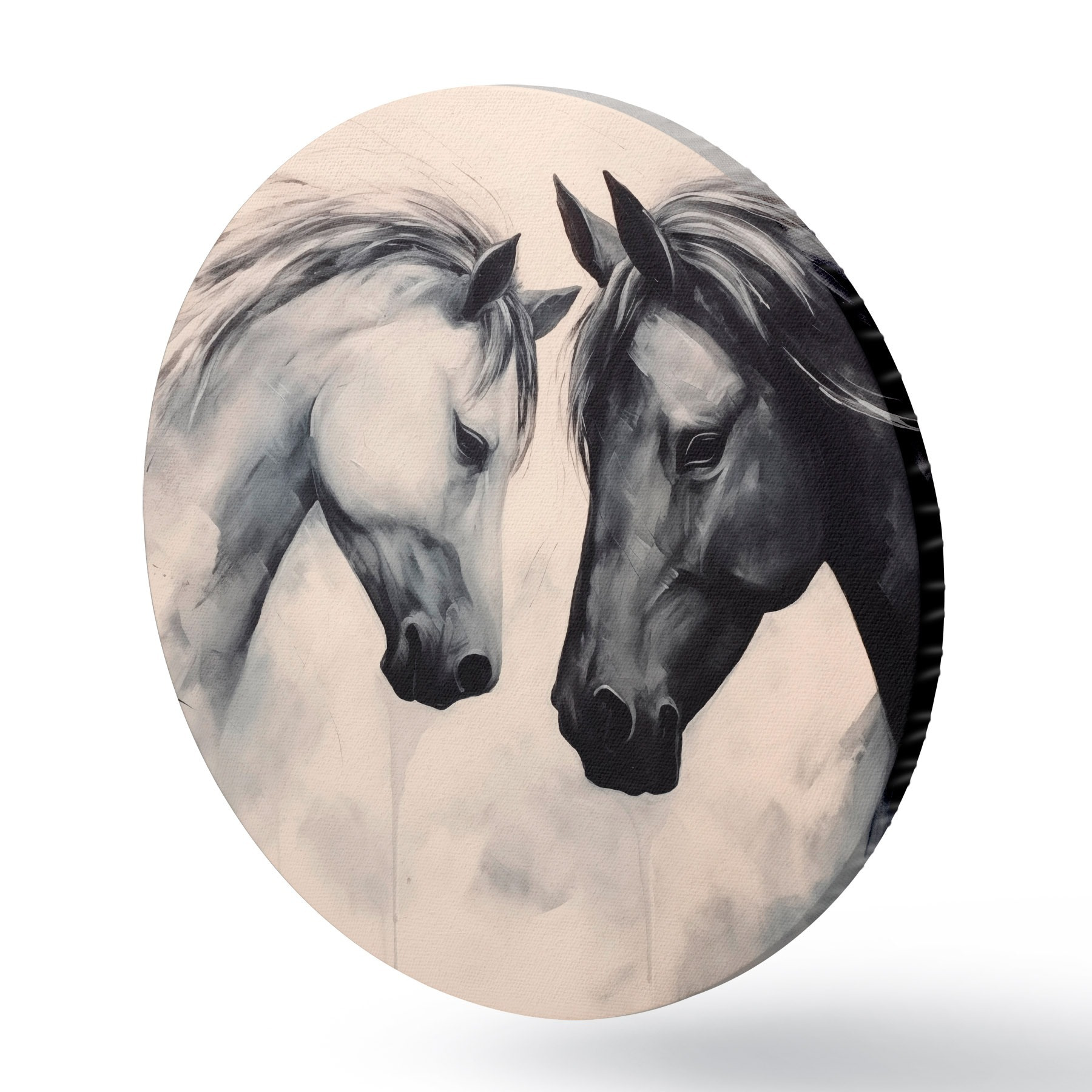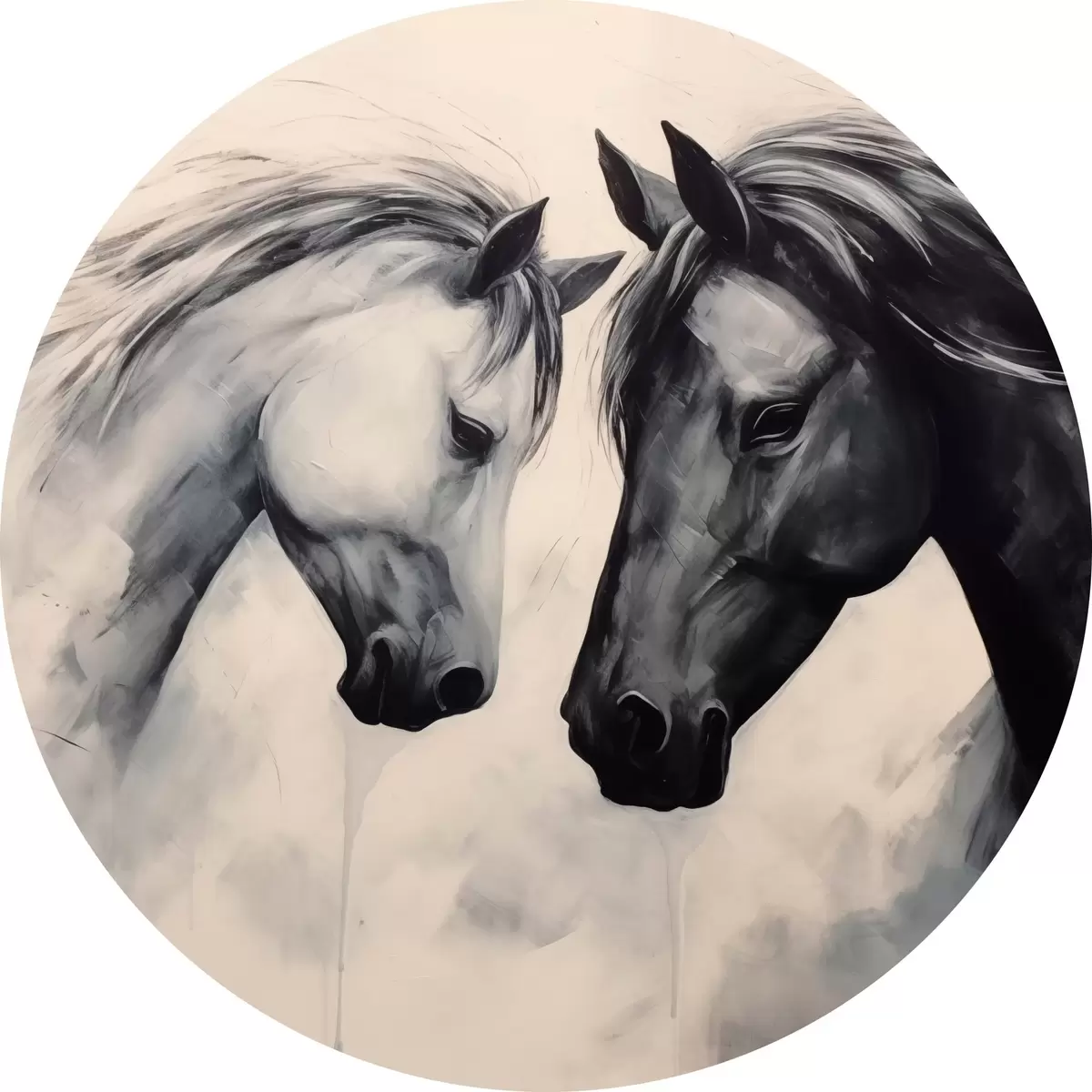 Ronde schilderijen Zwart-witte paarden r42955