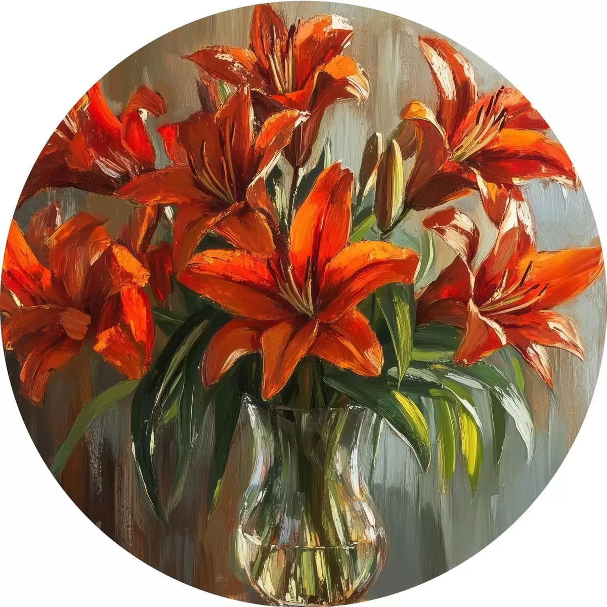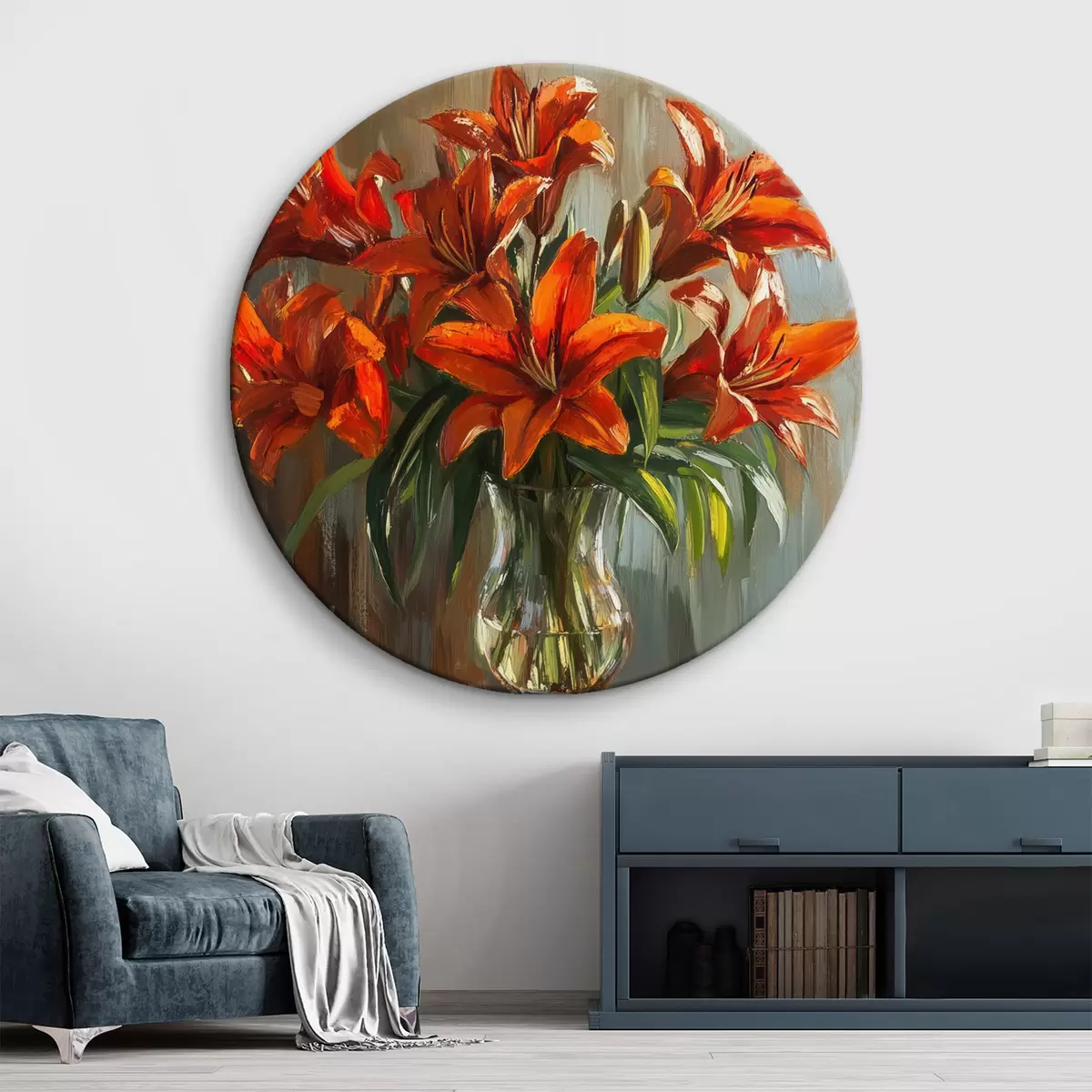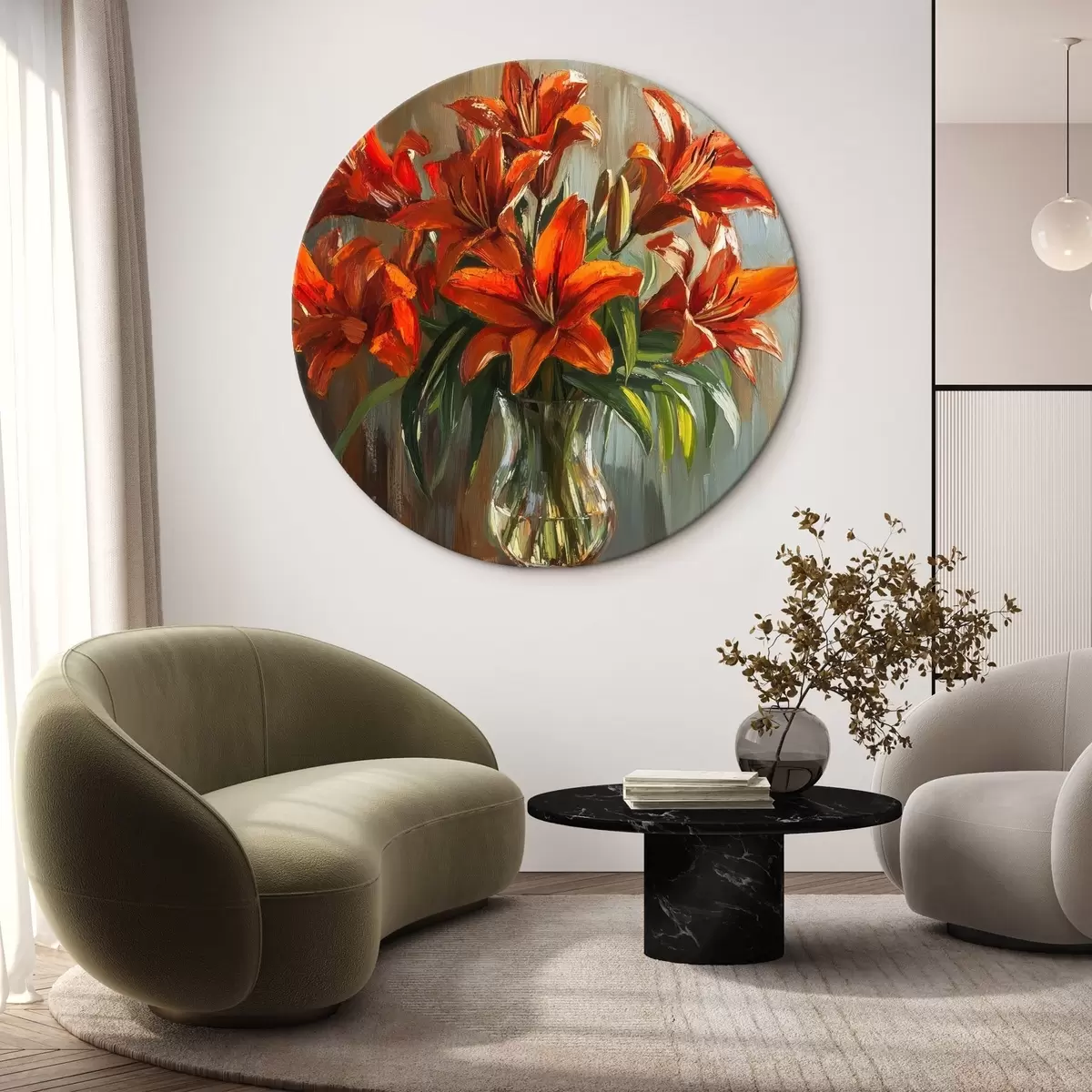 Ronde schilderijen Rode lelies in de stijl van olieverf r42977