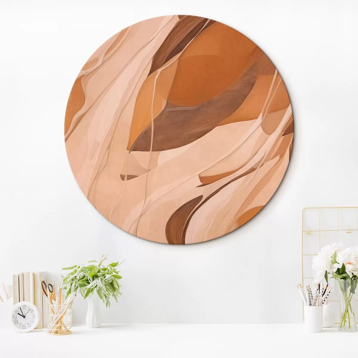 Ronde schilderijen Abstracte vloeiende lijnen in bruintinten r43006