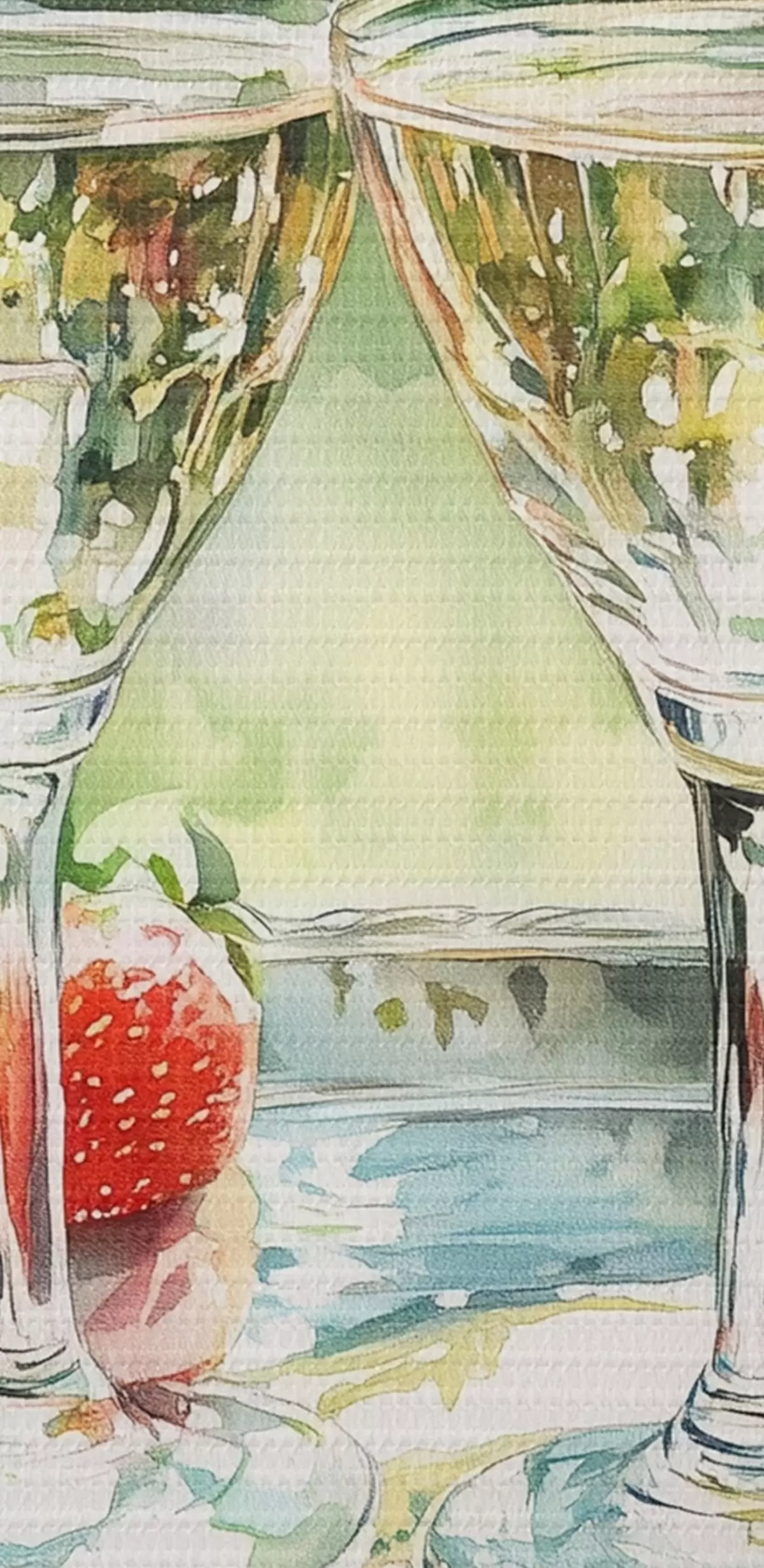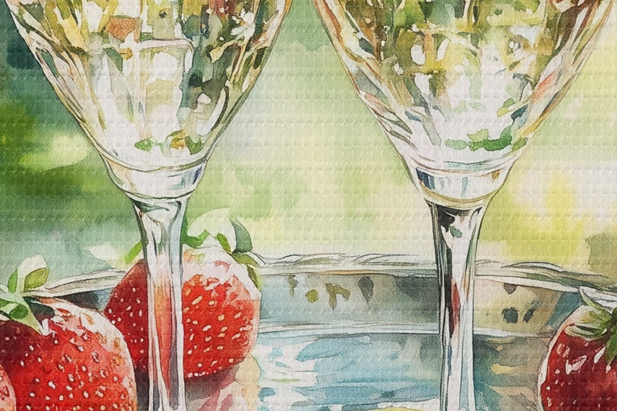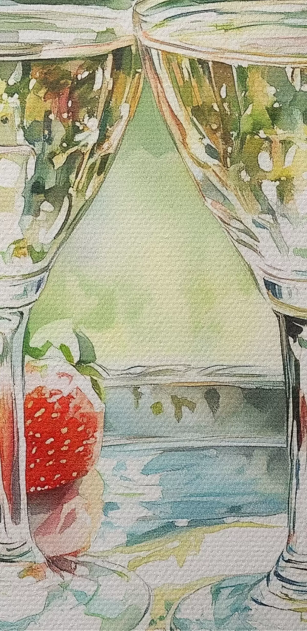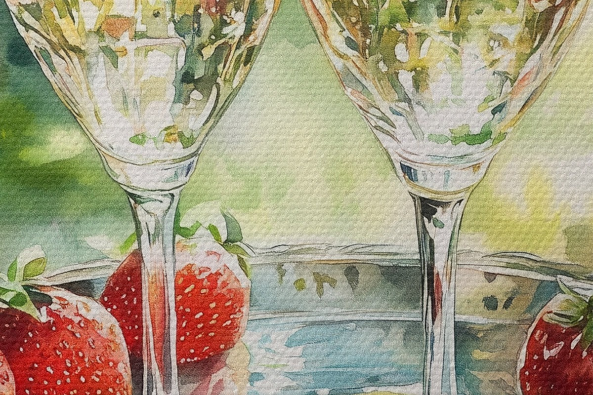 Afbeelding Zomer picknick met champagne en aardbeien, aquarel tekening Nr r43055