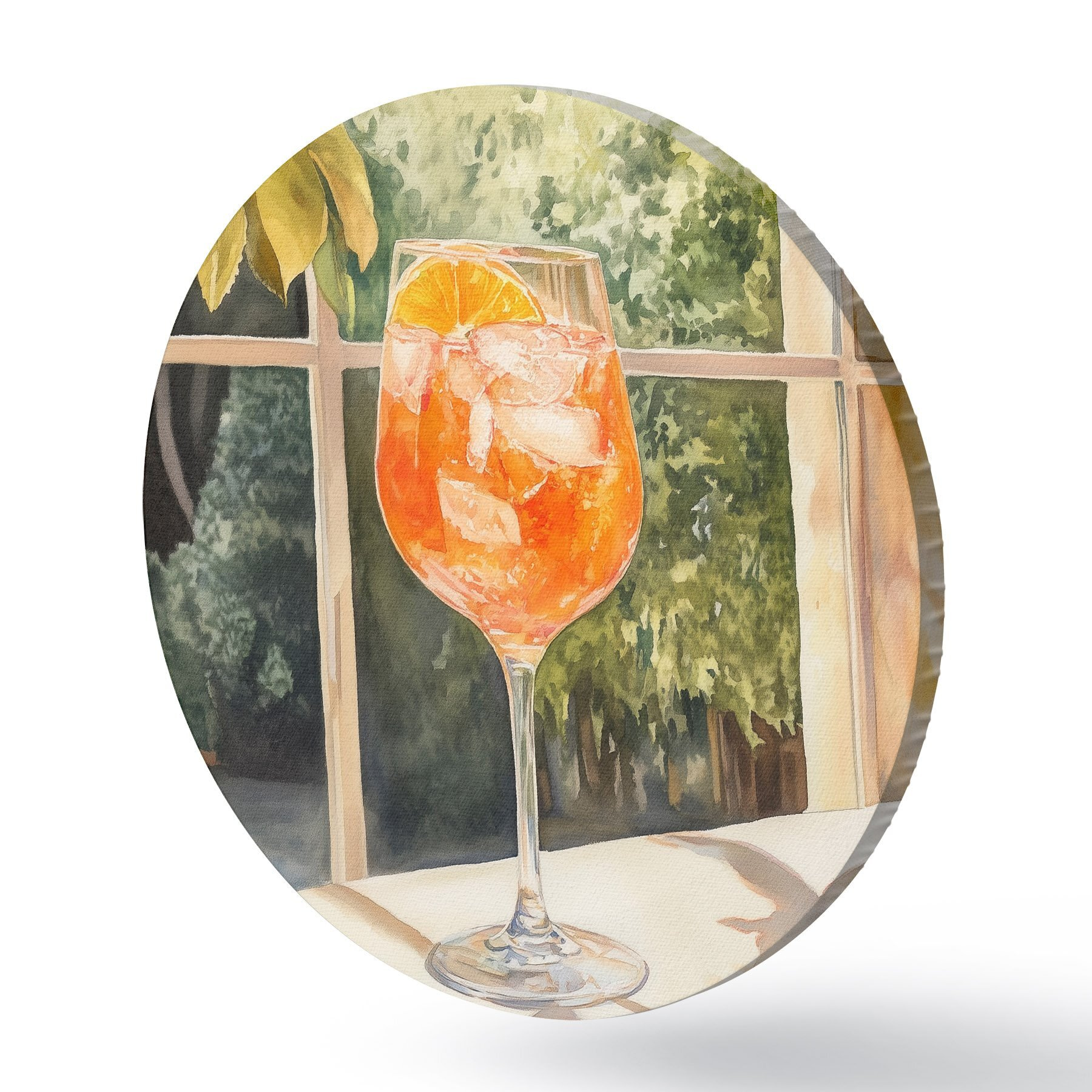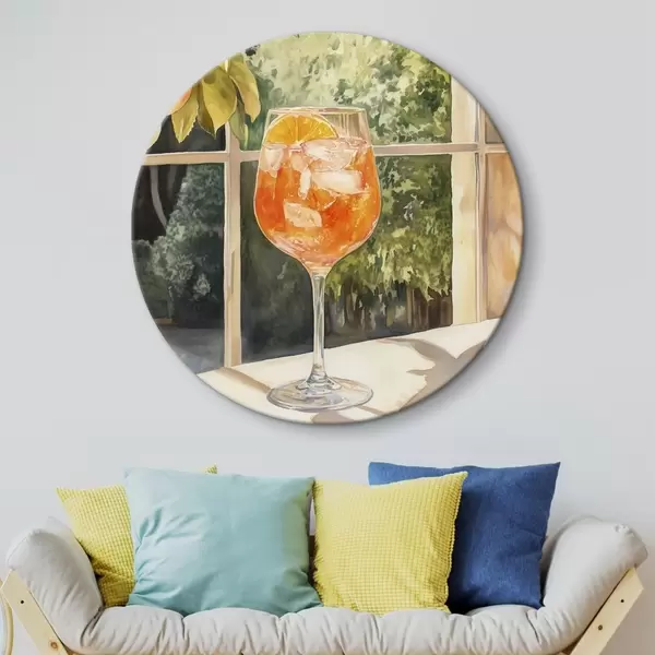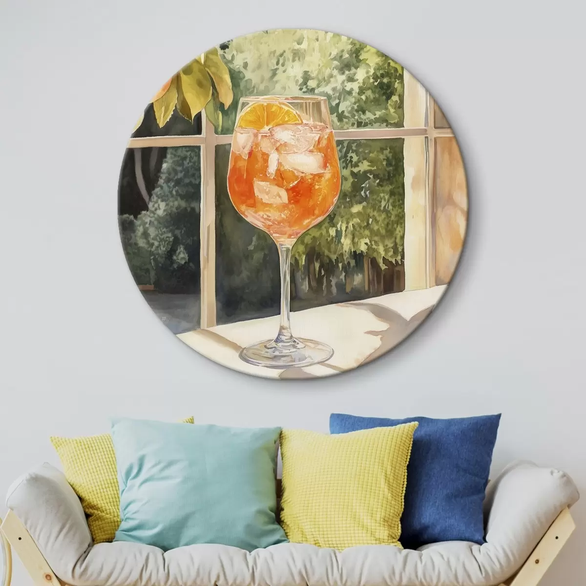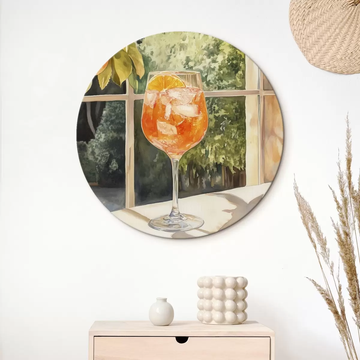 Ronde schilderijen Heerlijke cocktail met sinaasappels, rustieke stijl, aquarel, natuur r43060