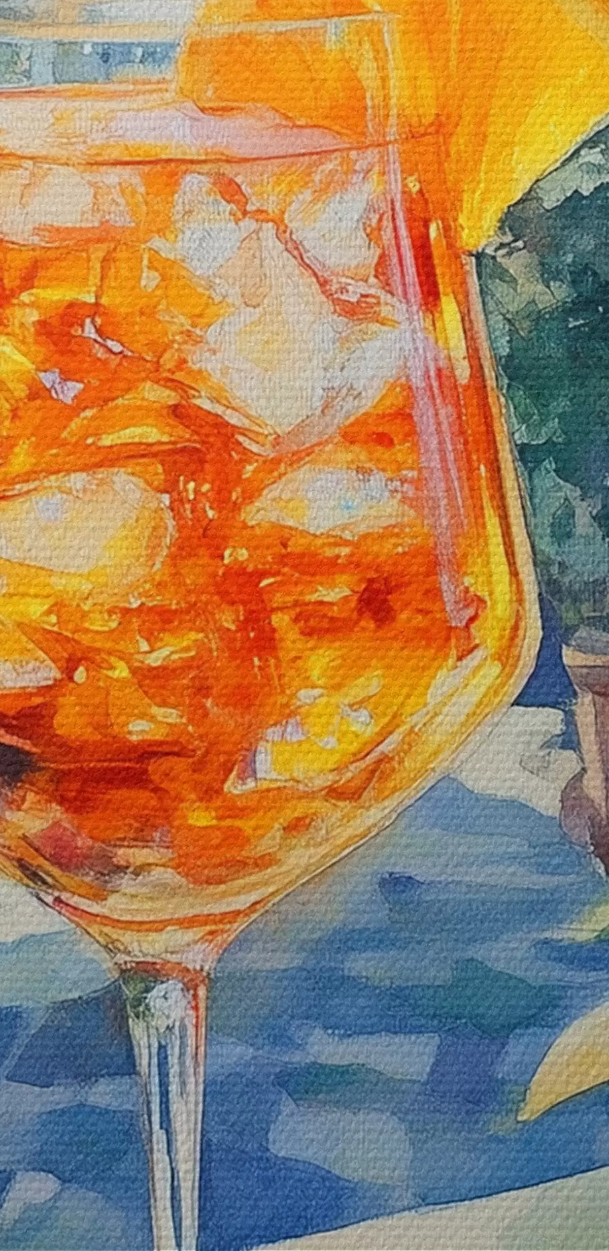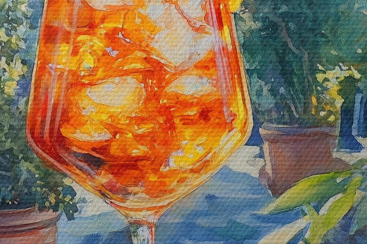 Afbeelding Cocktail met sinaasappels, aquarelstijl, Italië, Aperol Spritz, architectuur, zomertuin Nr r43061