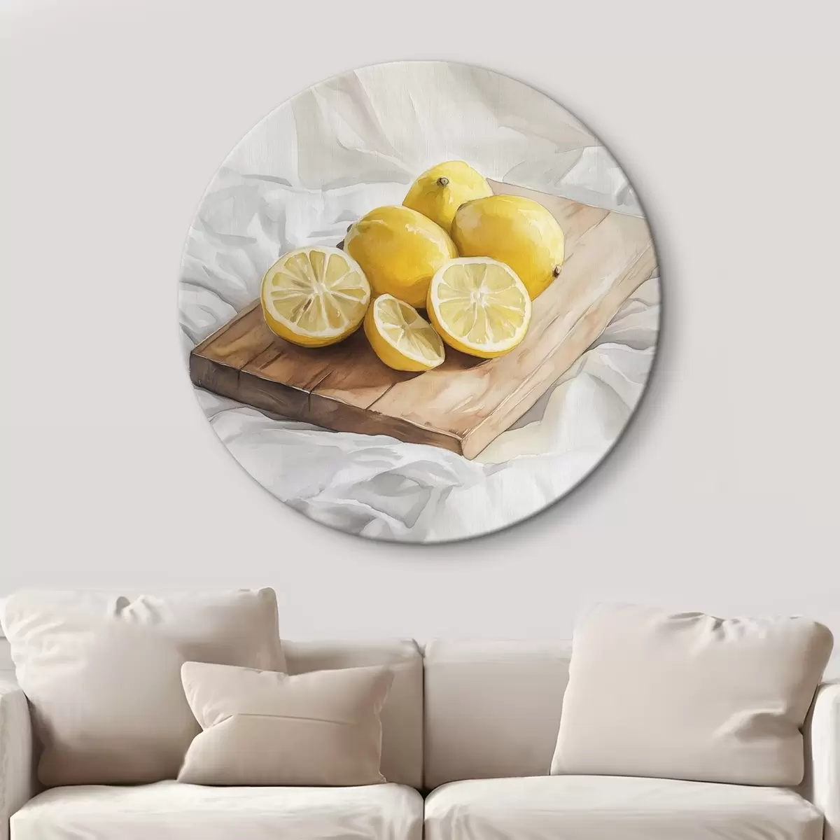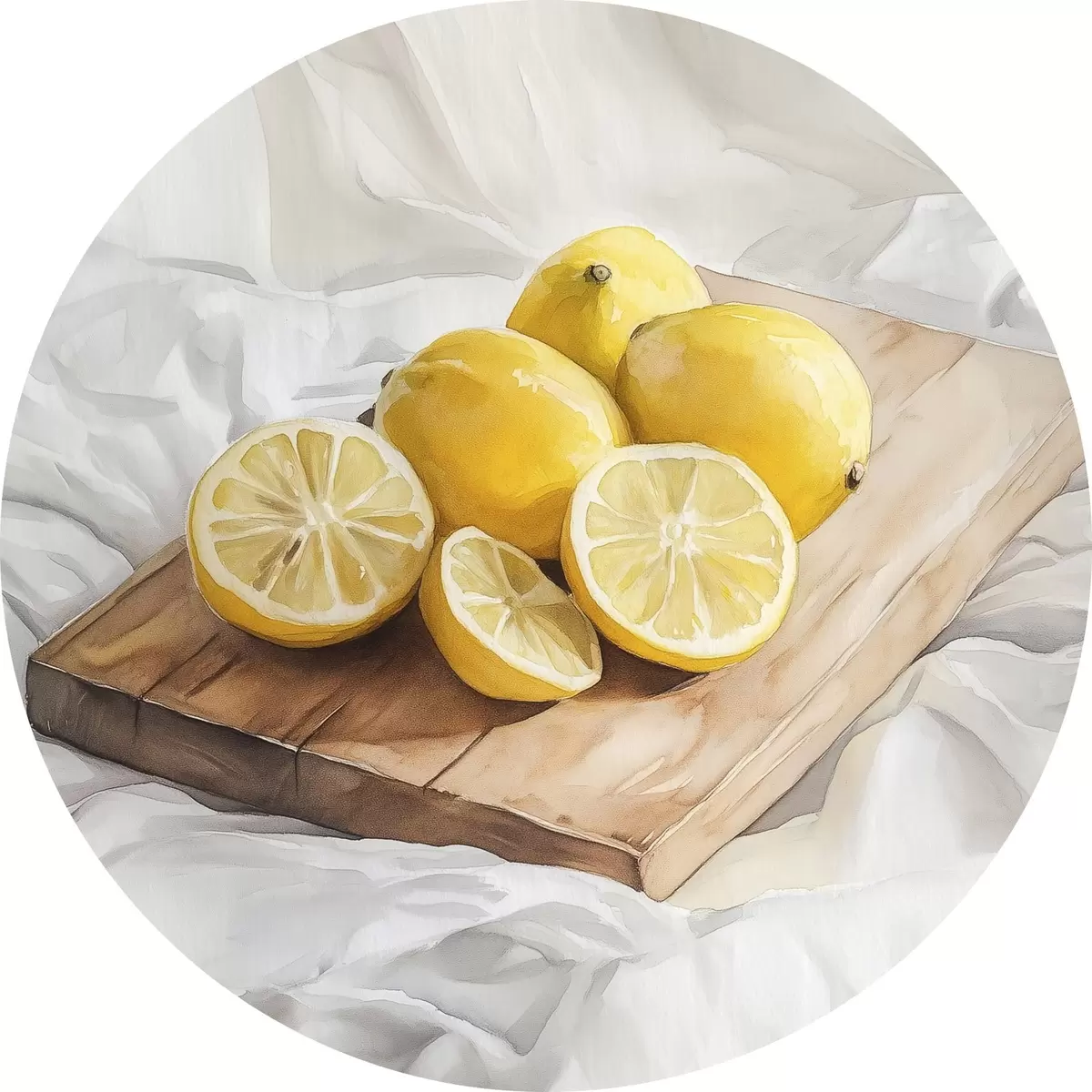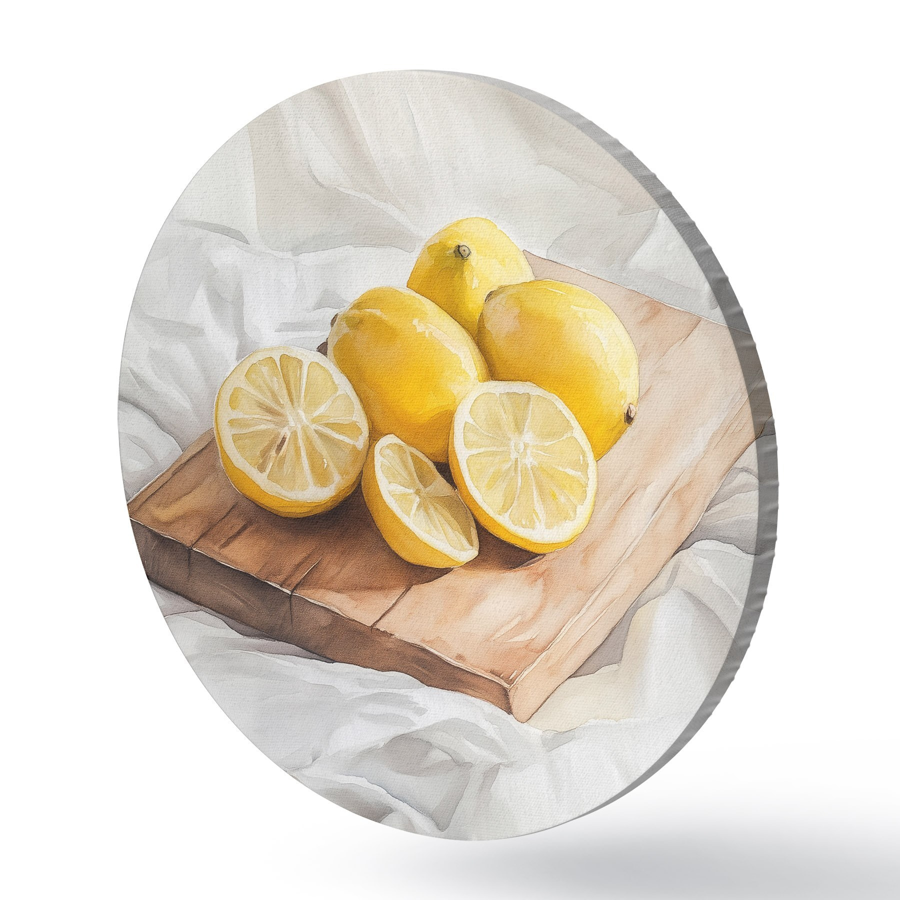 Ronde schilderijen Esthetische citroenen op de houten plank, woningdecoratie, natuurlijke verlichting r43062