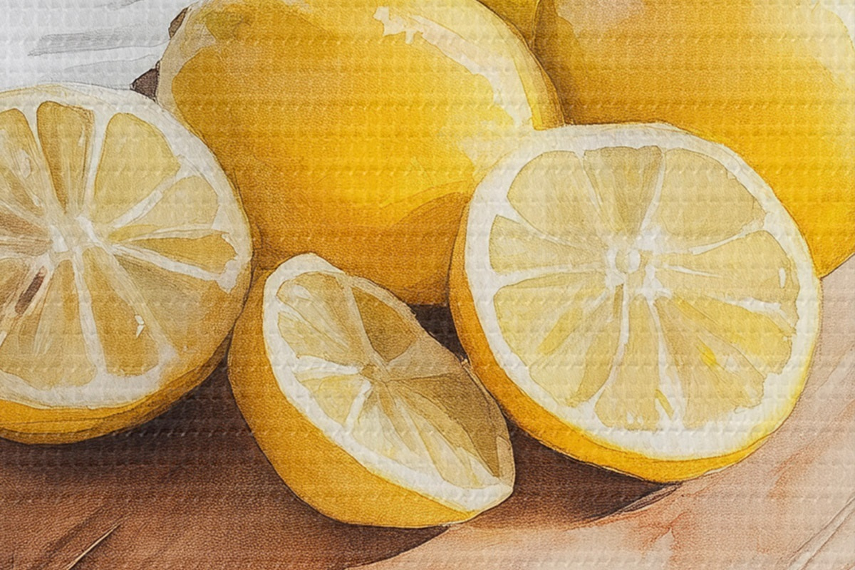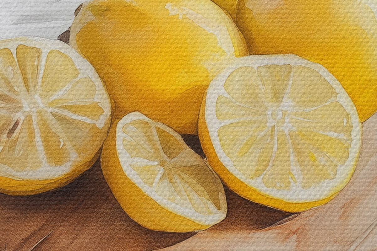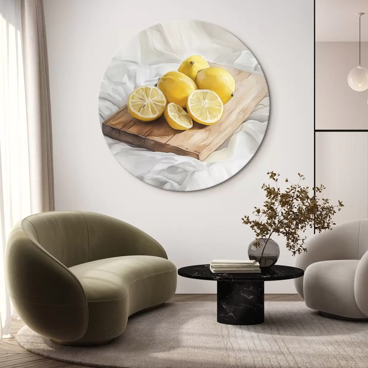 Ronde schilderijen Esthetische citroenen op de houten plank, woningdecoratie, natuurlijke verlichting r43062