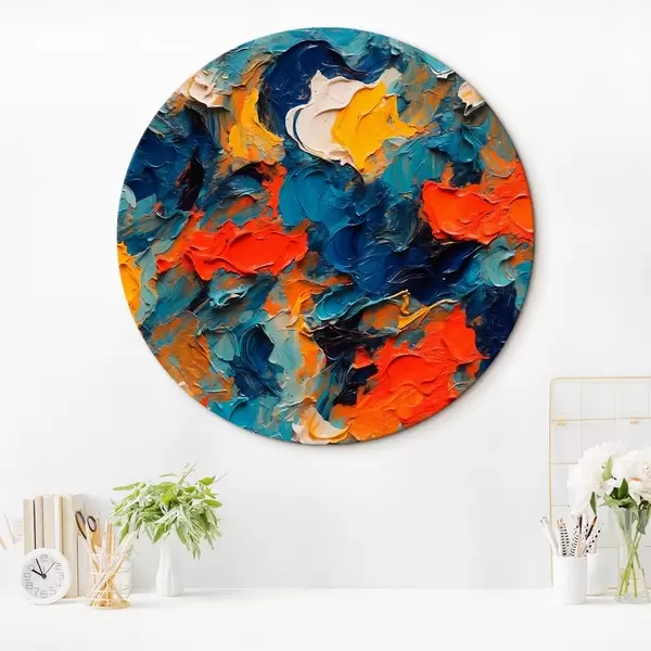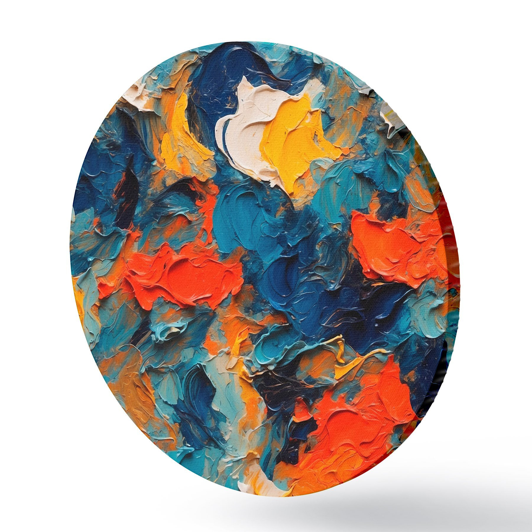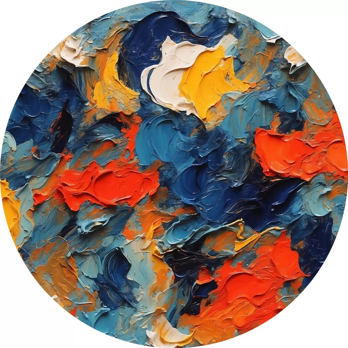 Ronde schilderijen Abstract schilderij in olieverfstijl met witte, blauwe en rode kleuren r43093