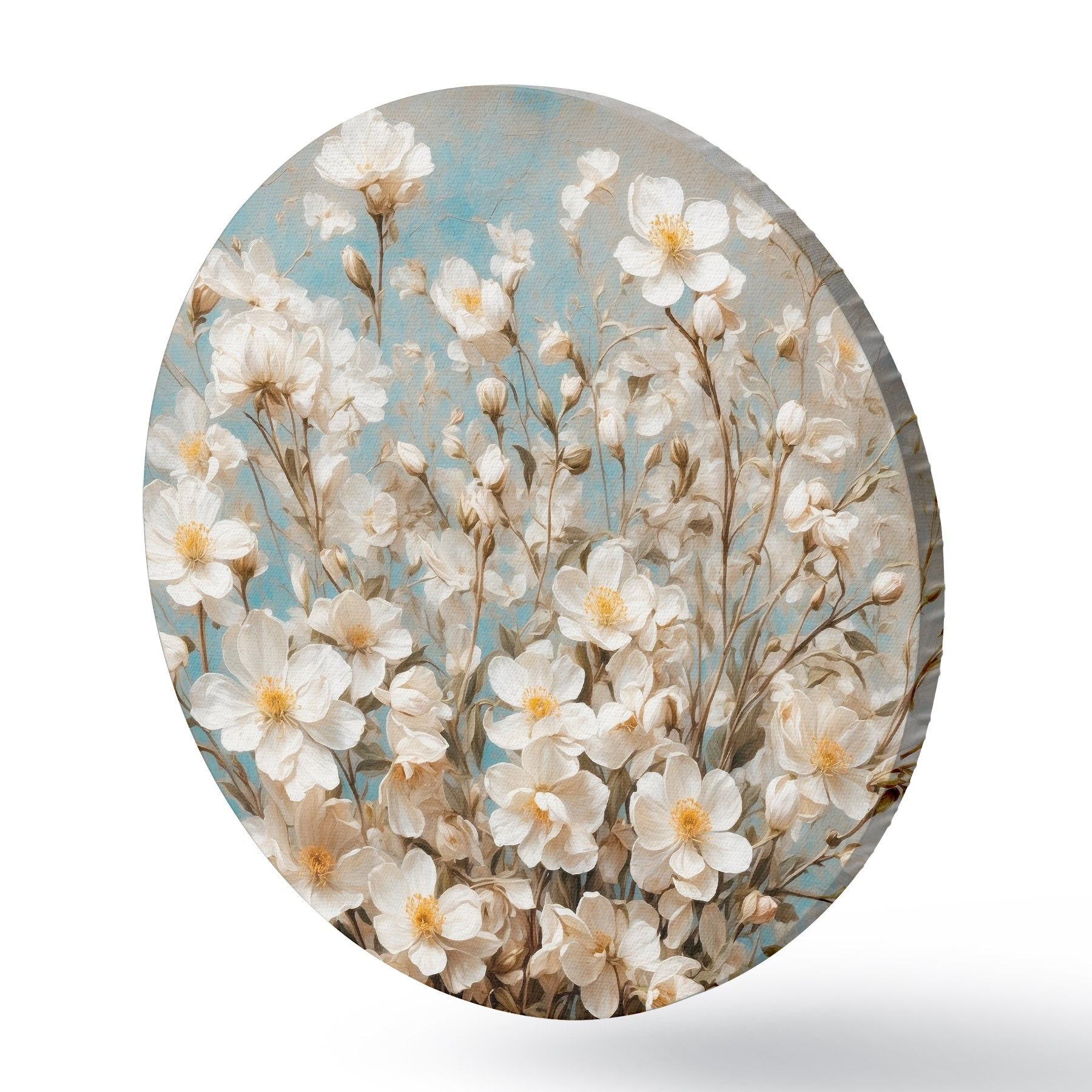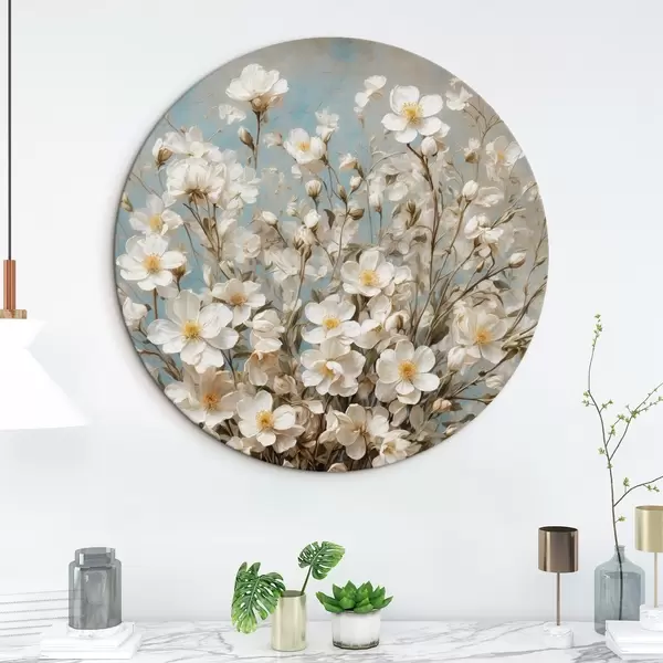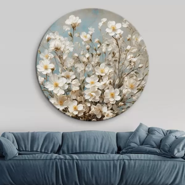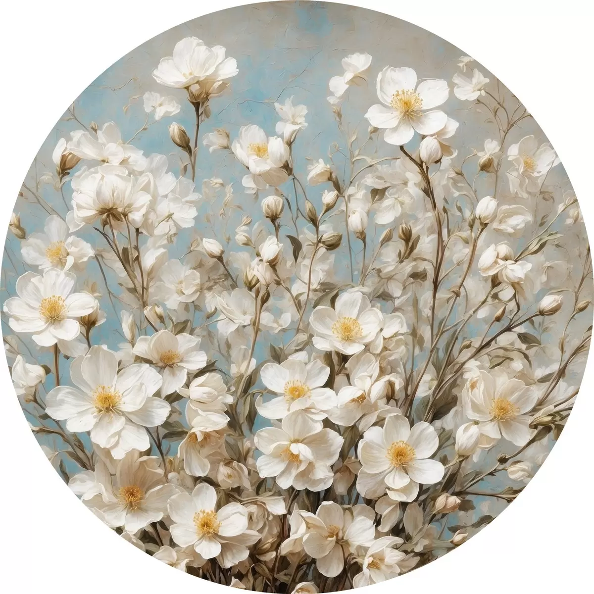 Ronde schilderijen Witte bloemen in vaas op acrylachtergrond r43107