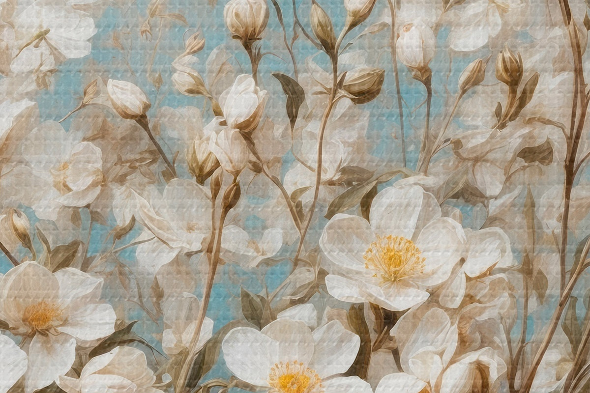 Afbeelding Witte bloemen in vaas op acrylachtergrond Nr r43107