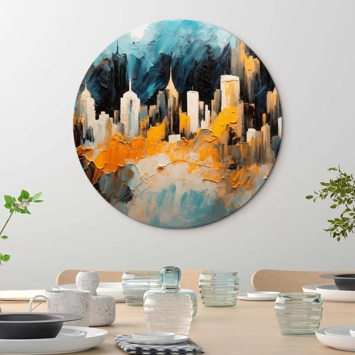 Ronde schilderijen Abstracte stad in olieverfstijl r43109