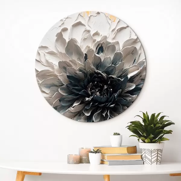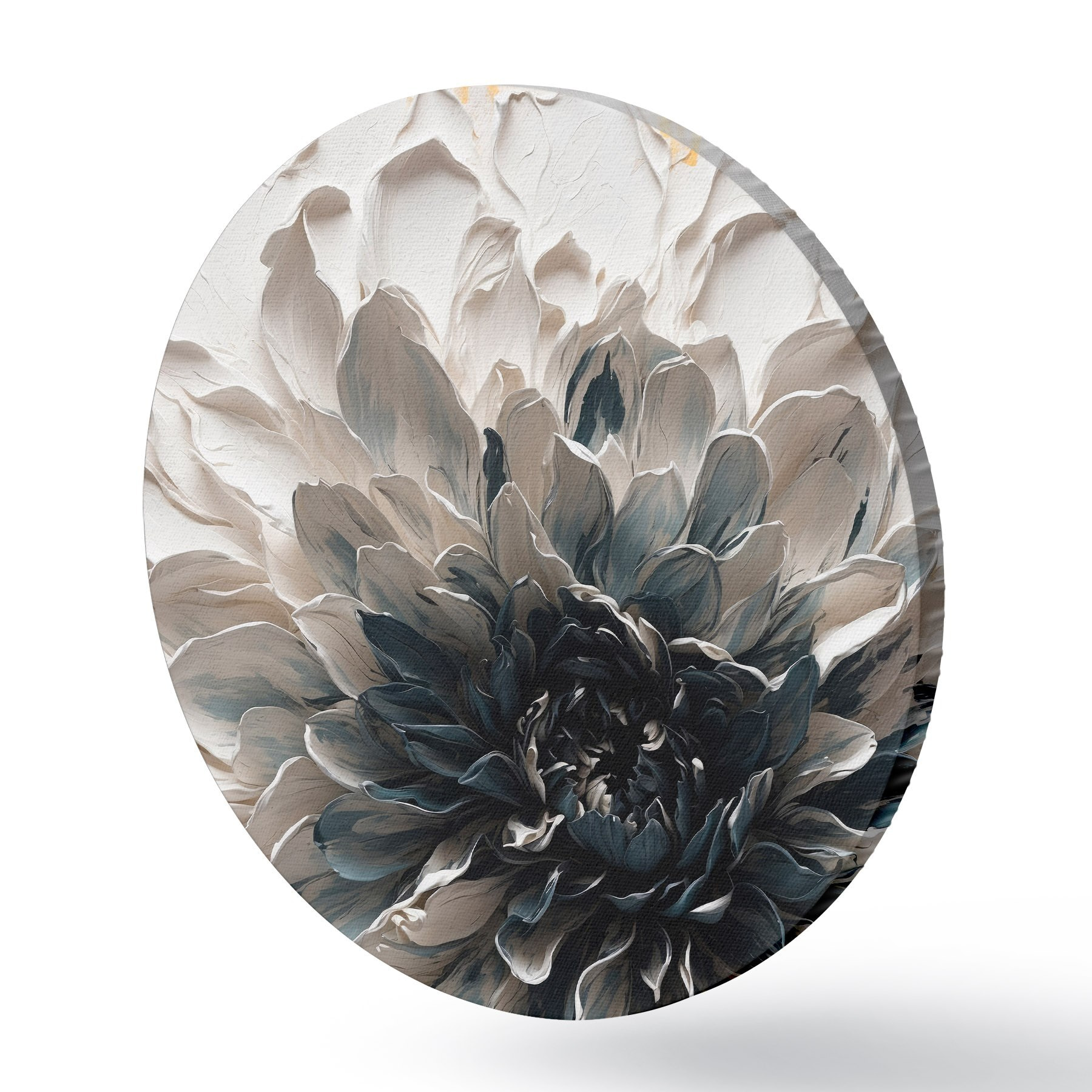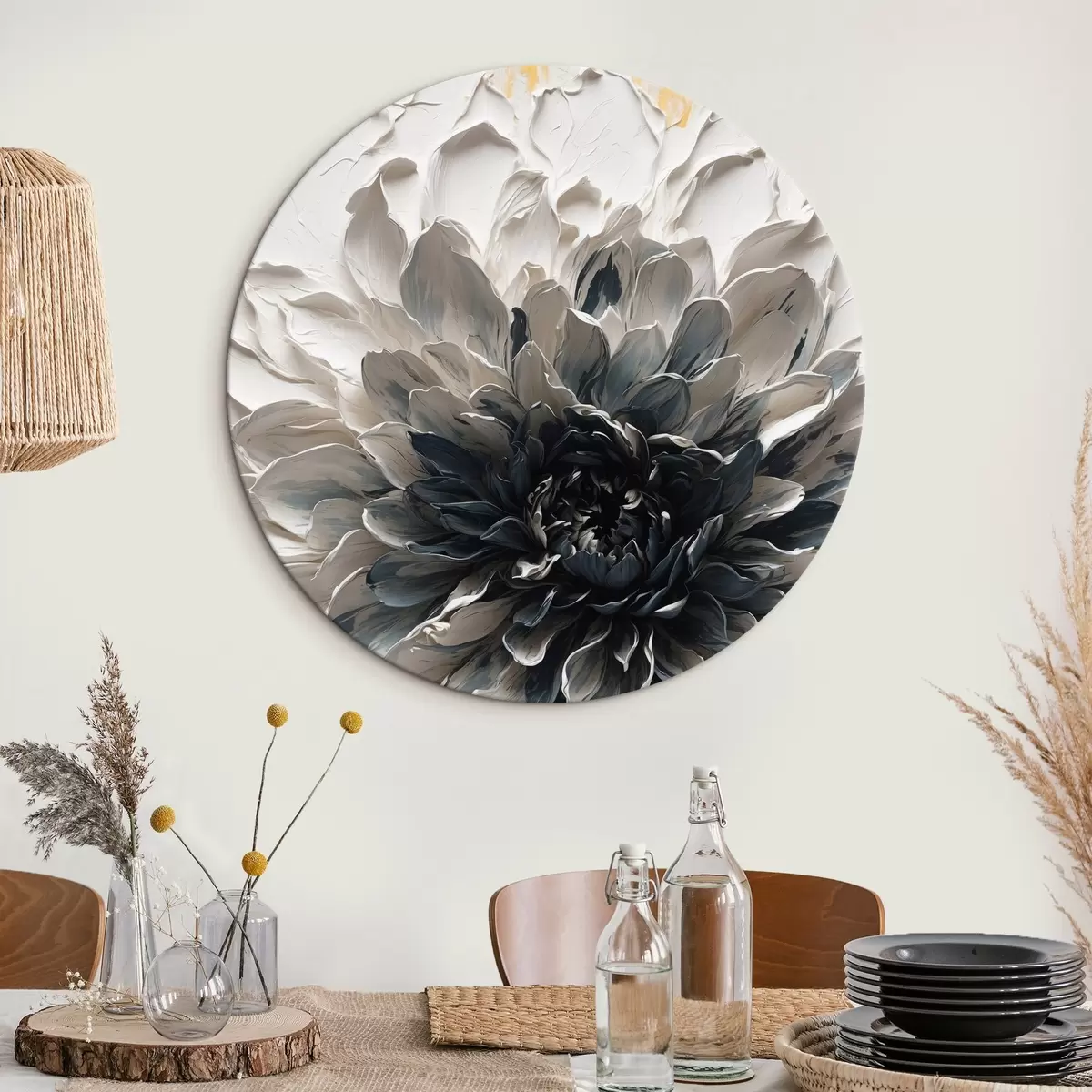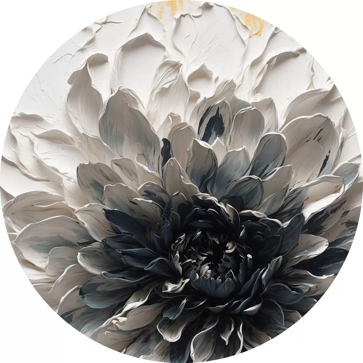 Ronde schilderijen Witte bloem met zwart midden in olieverfschilderijstijl r43113
