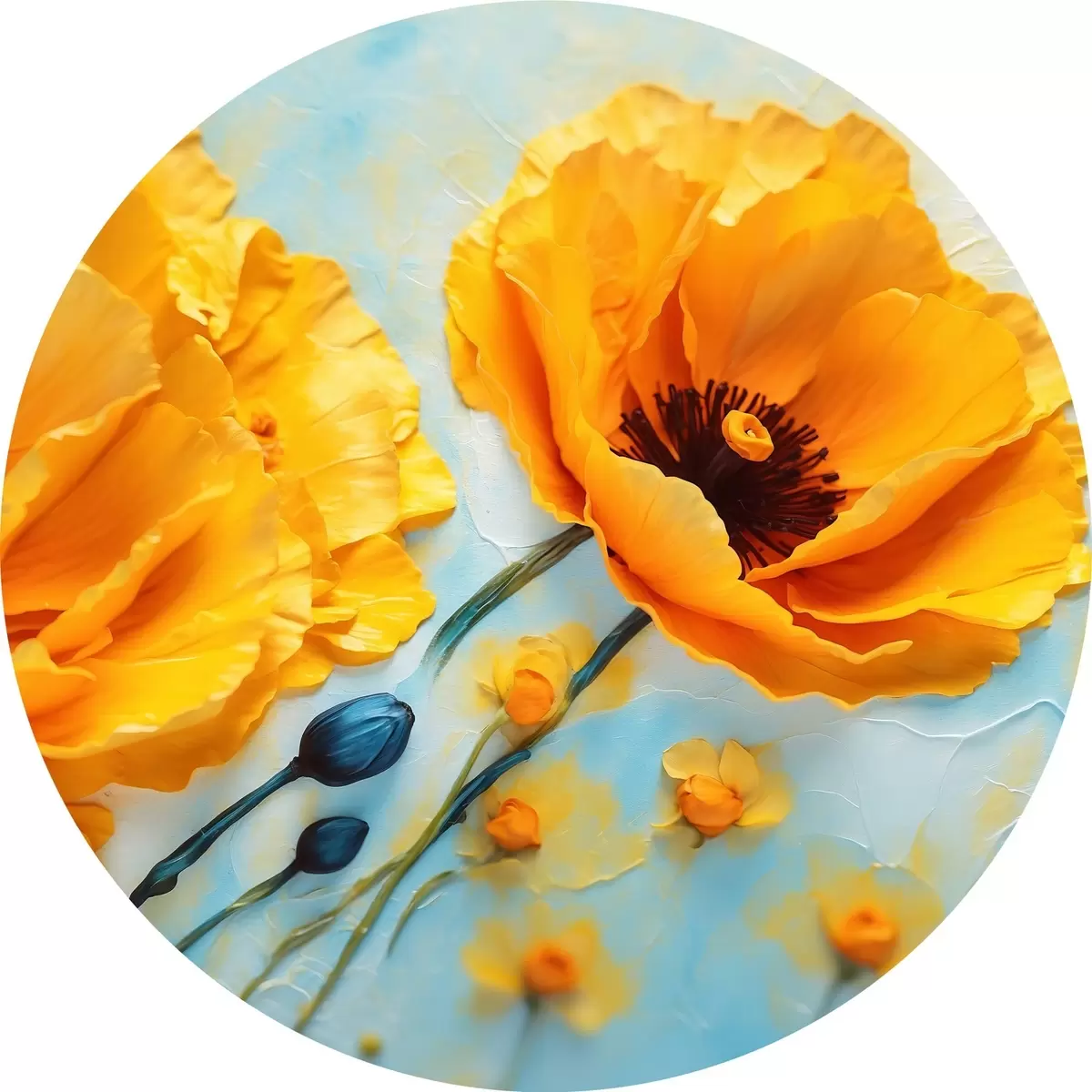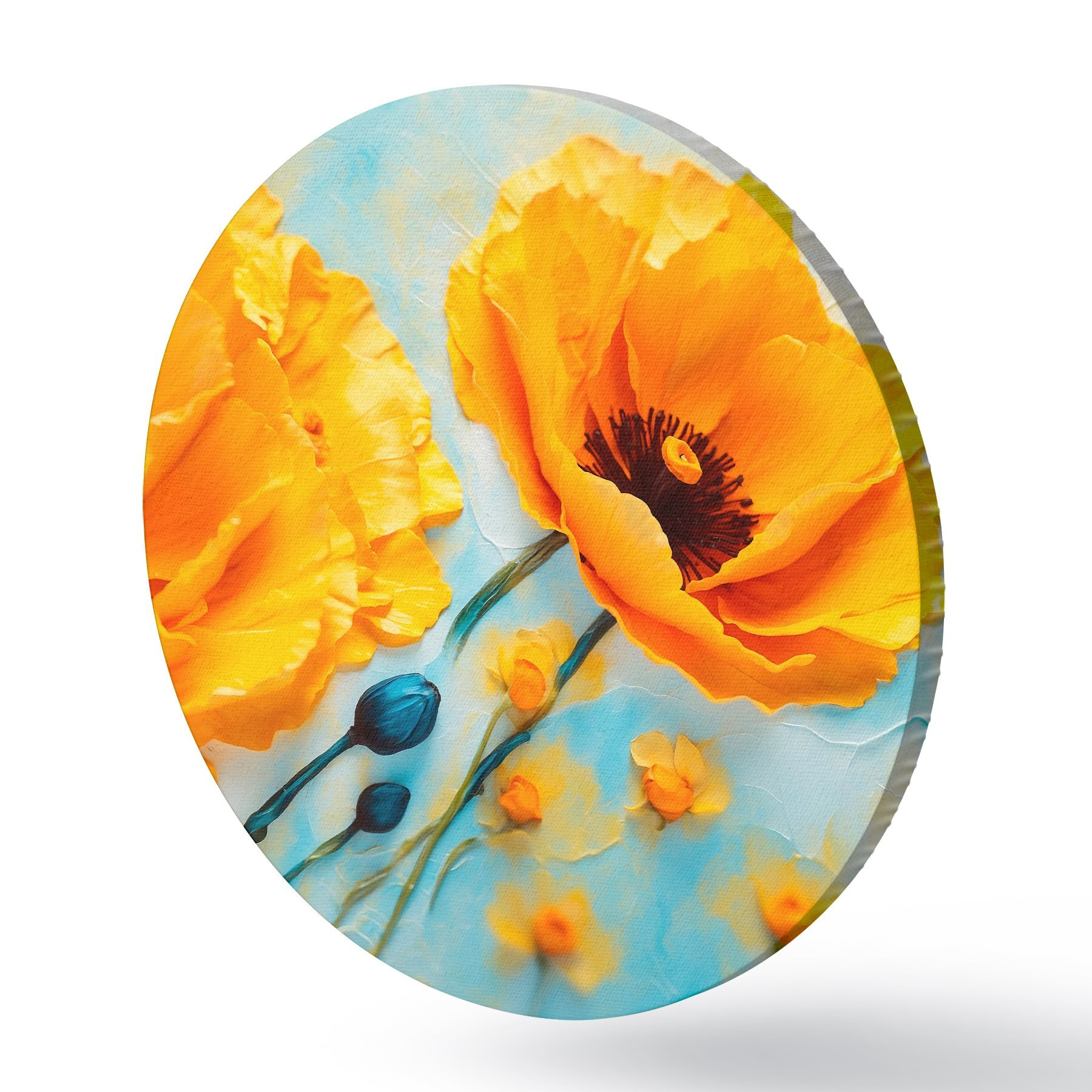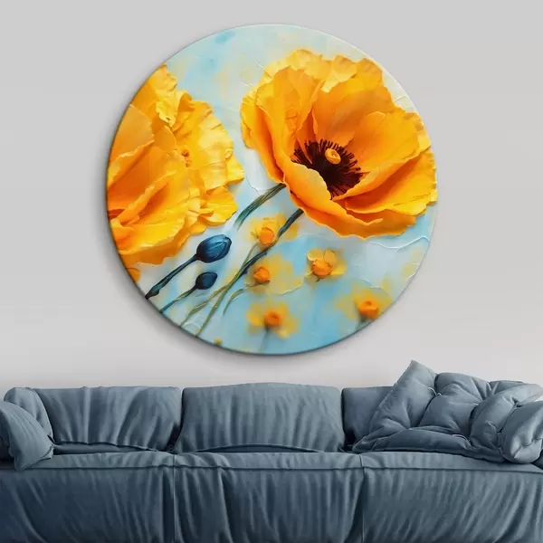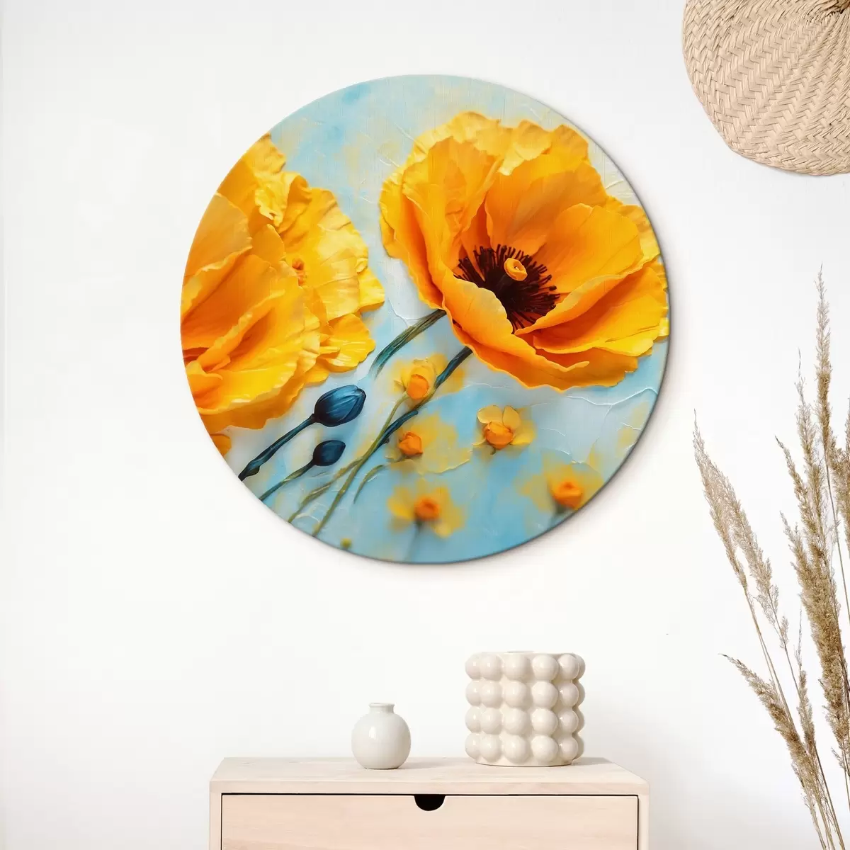 Ronde schilderijen Gele klaprozen op wazige achtergrond r43118