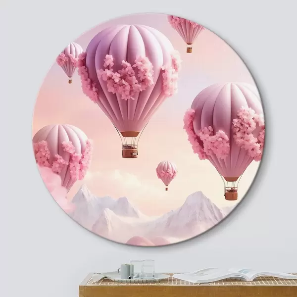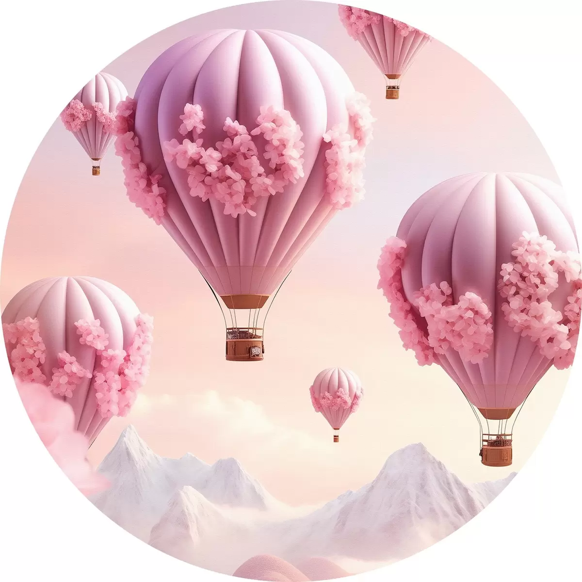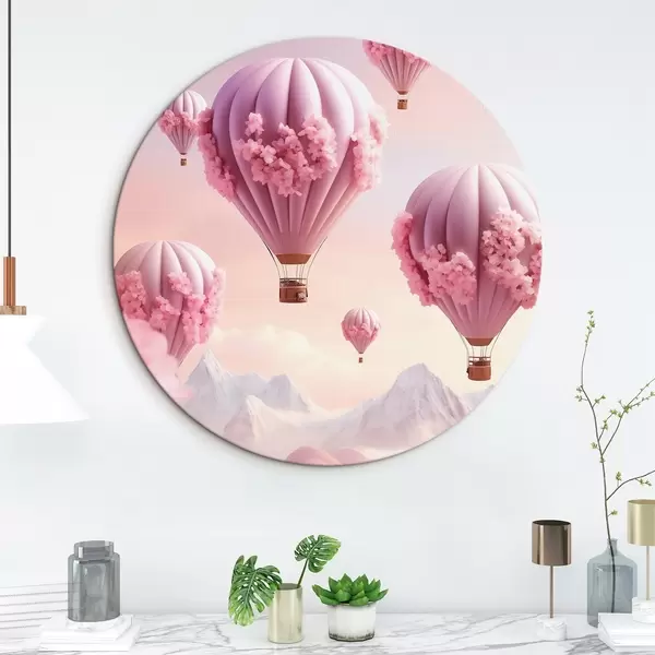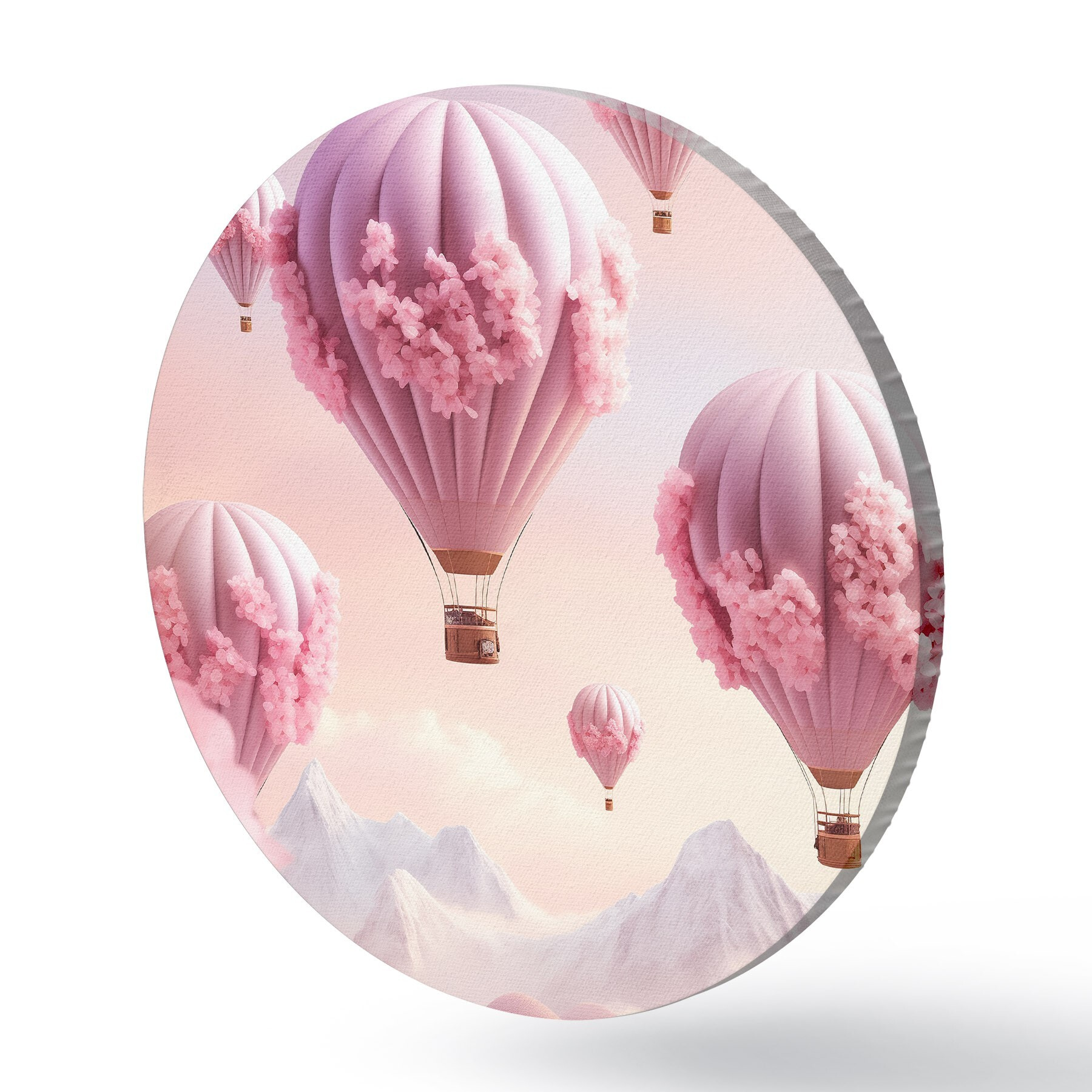Ronde schilderijen Roze ballonnen in de bergen r43121