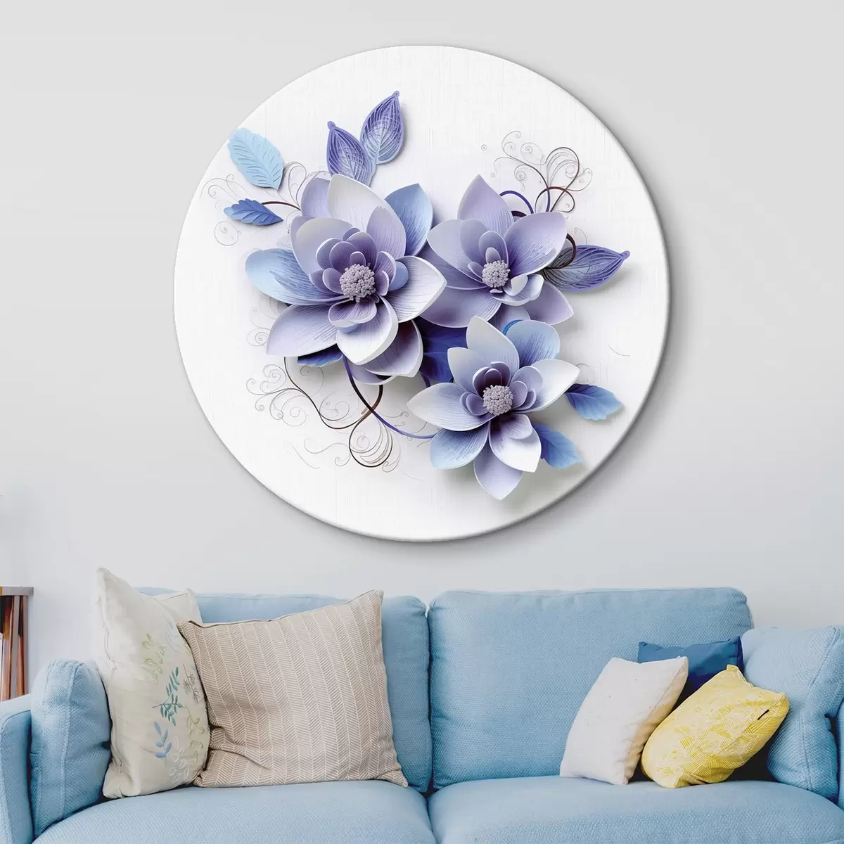 Ronde schilderijen Blauwe abstracte bloemen r43124