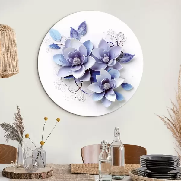 Ronde schilderijen Blauwe abstracte bloemen r43124