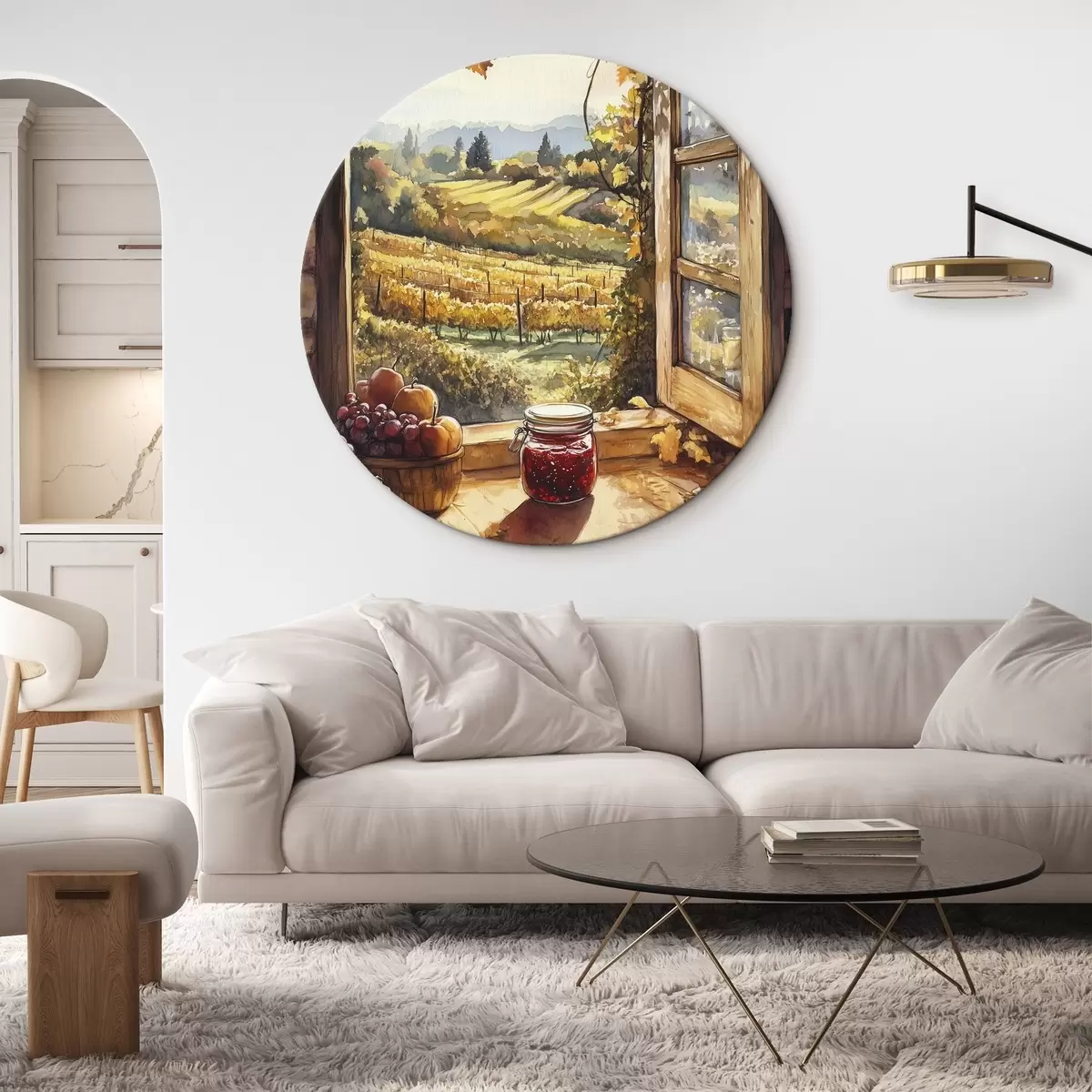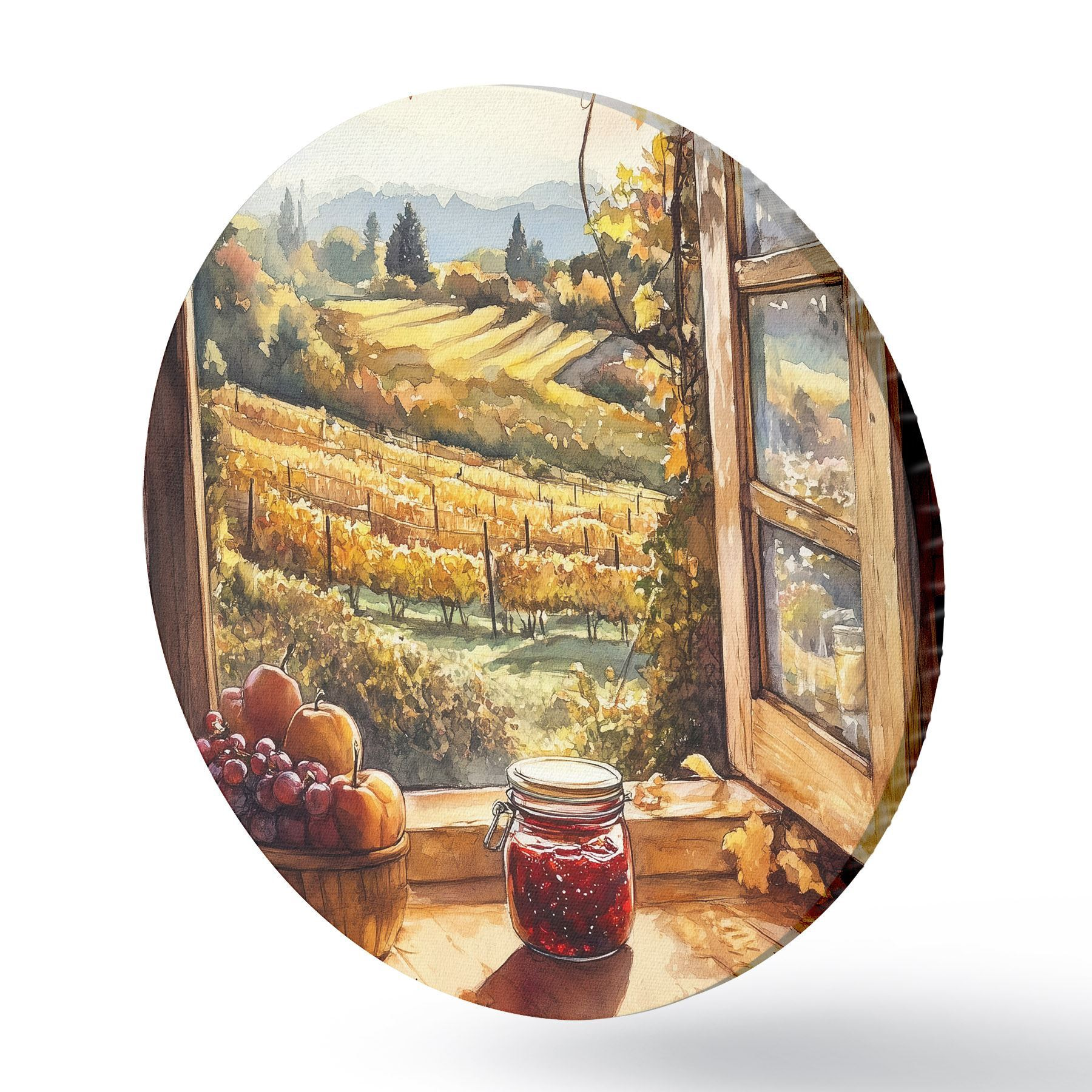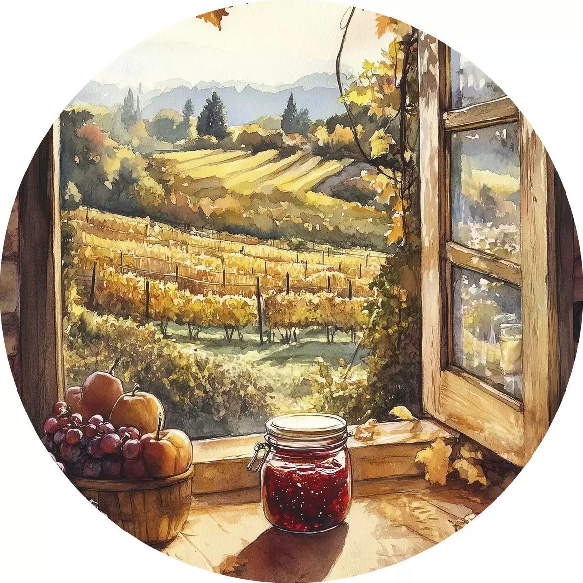 Ronde schilderijen Oogst in het dorp, rustiek, fruit, jam, natuurlandschappen, aquarel stijl r43186