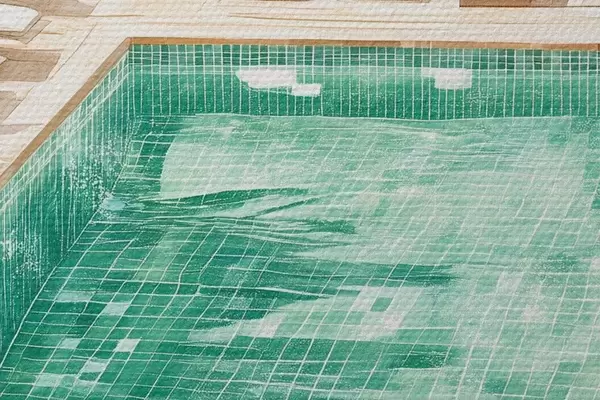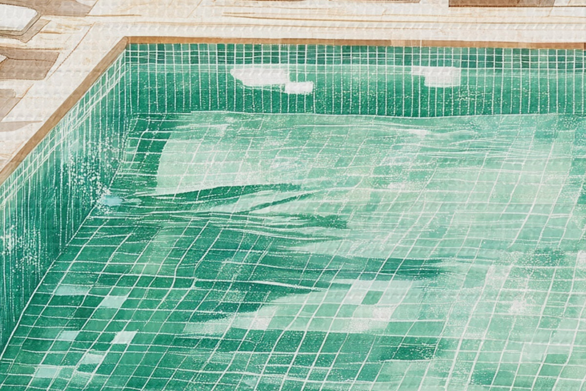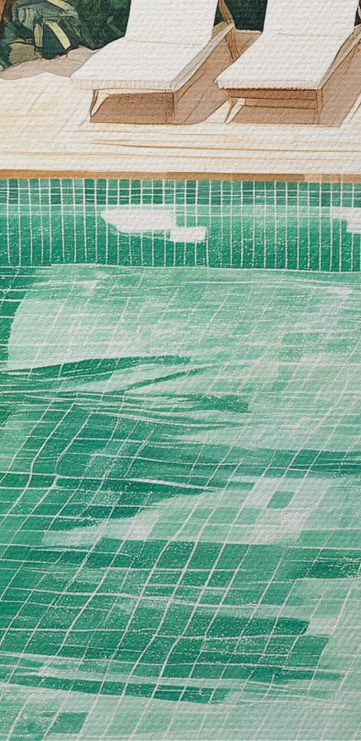Afbeelding Zomerzwembad in de groene tuin, vintage stijl, aquarel Nr r43189