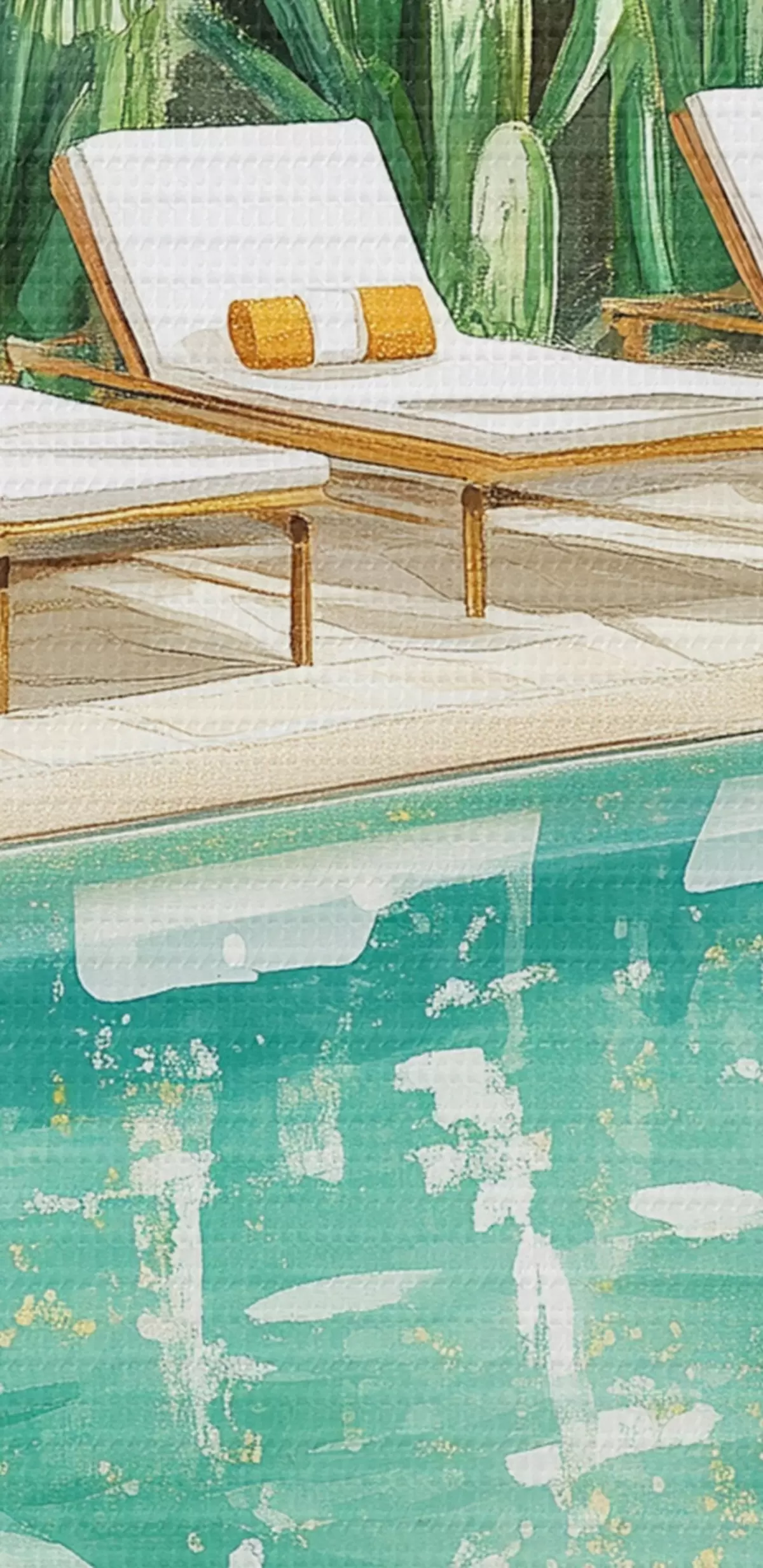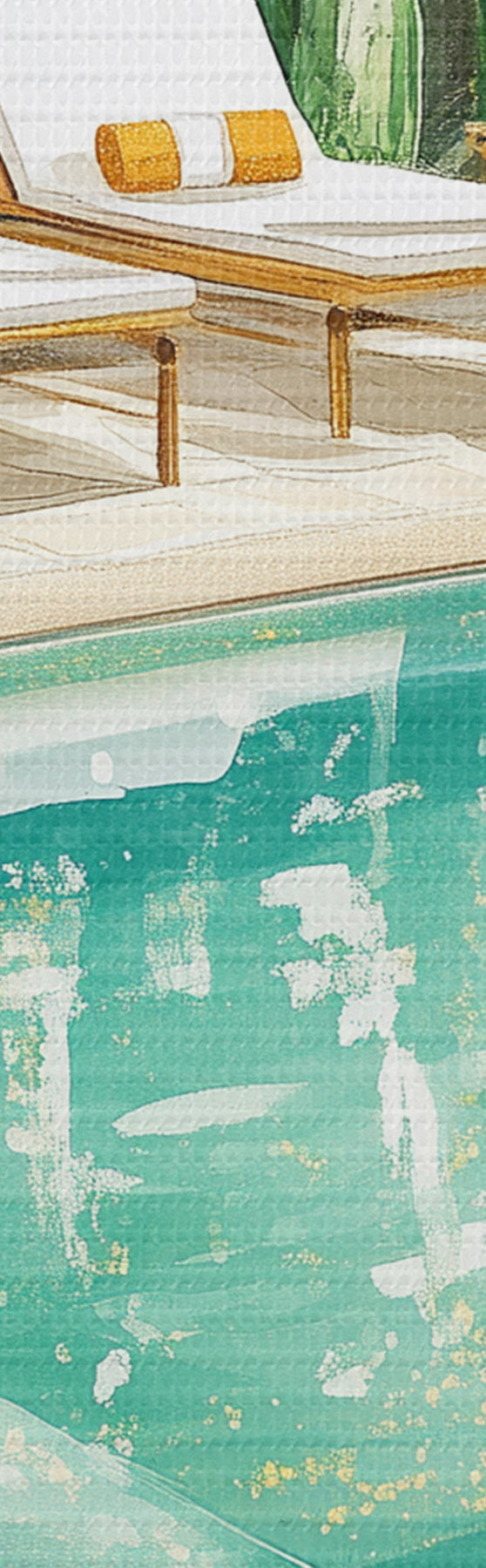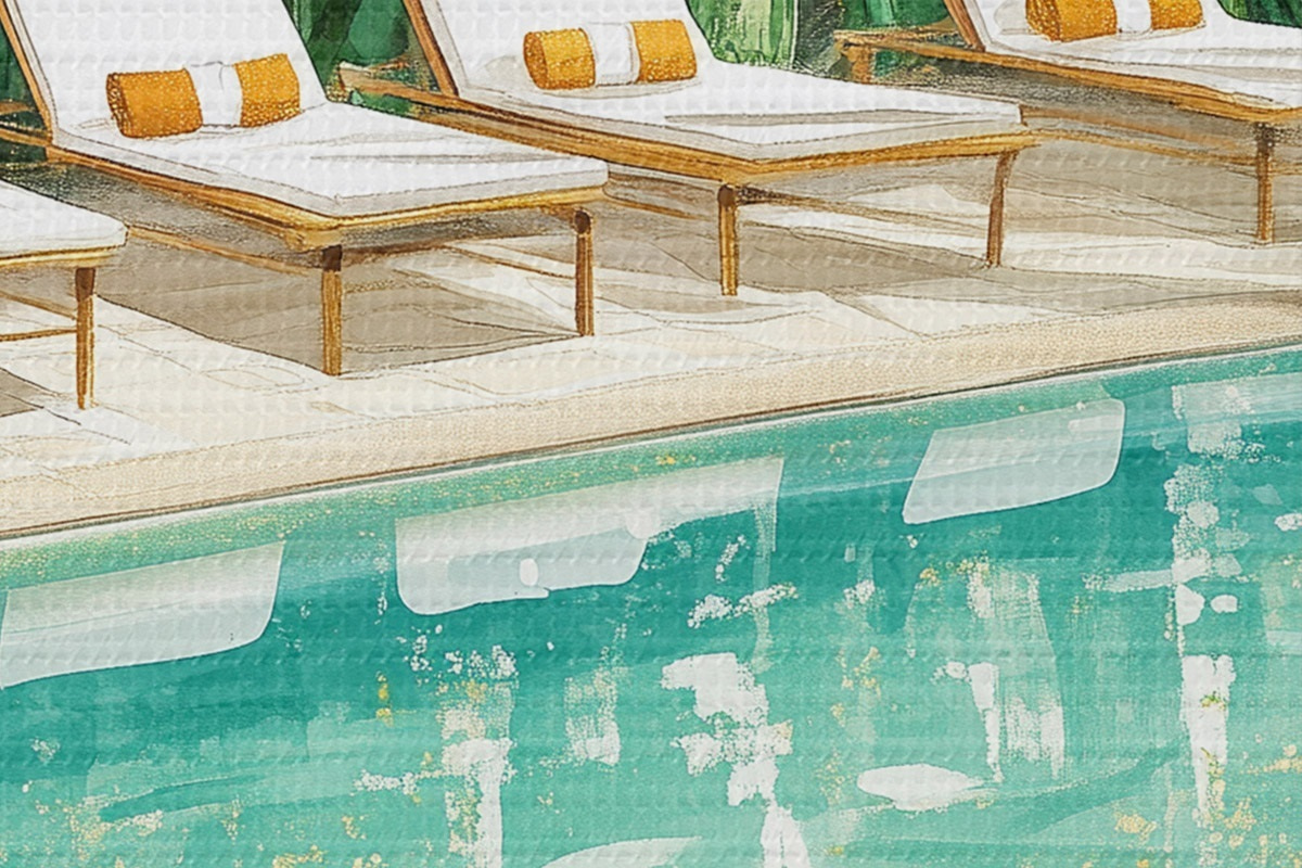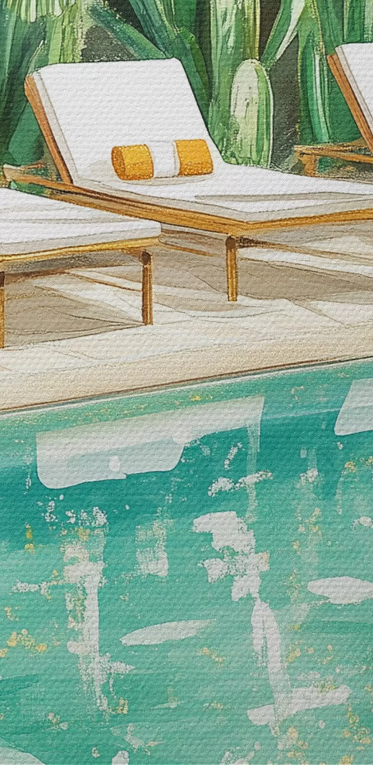 Afbeelding Tropische natuur, tuin, zomerzwembad, surfen, aquarelstijl Nr r43190