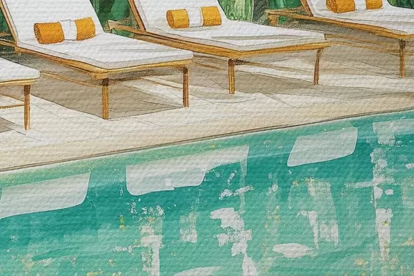 Afbeelding Tropische natuur, tuin, zomerzwembad, surfen, aquarelstijl Nr r43190