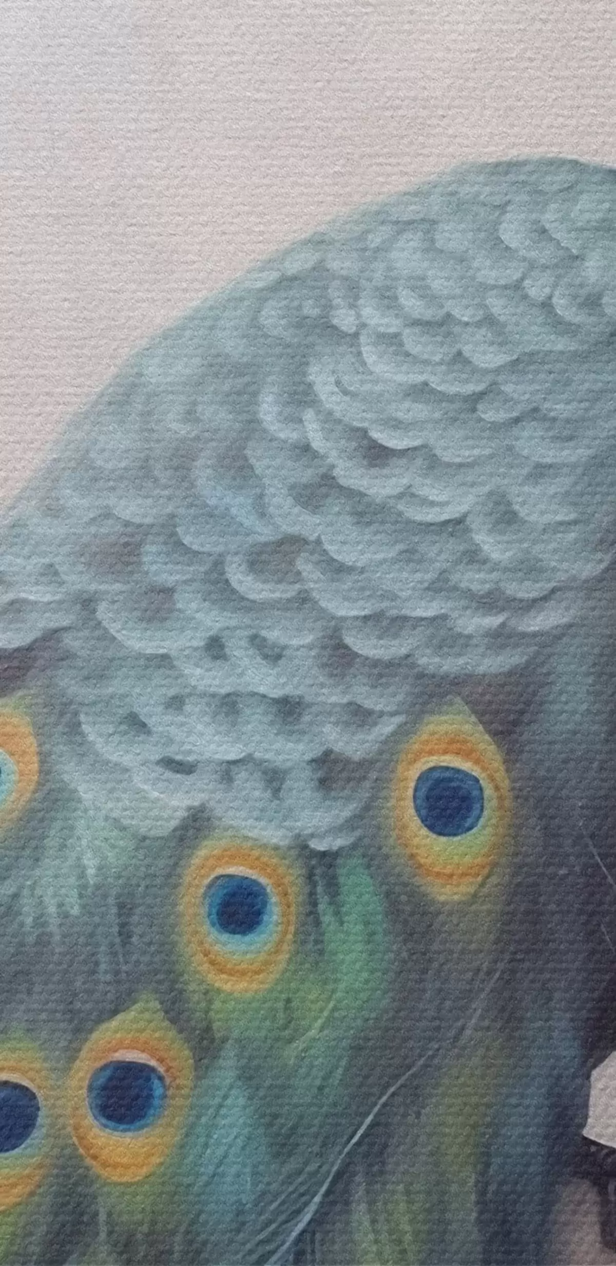 Het schilderij kan direct na ontvangst worden opgehangen. Het schilderij wordt opgespannen op een 2 cm breed houten spieraam.