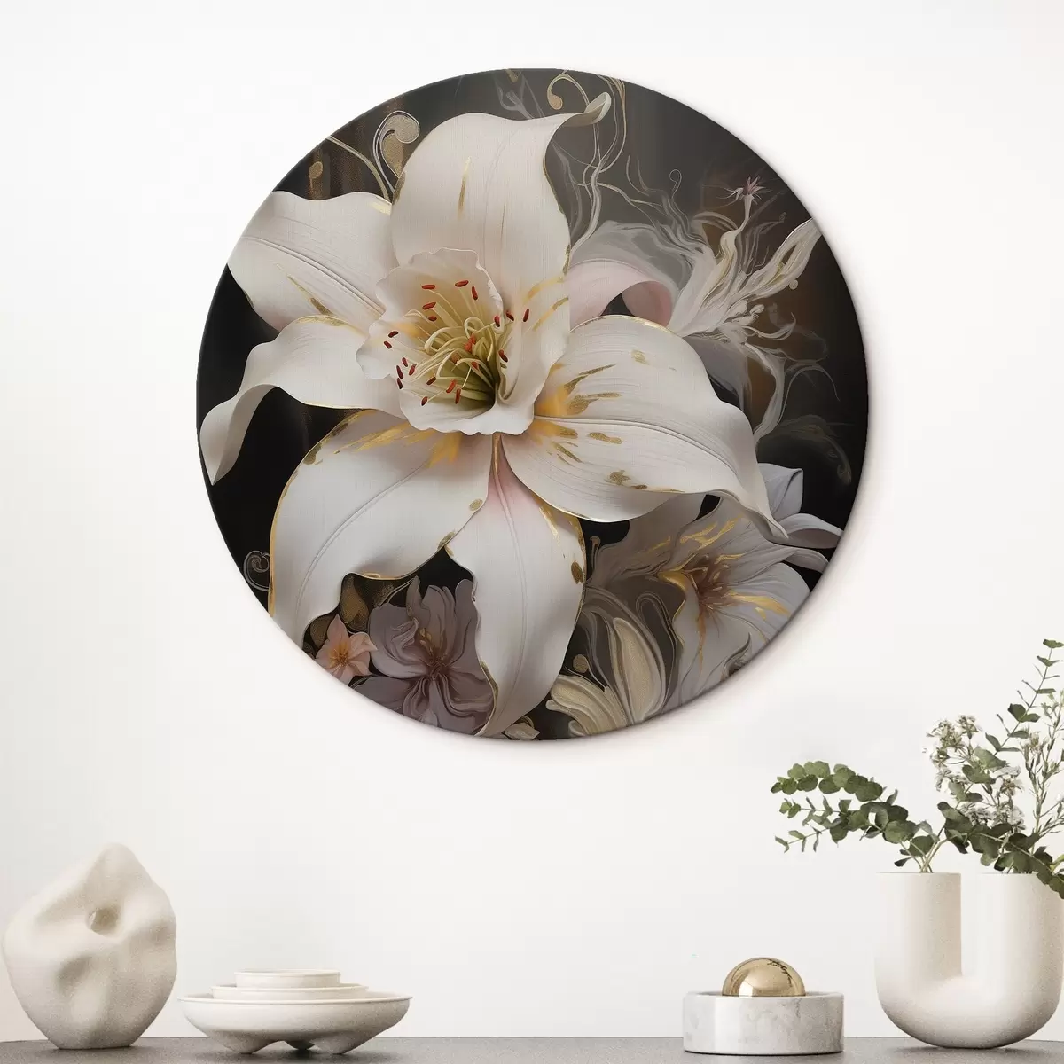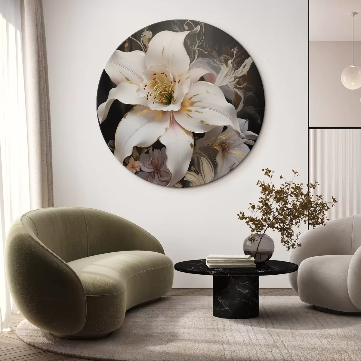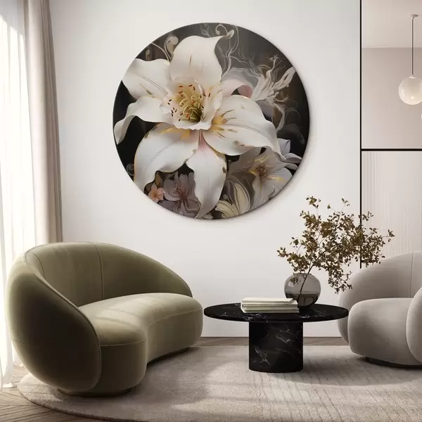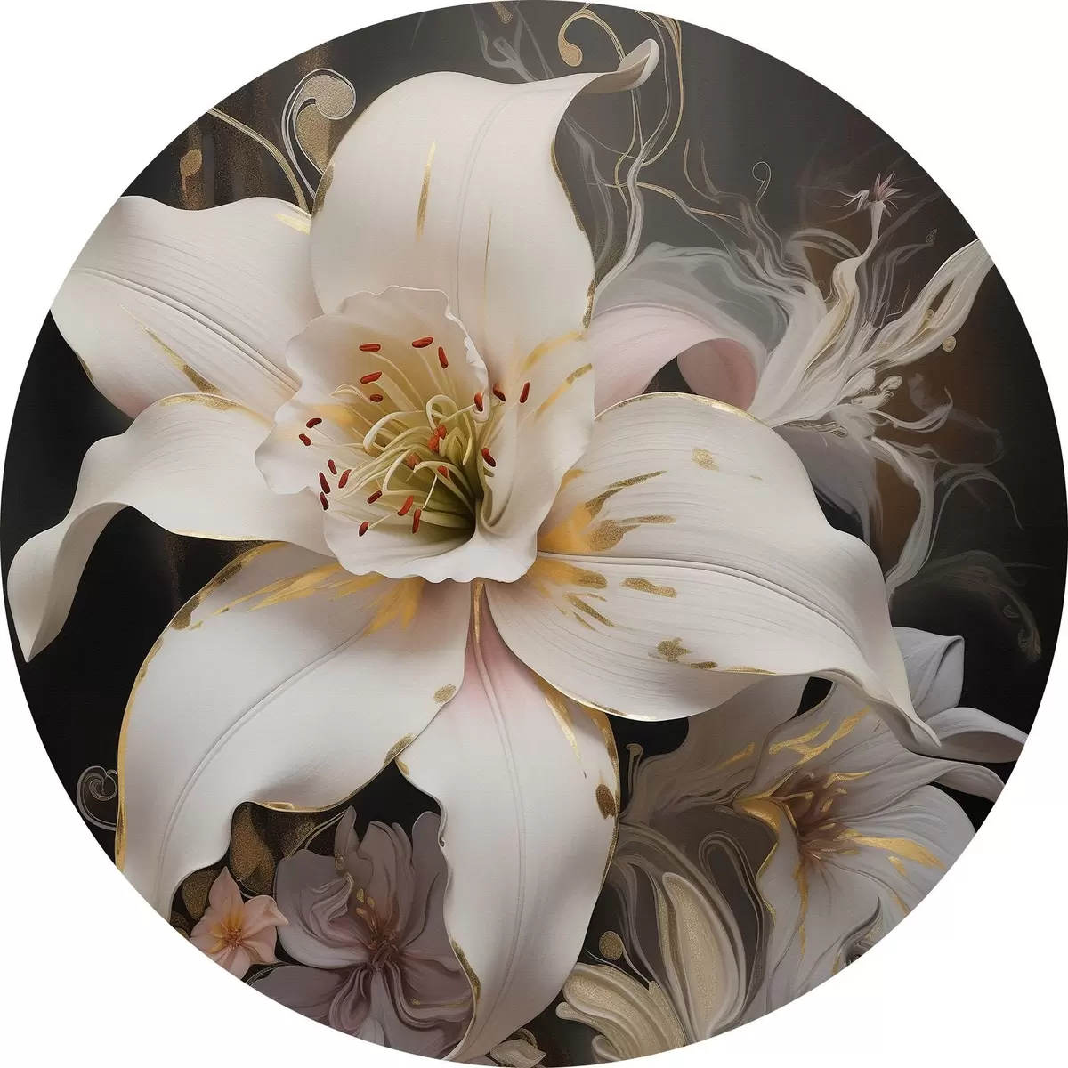Ronde schilderijen Close-up abstracte leliebloem op donkere achtergrond r43254