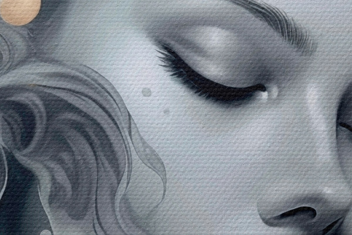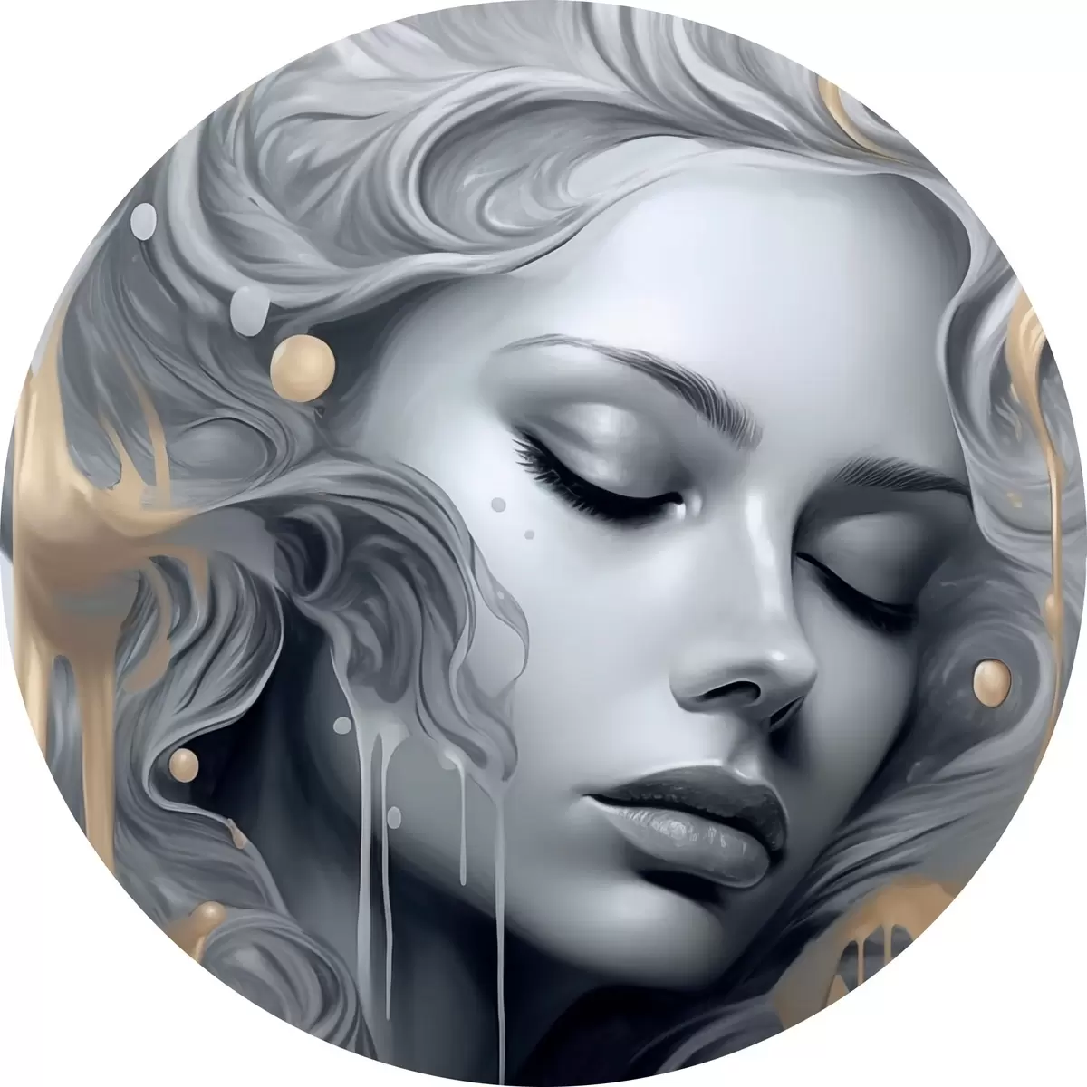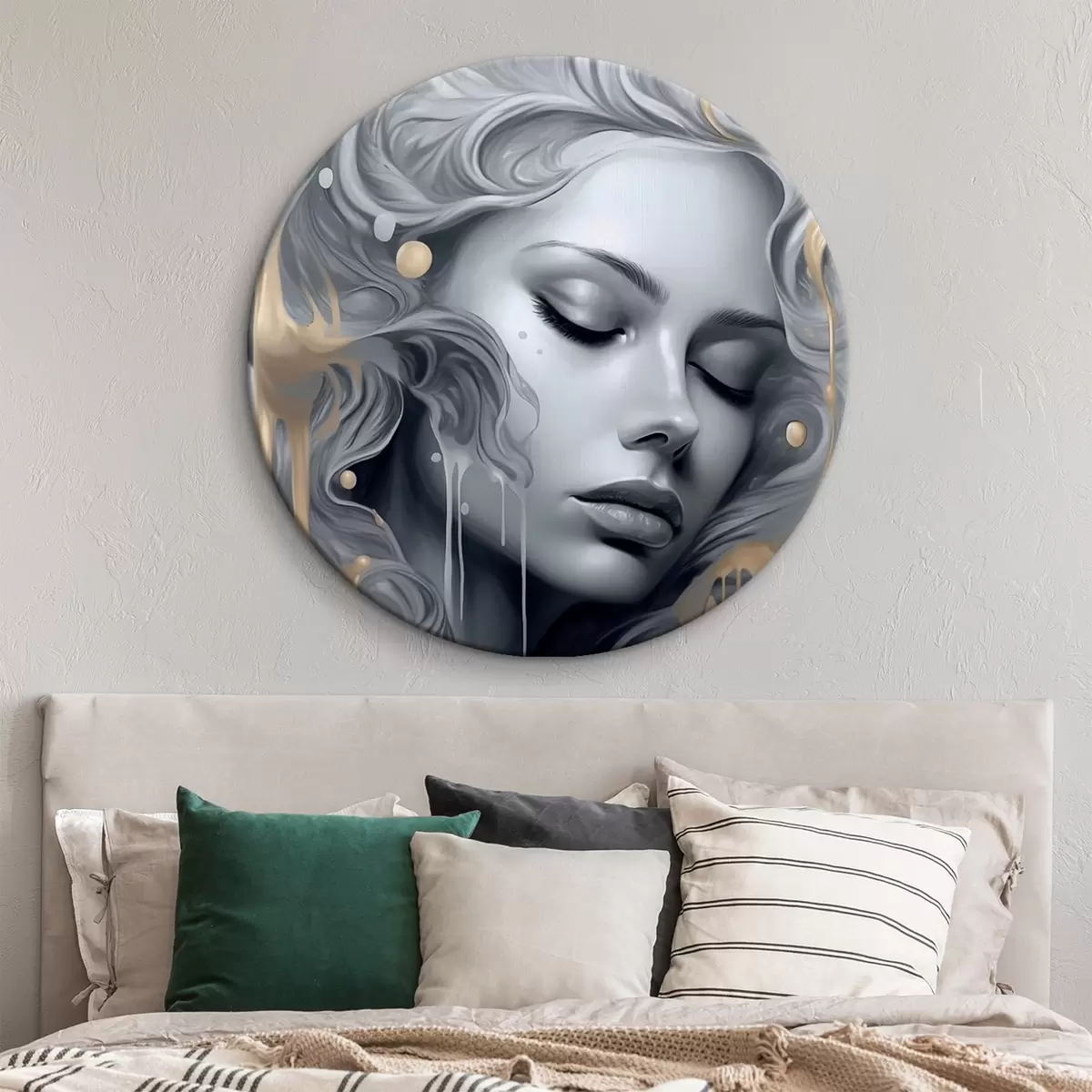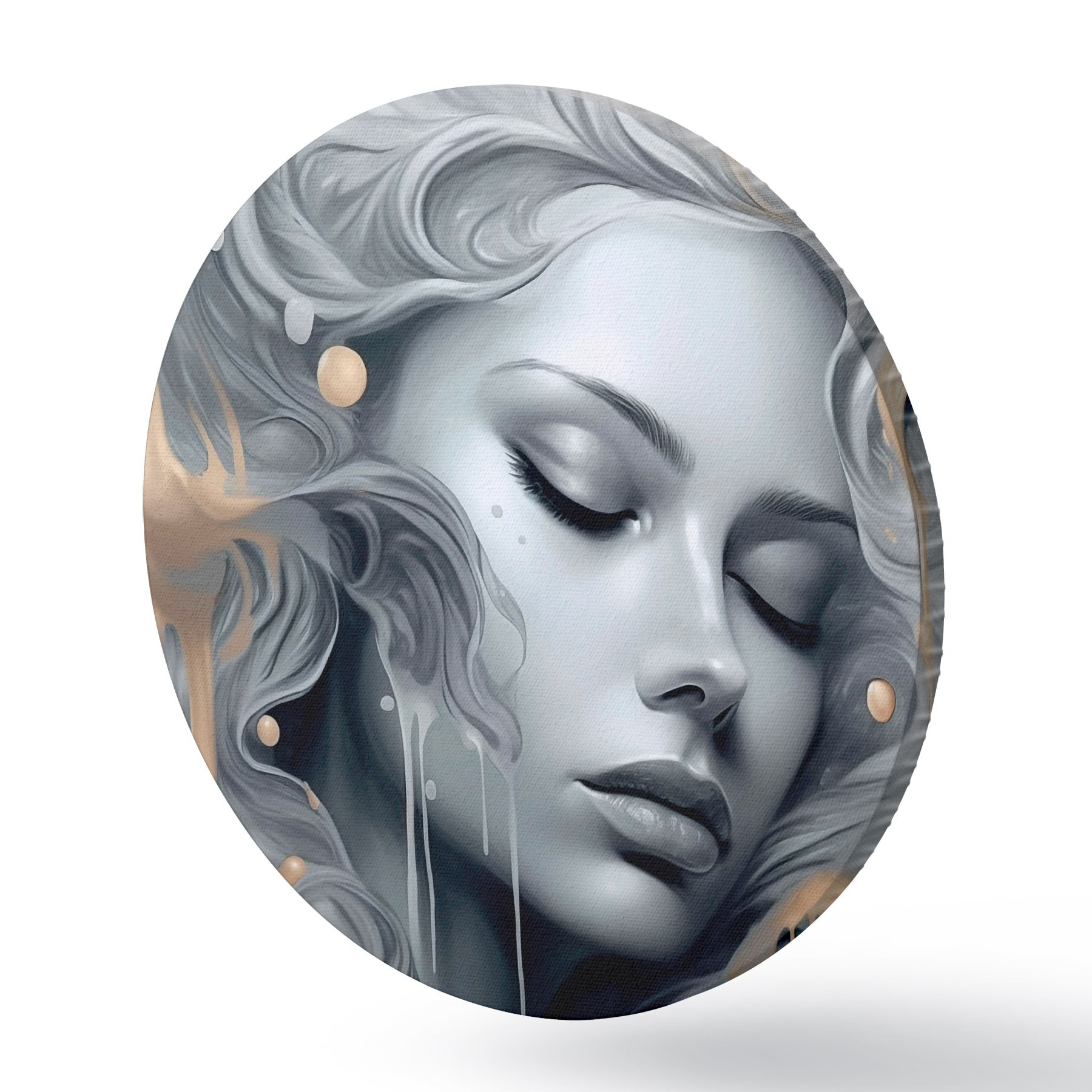 Ronde schilderijen Portret met vloeiende lijnen r43278