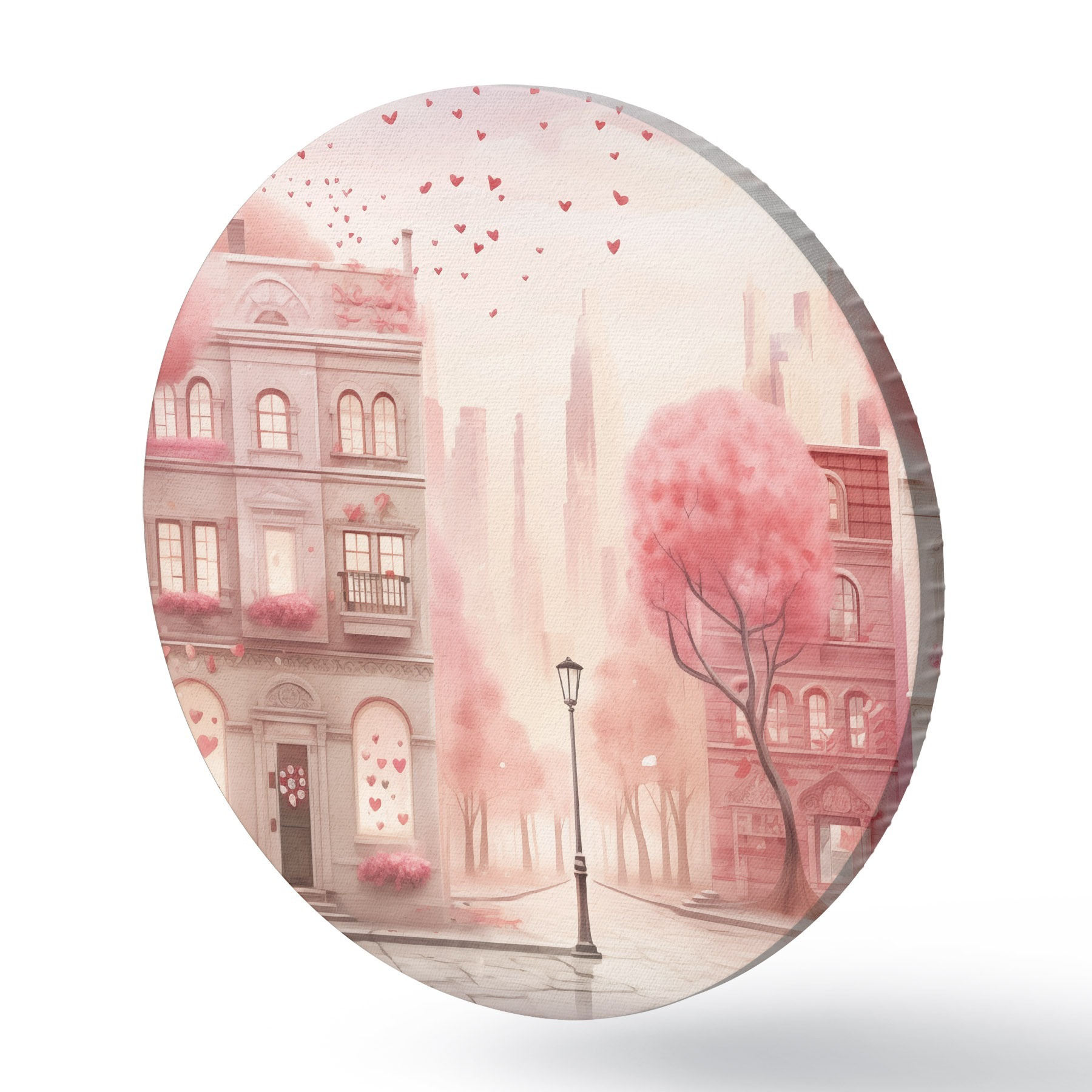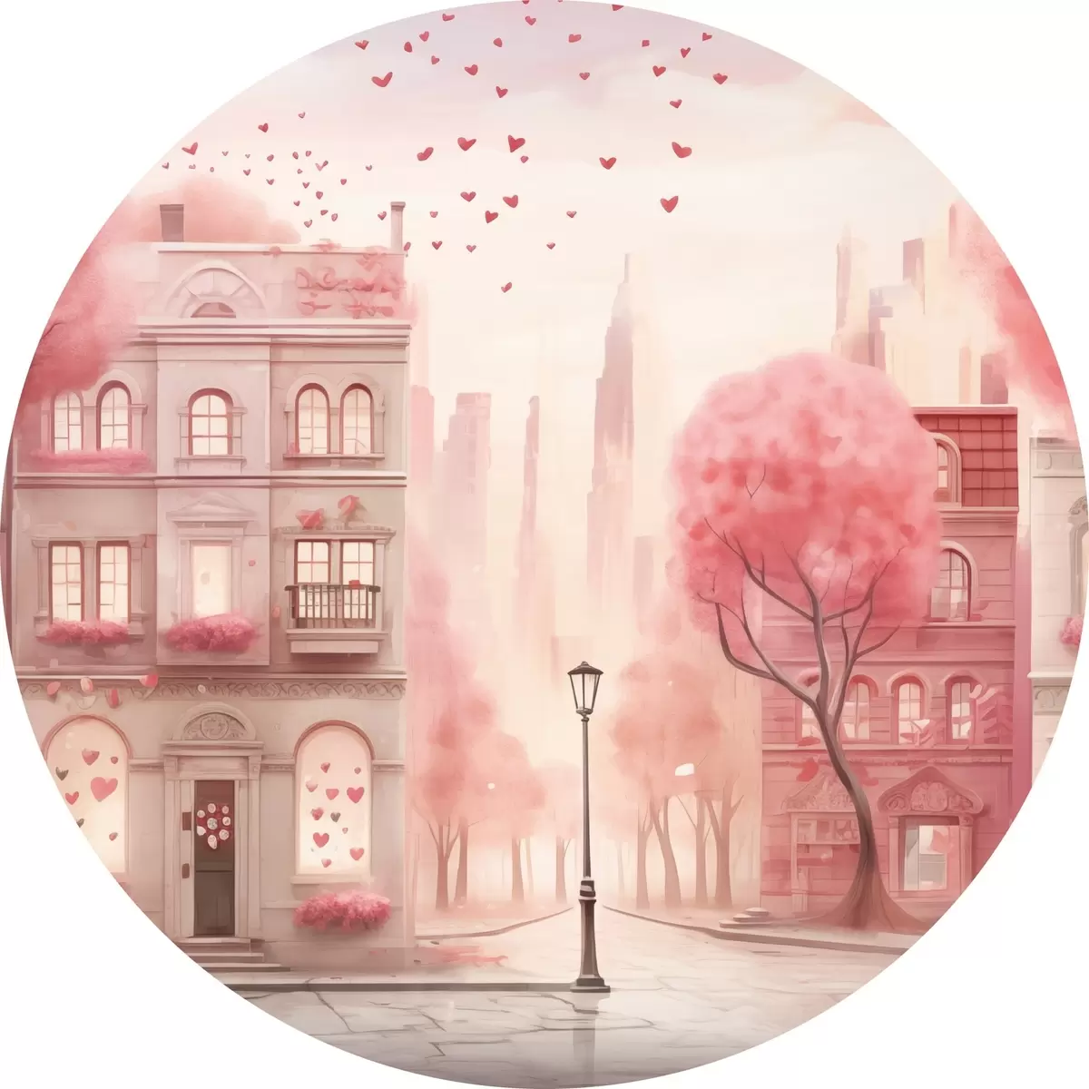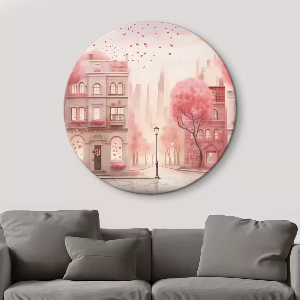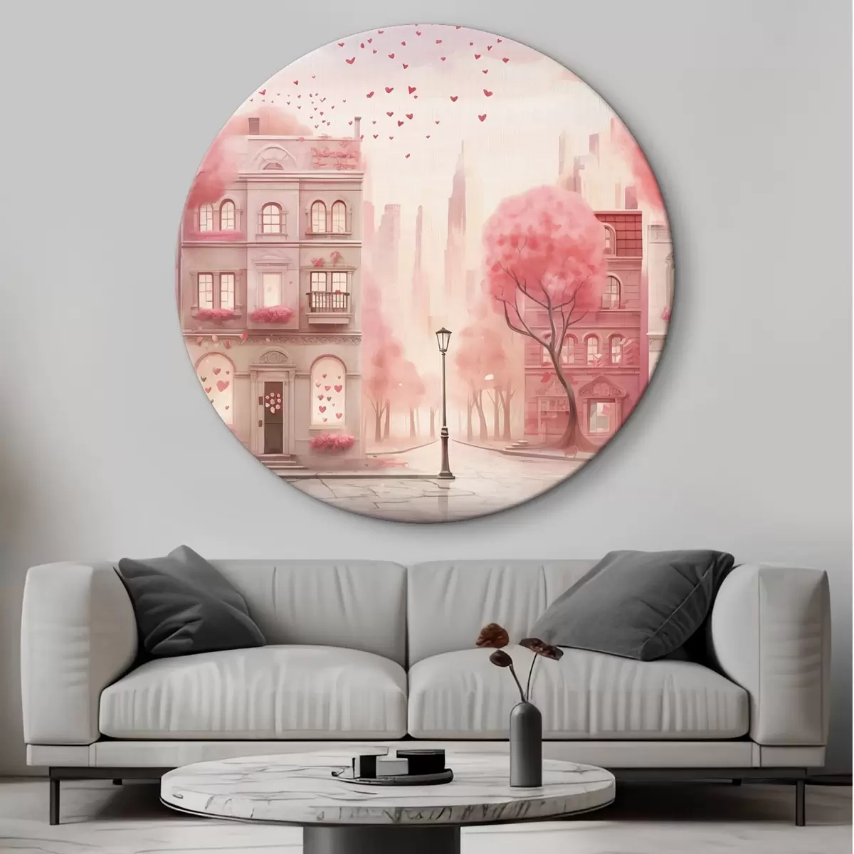 Ronde schilderijen Romantische roze straat met hartjes r43324