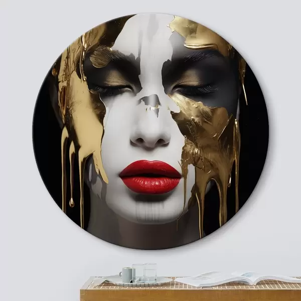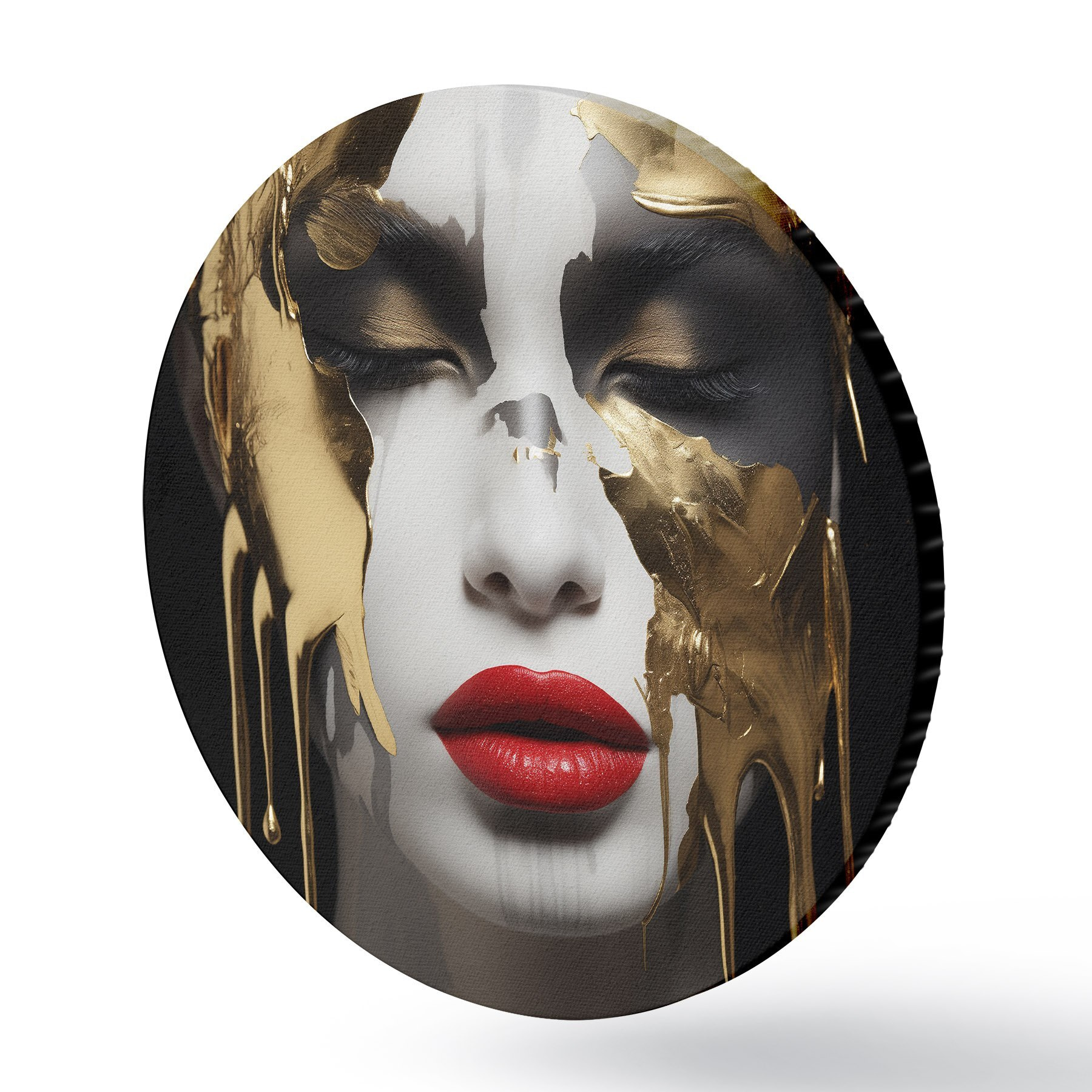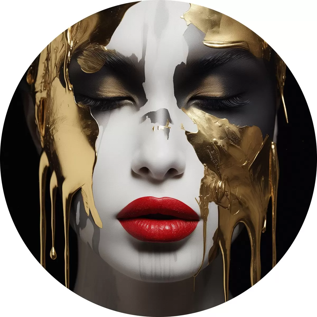 Ronde schilderijen Mensen, meisje met rode lippen r43336