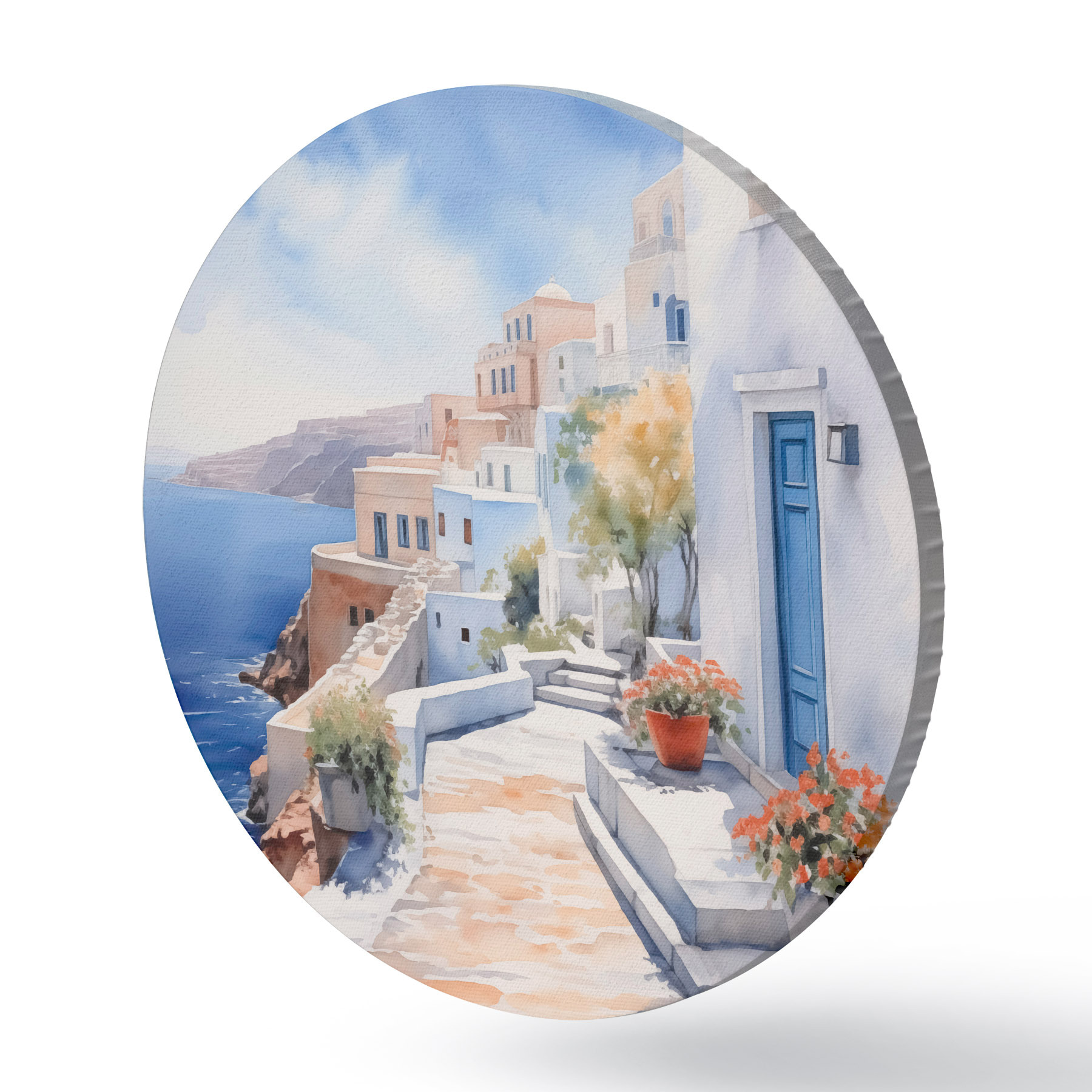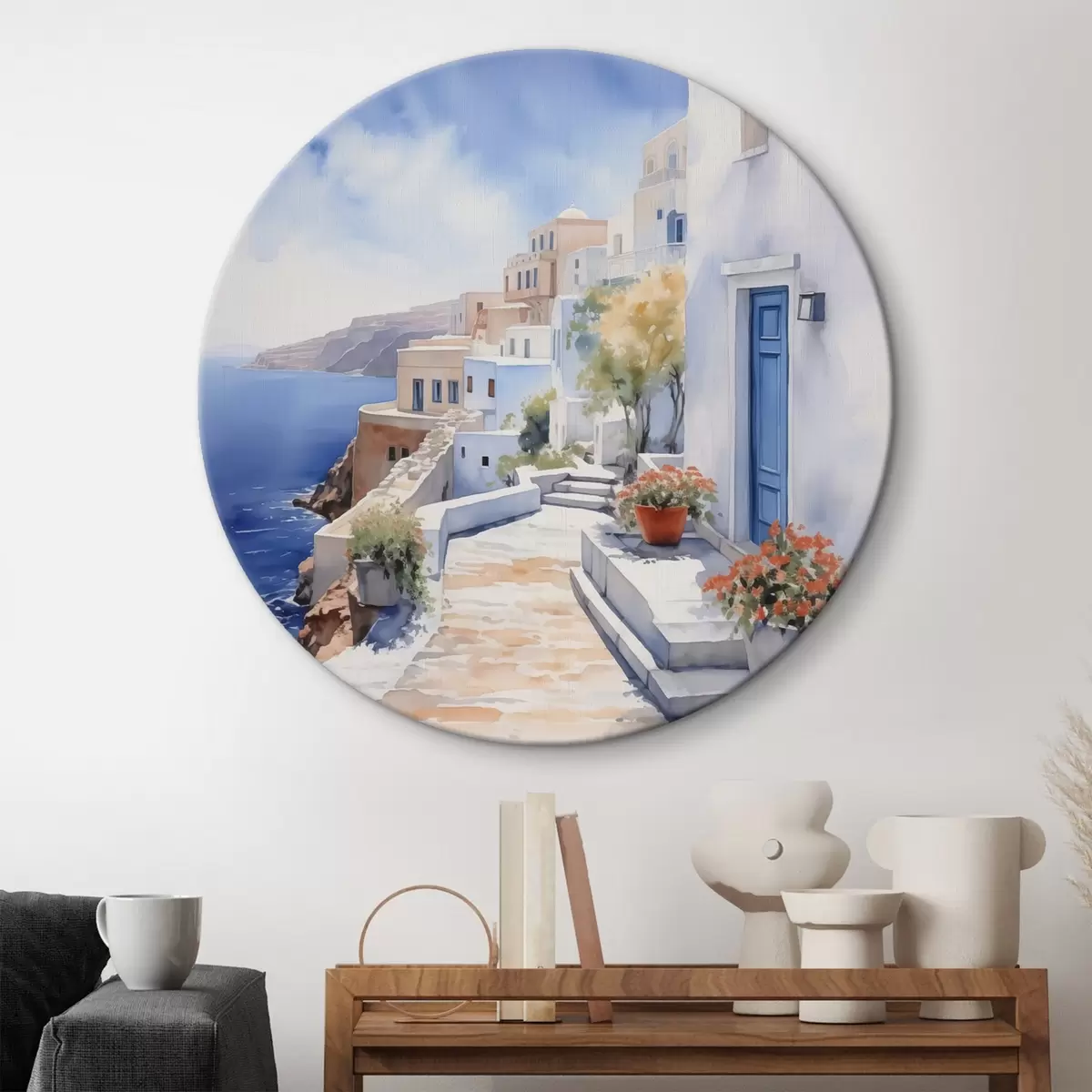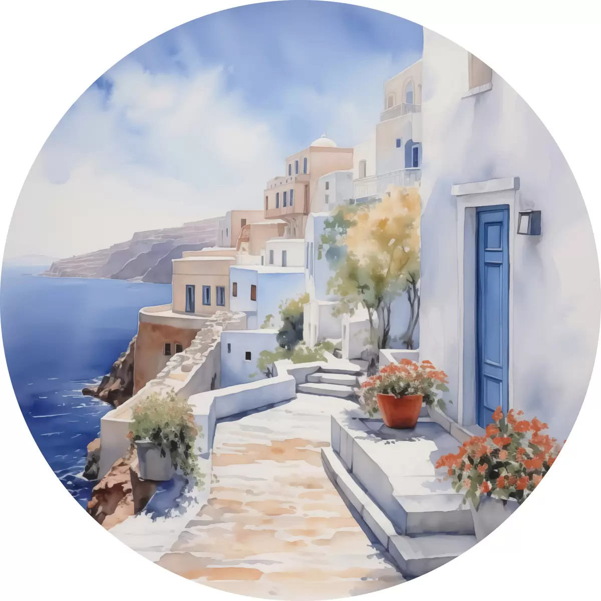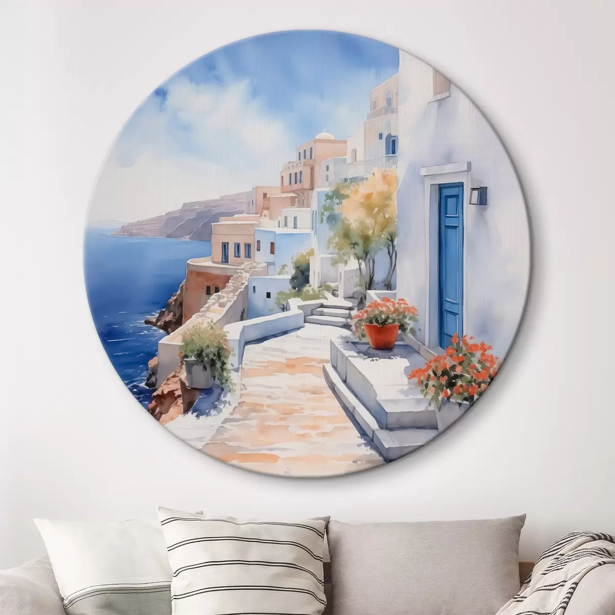 Ronde schilderijen Huizen aan zee imitatie van aquarel r43346