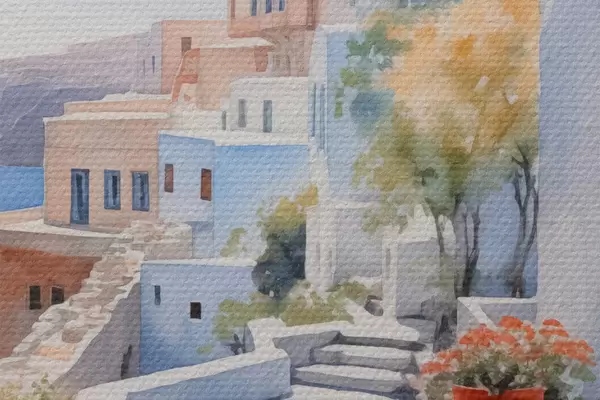 Afbeelding Huizen aan zee imitatie van aquarel Nr r43346