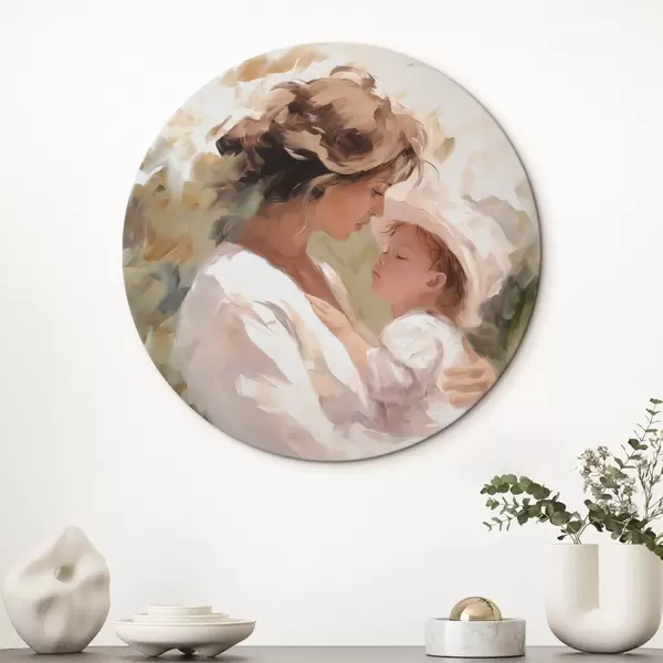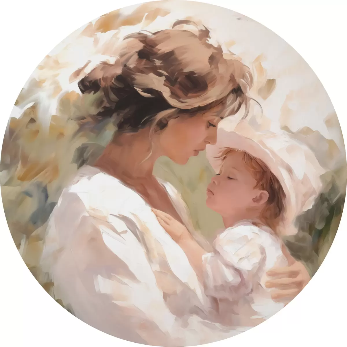 Ronde schilderijen Vrouw met kind imitatie van schilderij r43358