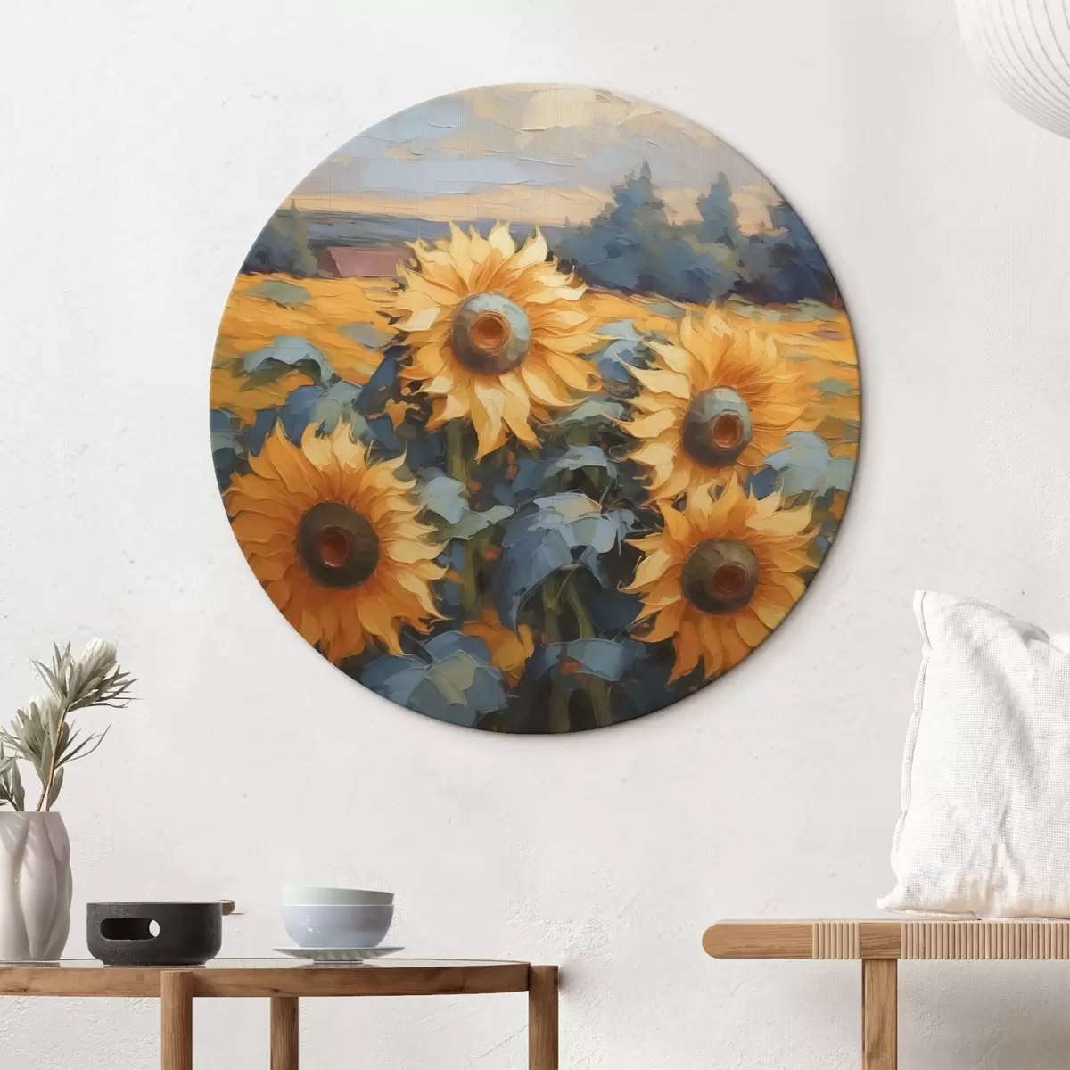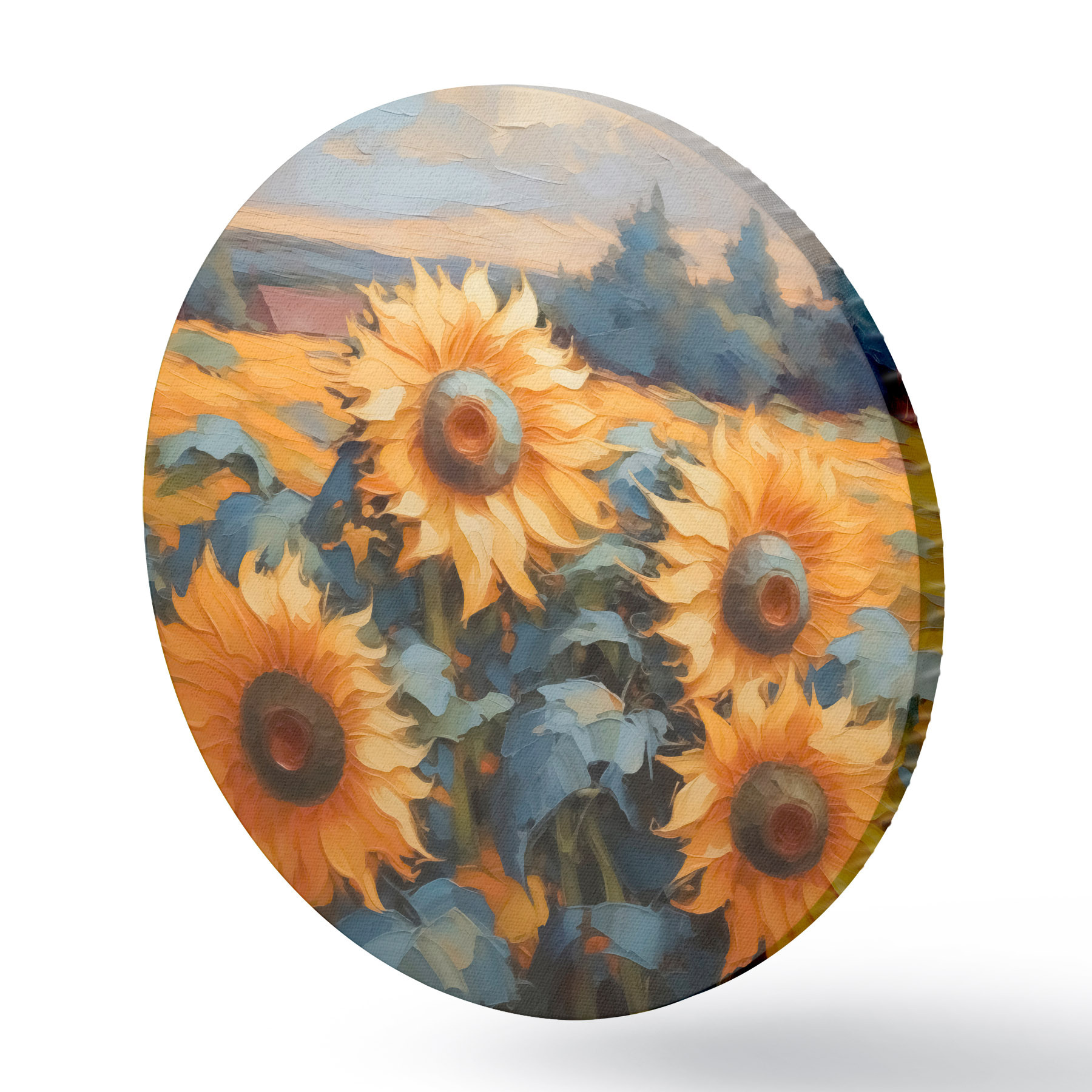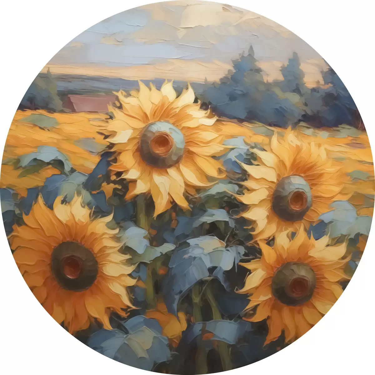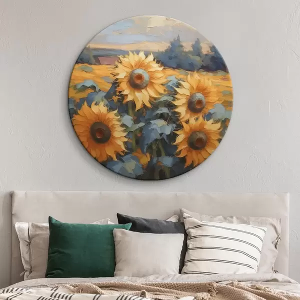 Ronde schilderijen Zonnebloemen imitatieschilderij r43359