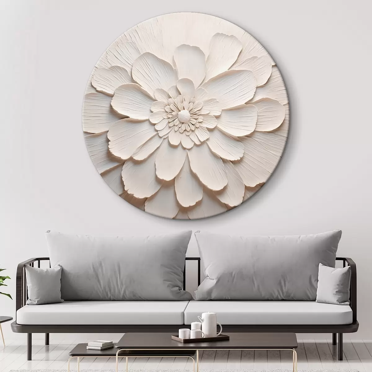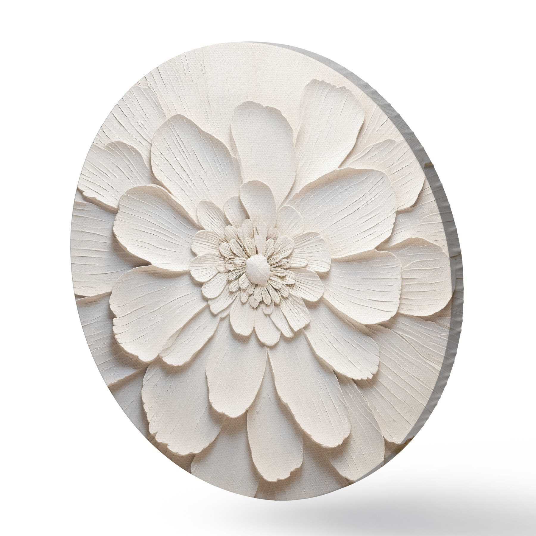 Ronde schilderijen Grote witte bloem met volumineuze bloemblaadjes r43364