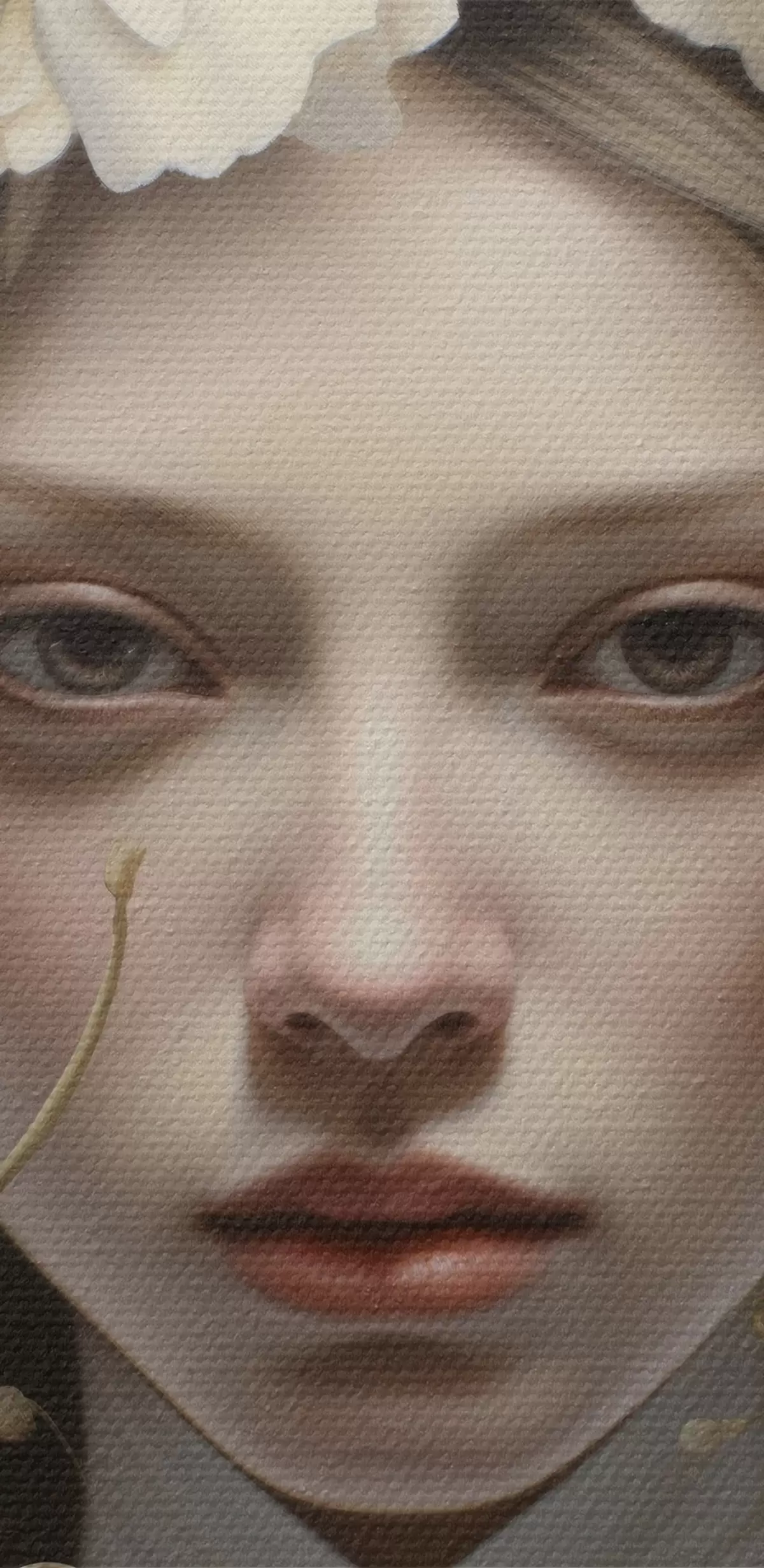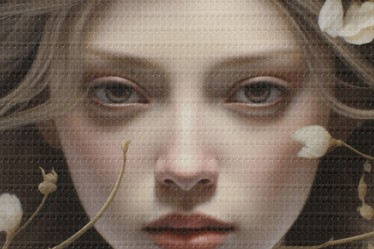 De fijne weving van draden op dit doek lijkt op het oppervlak van professionele schildersdoeken.