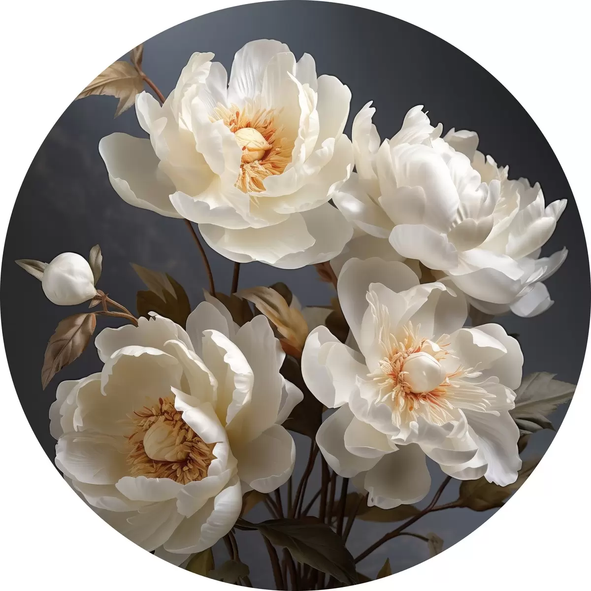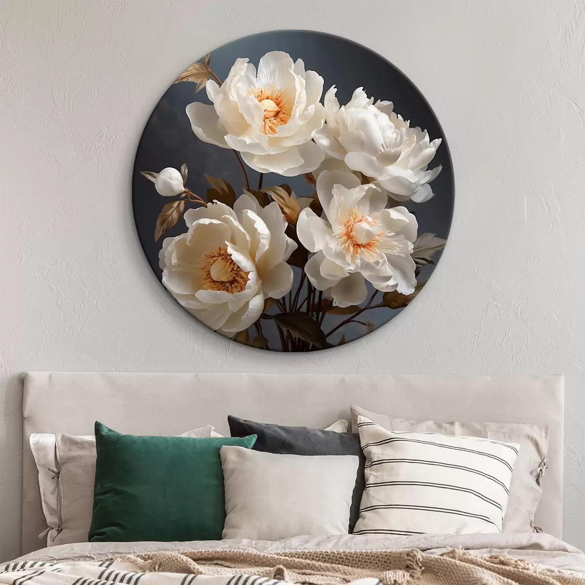 Ronde schilderijen Samenstelling van witte pioenen r43368