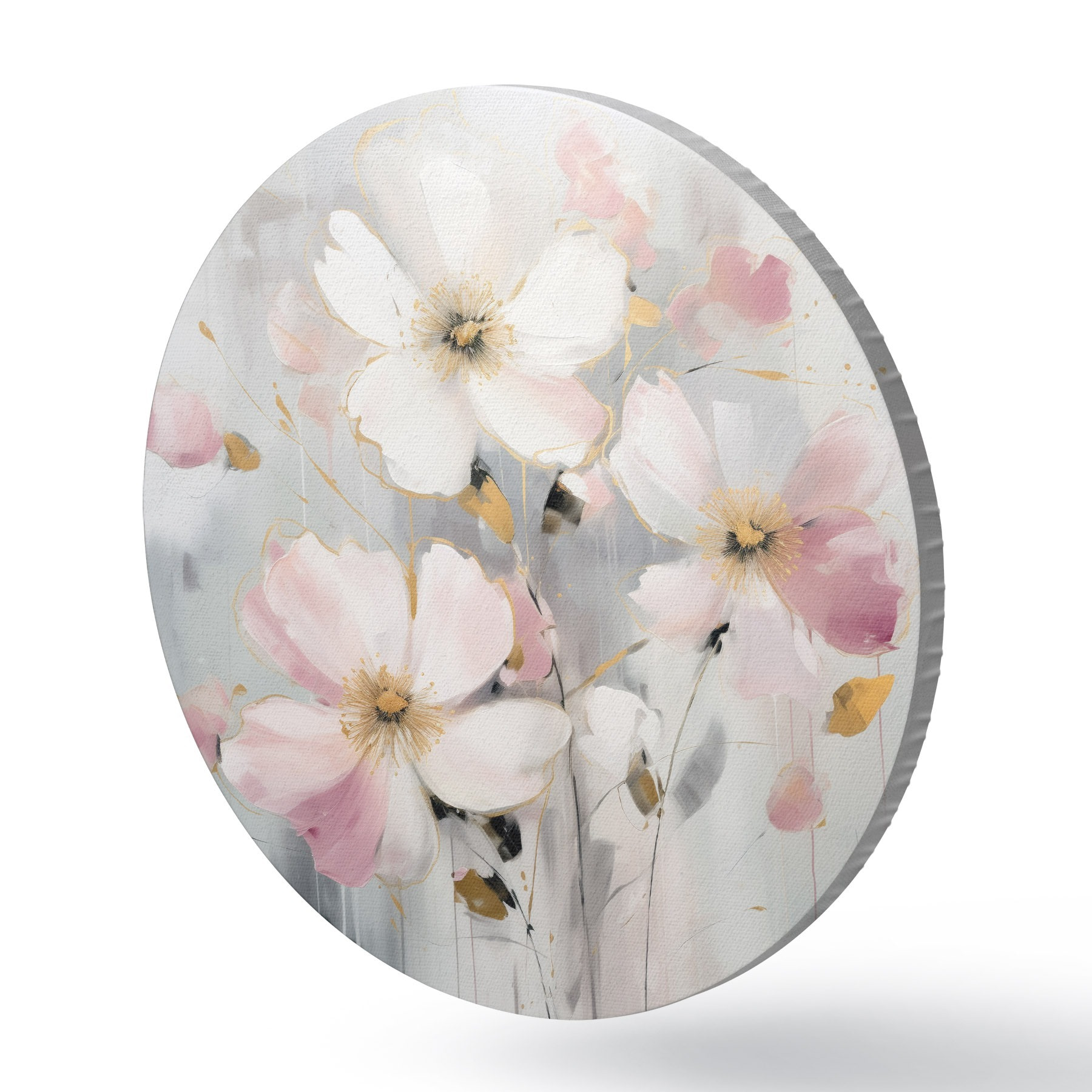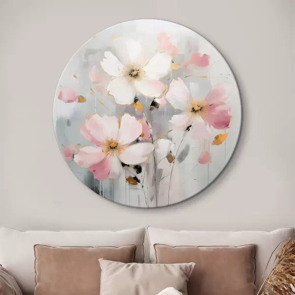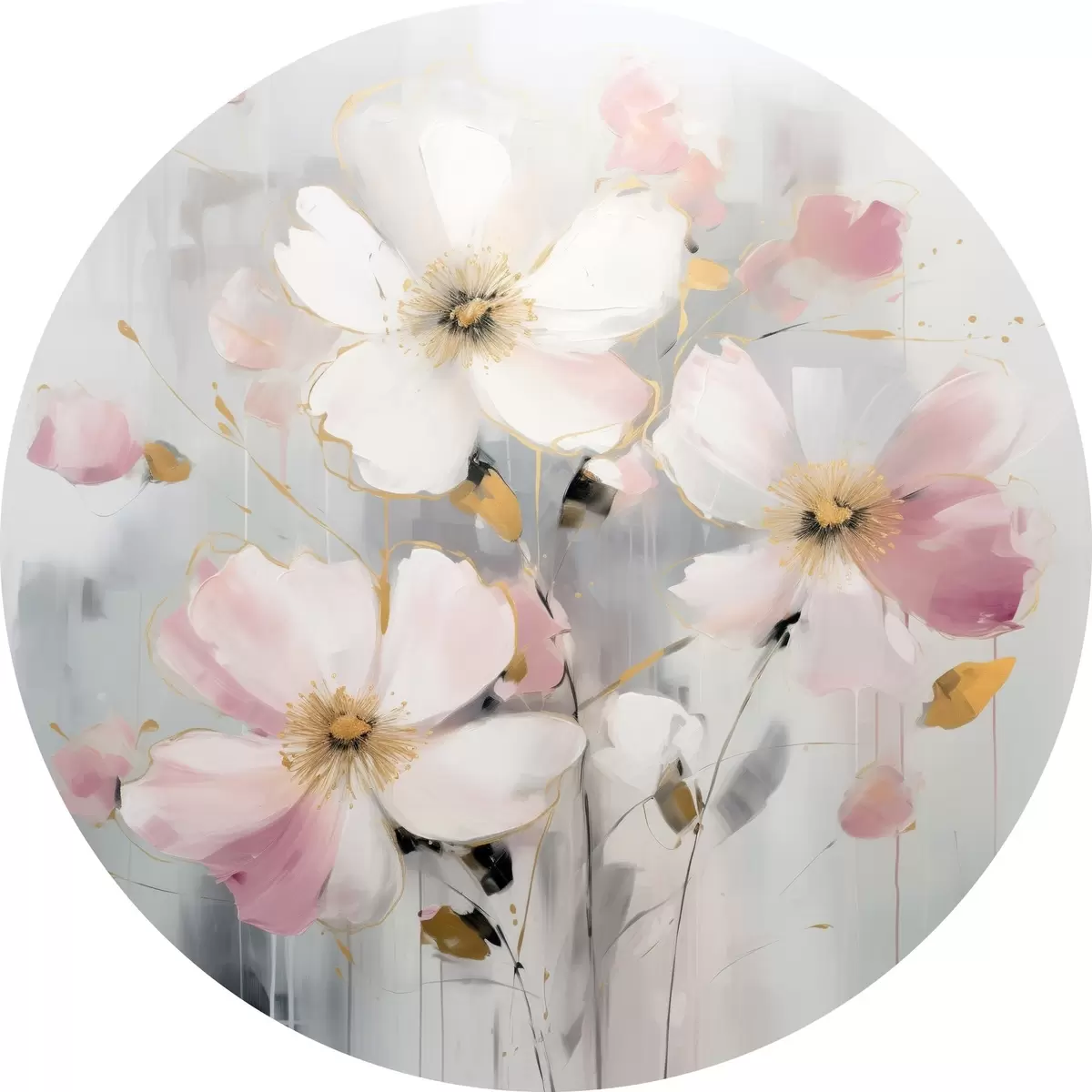 Ronde schilderijen Bloemen in zachte tinten met grote penseelstreken in schilderstijl r43380