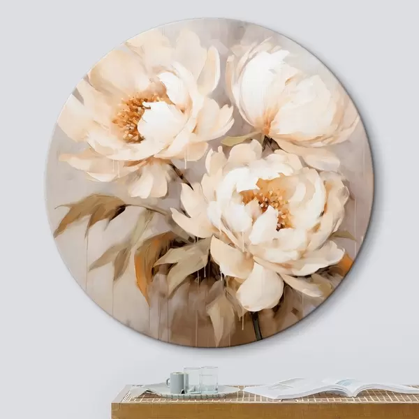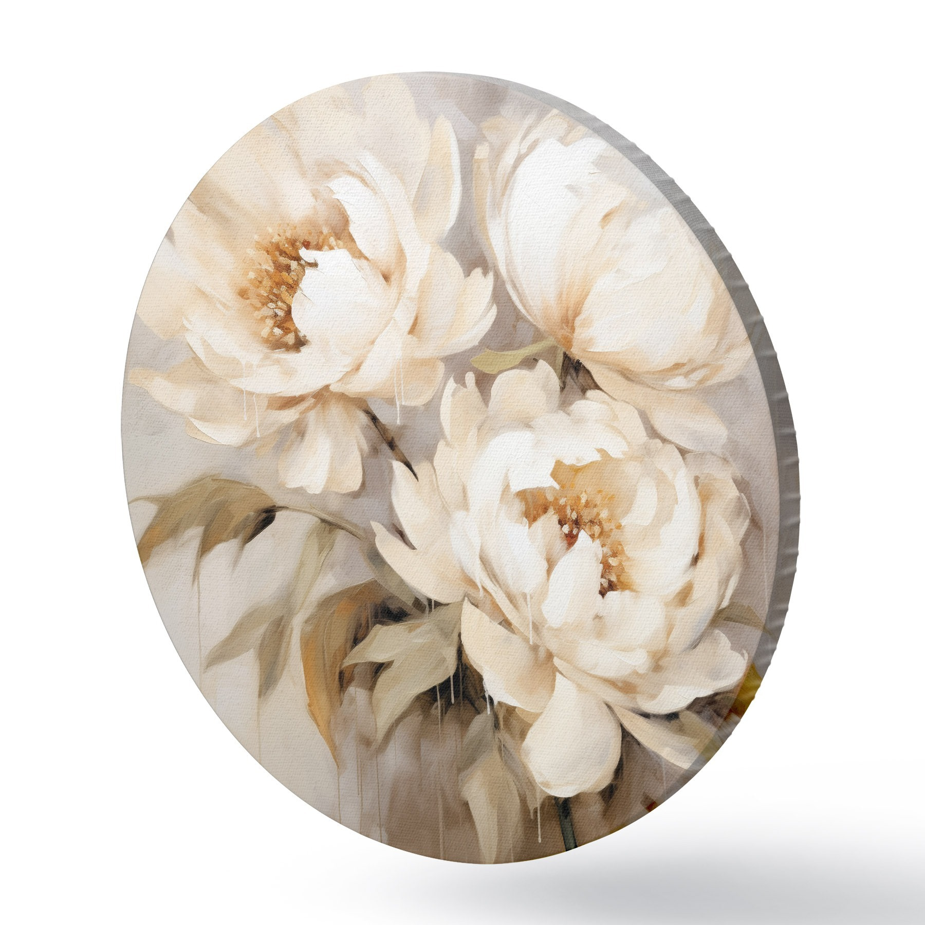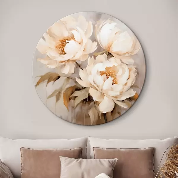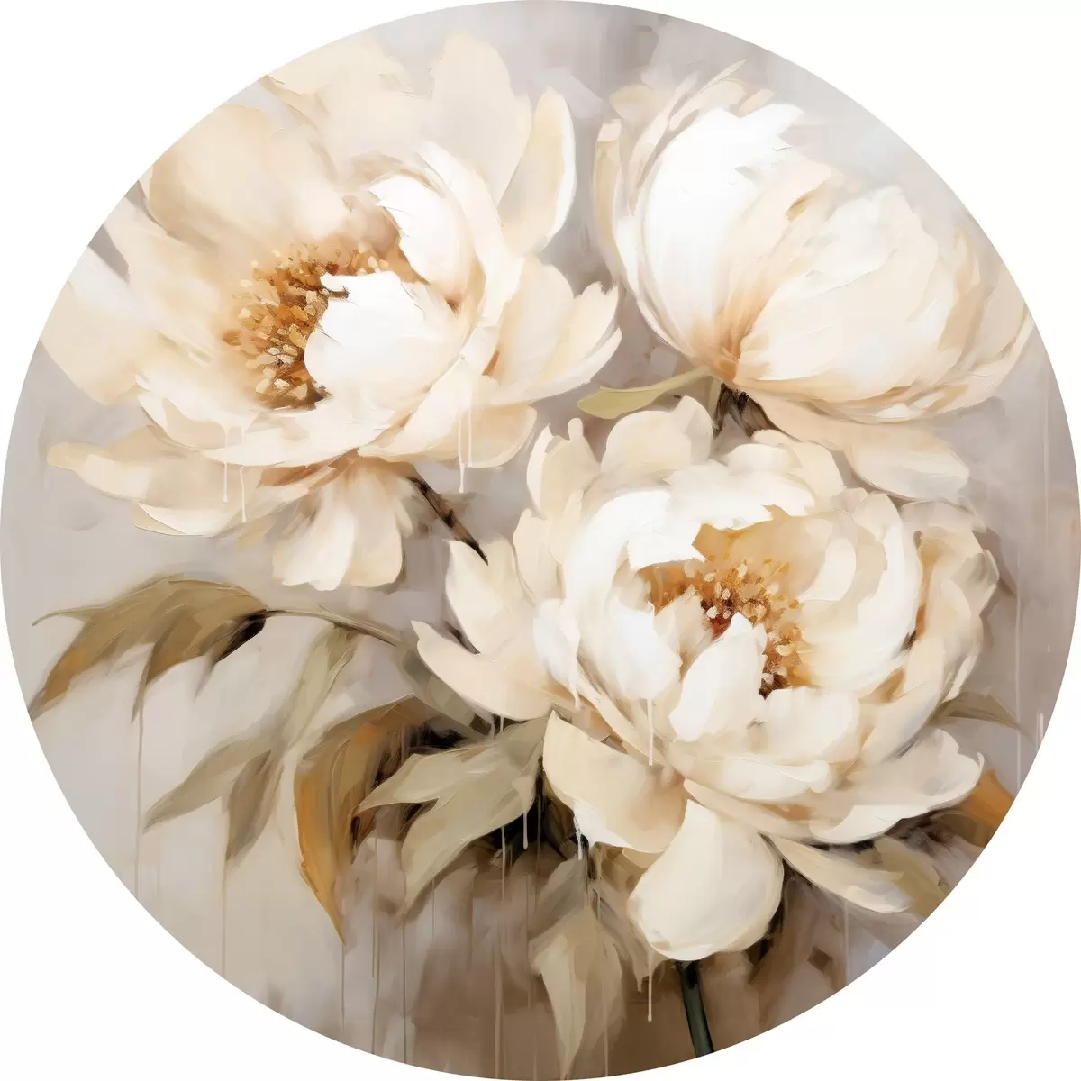 Ronde schilderijen Delicate pioenrozen in neutrale tinten in abstracte schilderstijl r43387