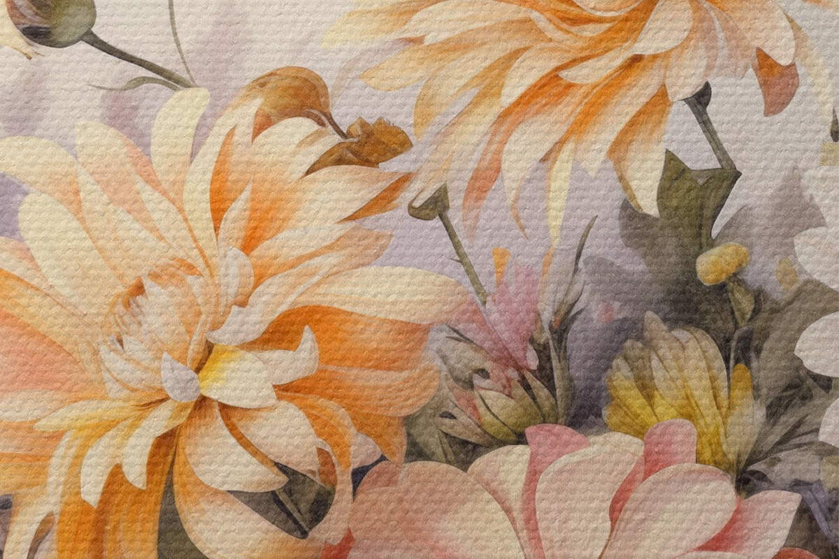 Afbeelding Een verzameling roze, gele en oranje bloemen, lichte achtergrond, zachte kleuren, vintage stijl, botanische illustratie Nr r43401
