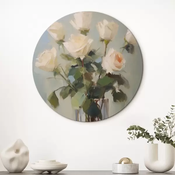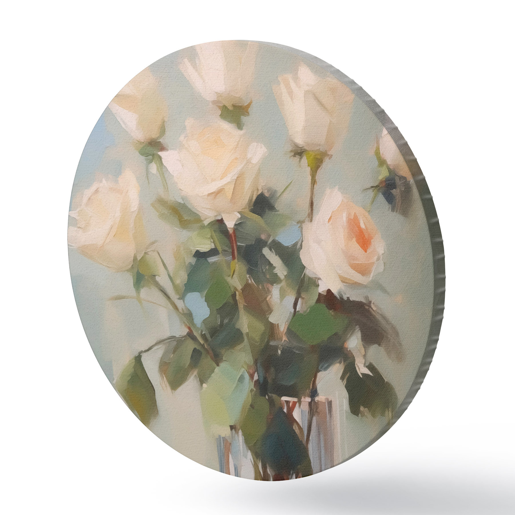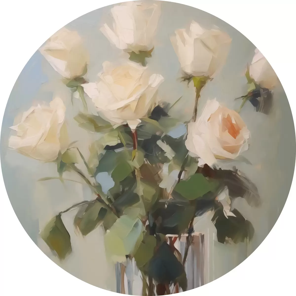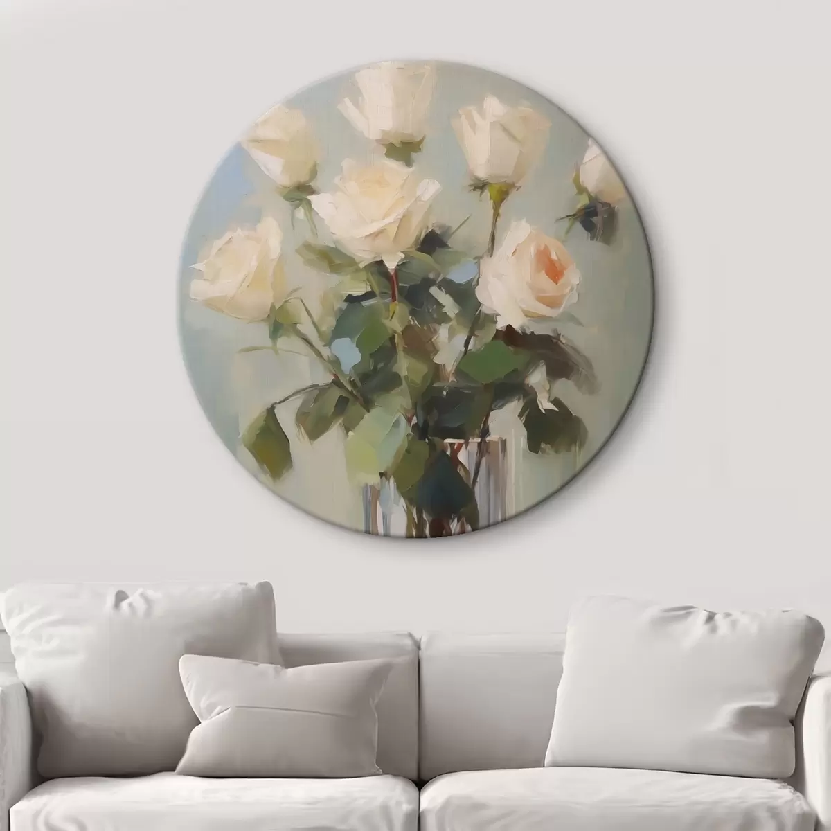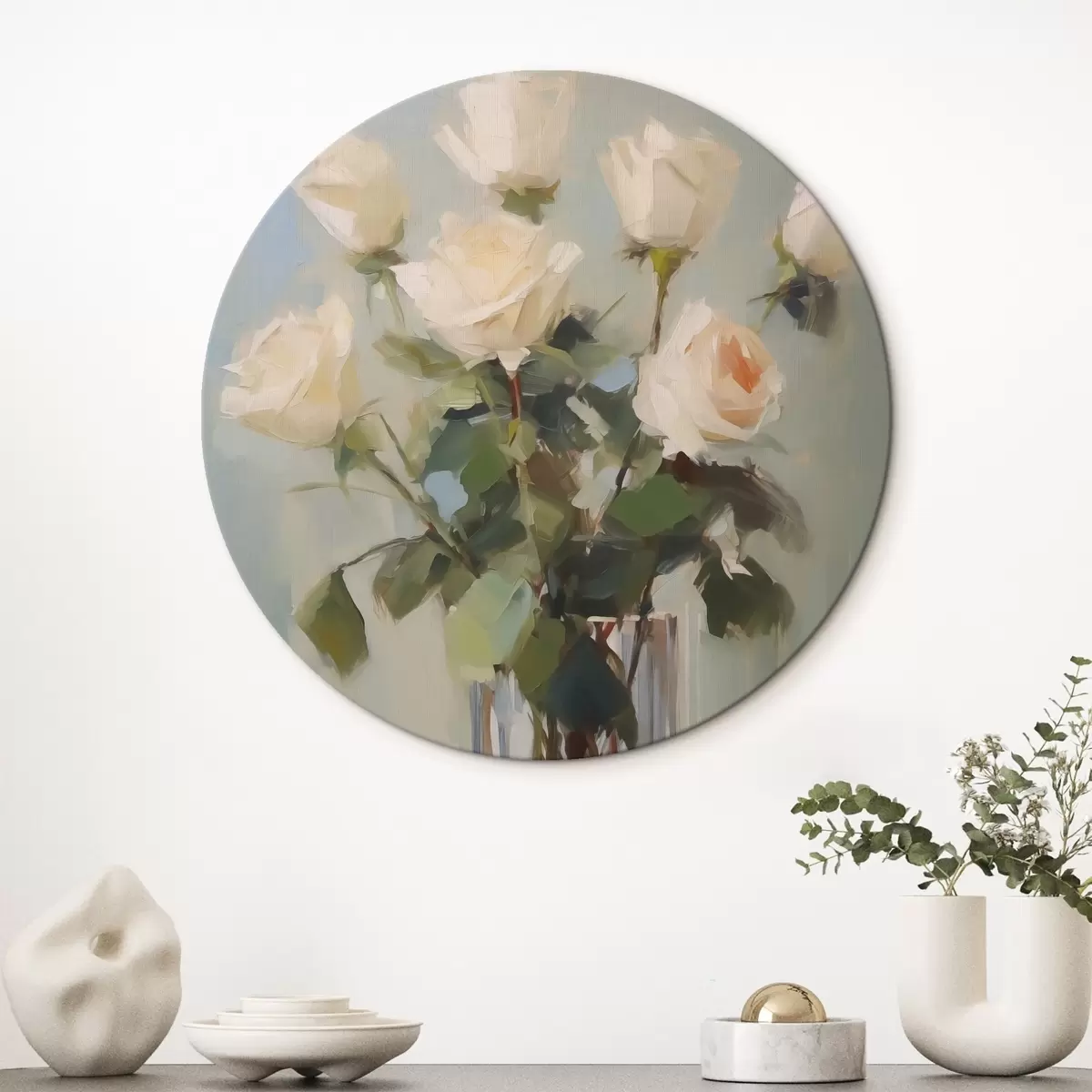 Ronde schilderijen Rozen in een glazen vaas imitatieschilderij r43432