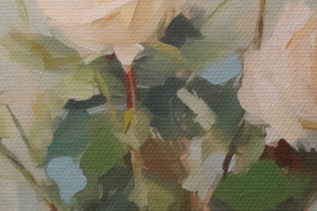 Er zijn drie soorten materiaal te bestellen: Economic Canvas - een dicht en duurzaam materiaal voor digitaal printen, identiek aan schildersdoek, waterdicht oppervlak, realistische weergave van details, materiaal met gemiddelde korrel. Premium Canvas - de textuur lijkt op die van schildersdoek (verweven kleine draden). Zachte, gedetailleerde reproductie van de afbeelding op een mat oppervlak. Eco-Premium - hoogwaardige 100% katoenen stof. Dankzij de natuurlijke katoenvezels is het materiaal duurzaam en slijtvast. Uitstekende kleurweergave en detail.