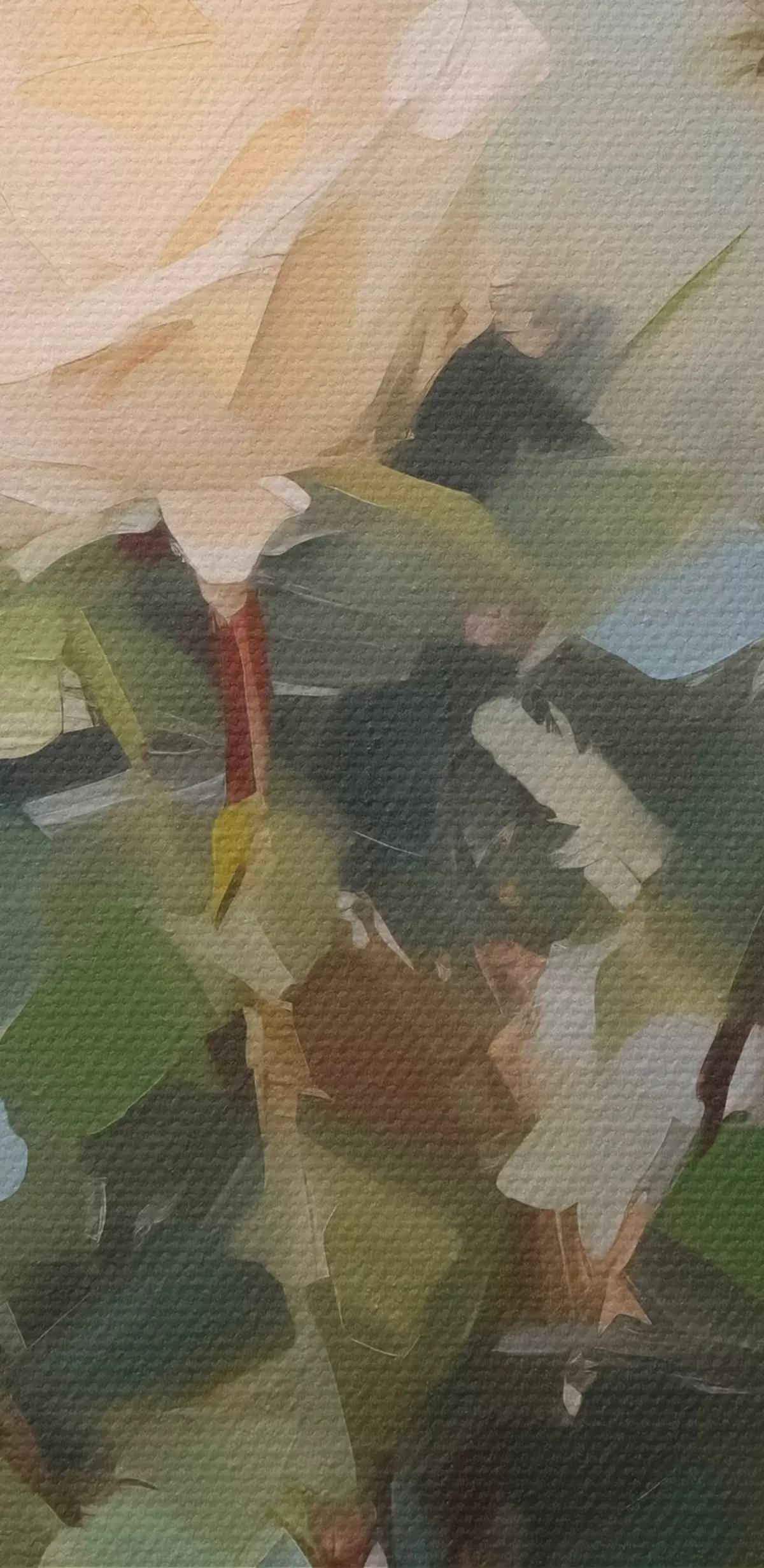 Het schilderij kan direct na ontvangst worden opgehangen. Het schilderij wordt opgespannen op een 2 cm breed houten spieraam.