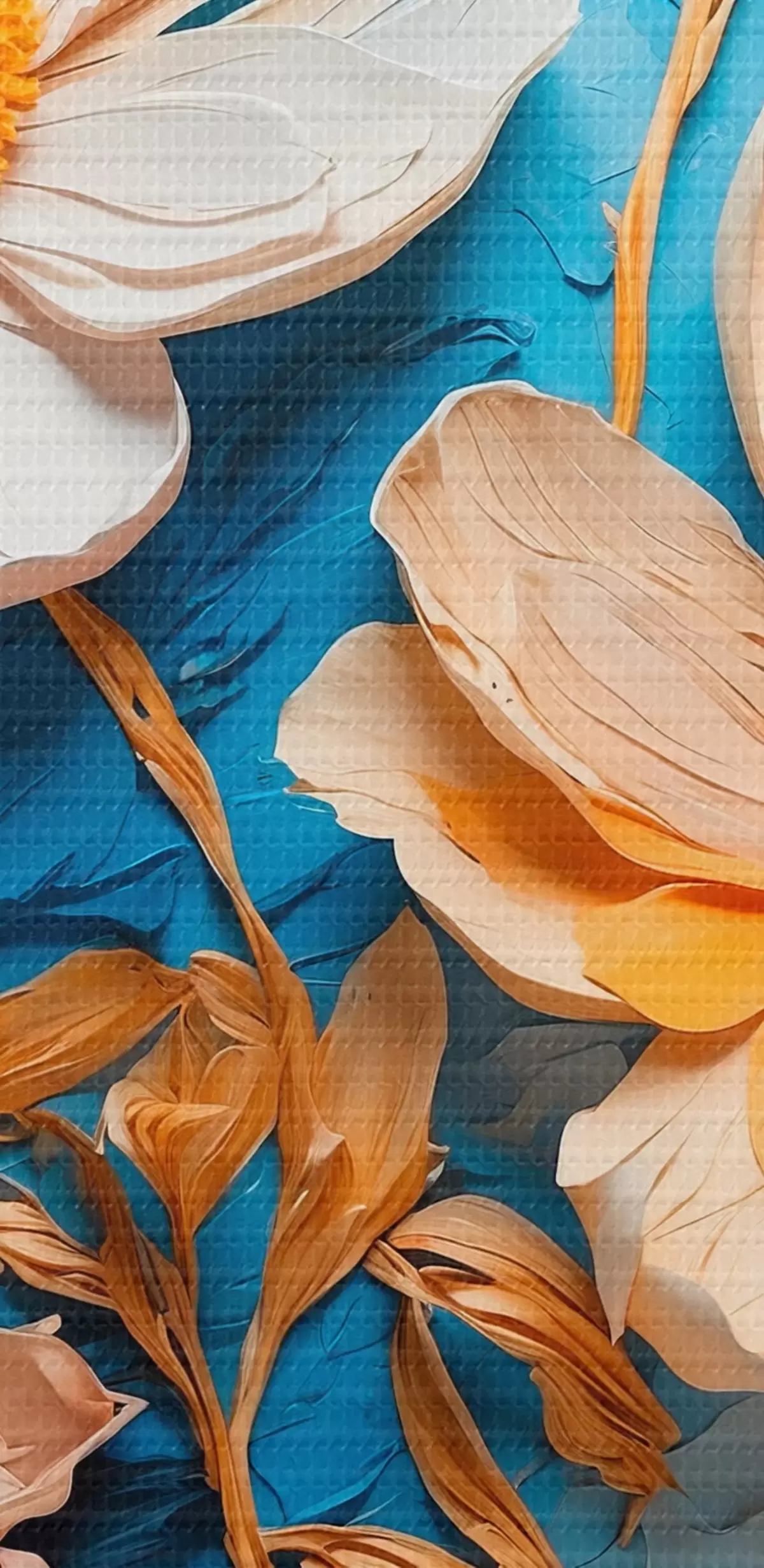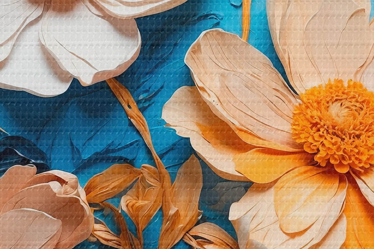 Afbeelding Witte bloemen op blauwe achtergrond Nr r43446