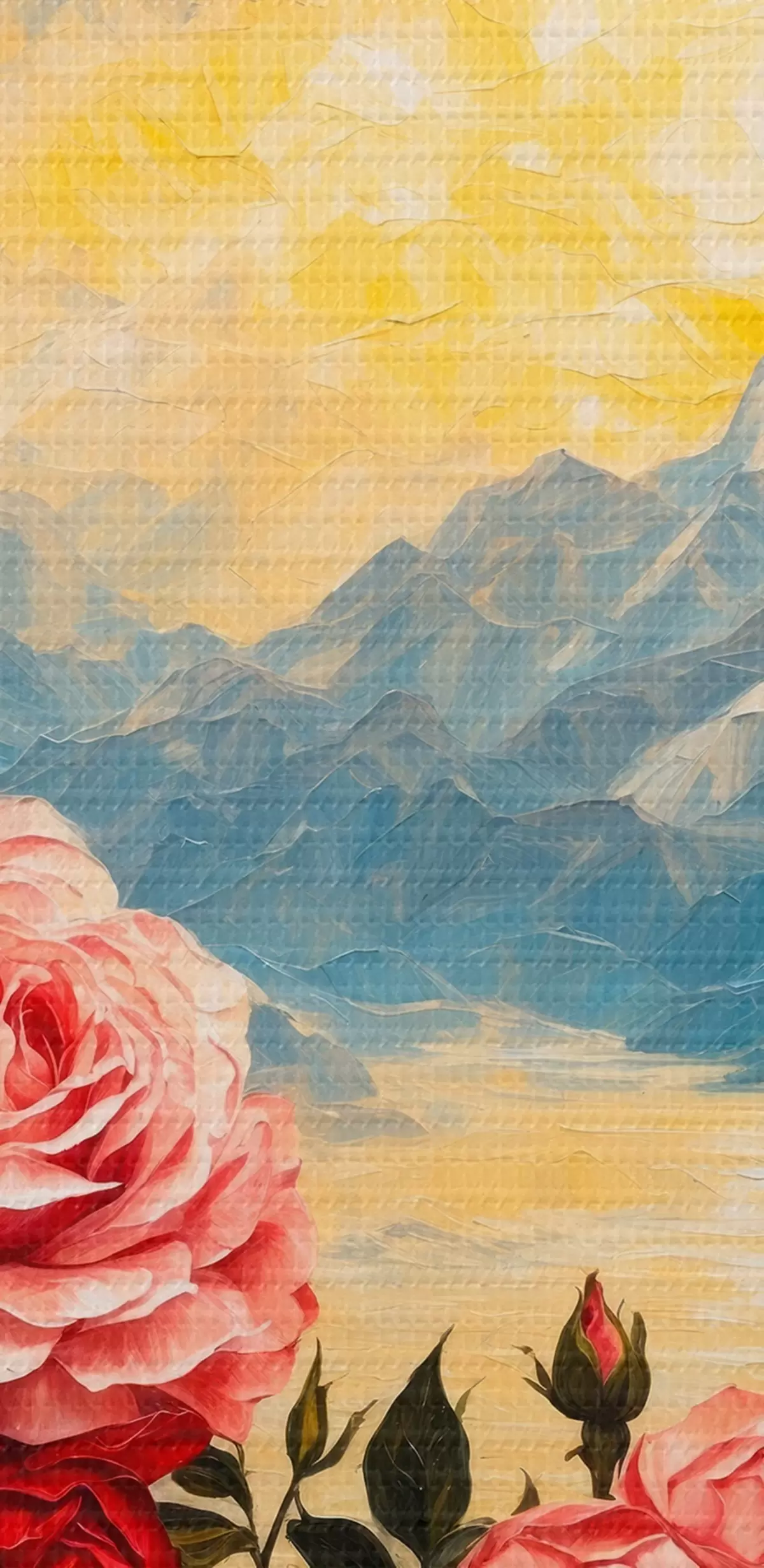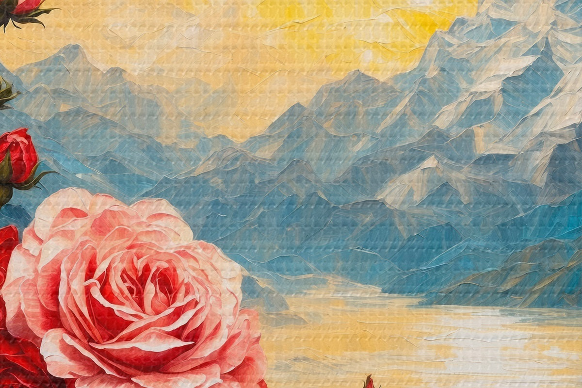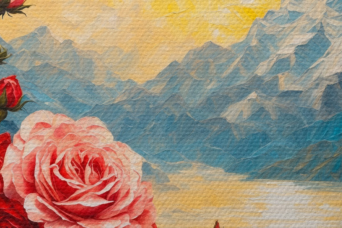 Afbeelding Rozen op bergen achtergrond in olieverfschilderij stijl Nr r43457