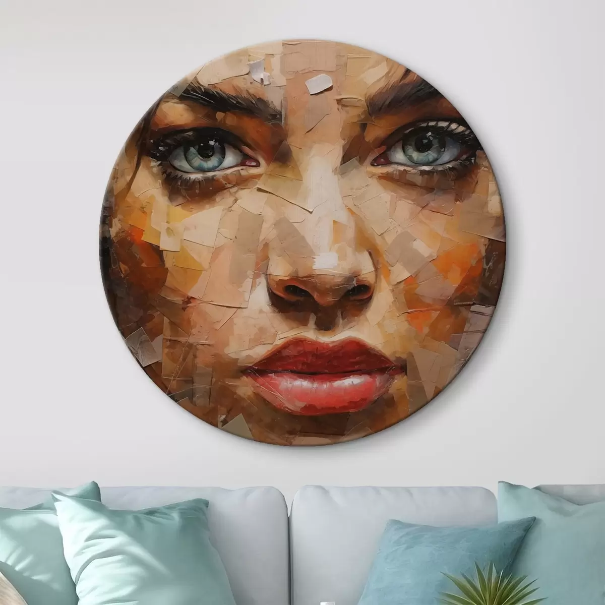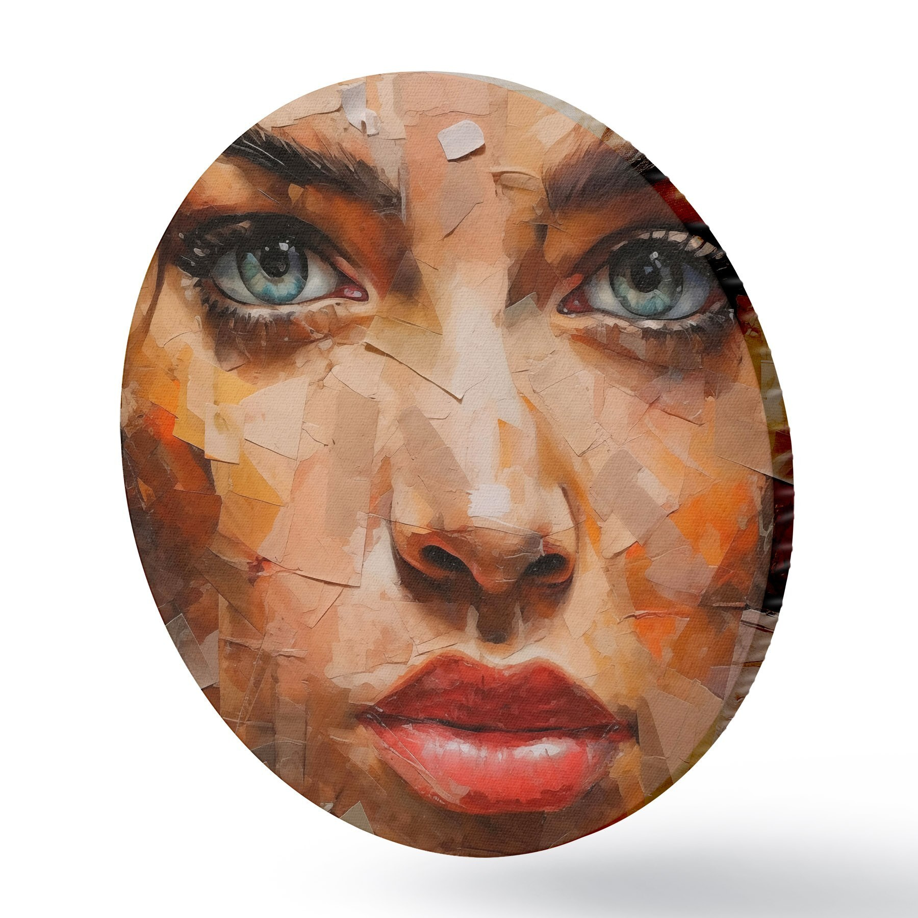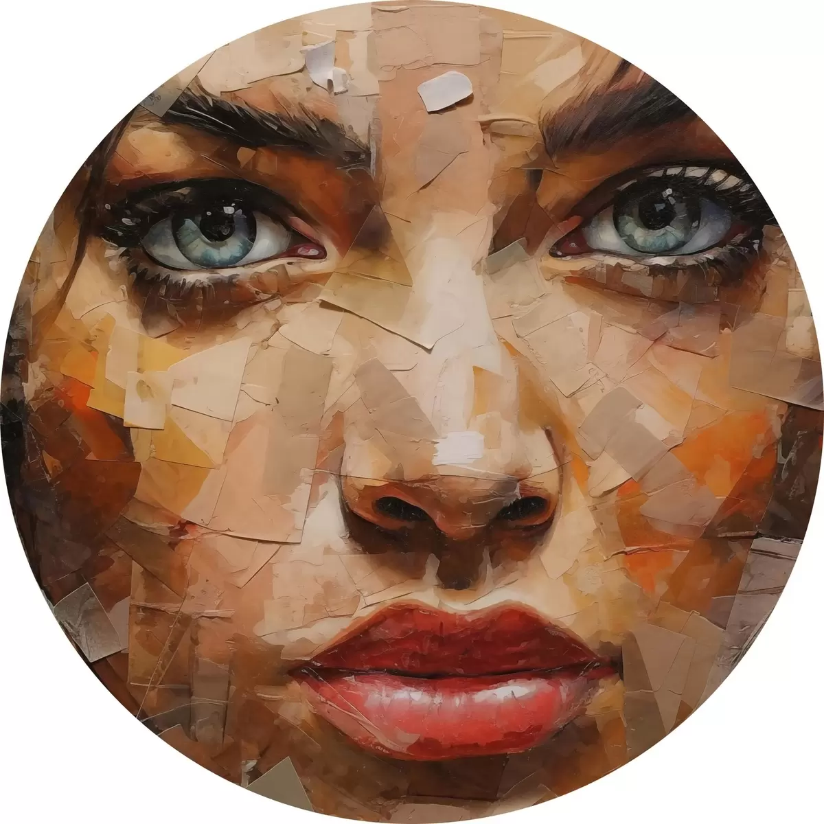 Ronde schilderijen Meisjesgezicht gemaakt van kranten r43467