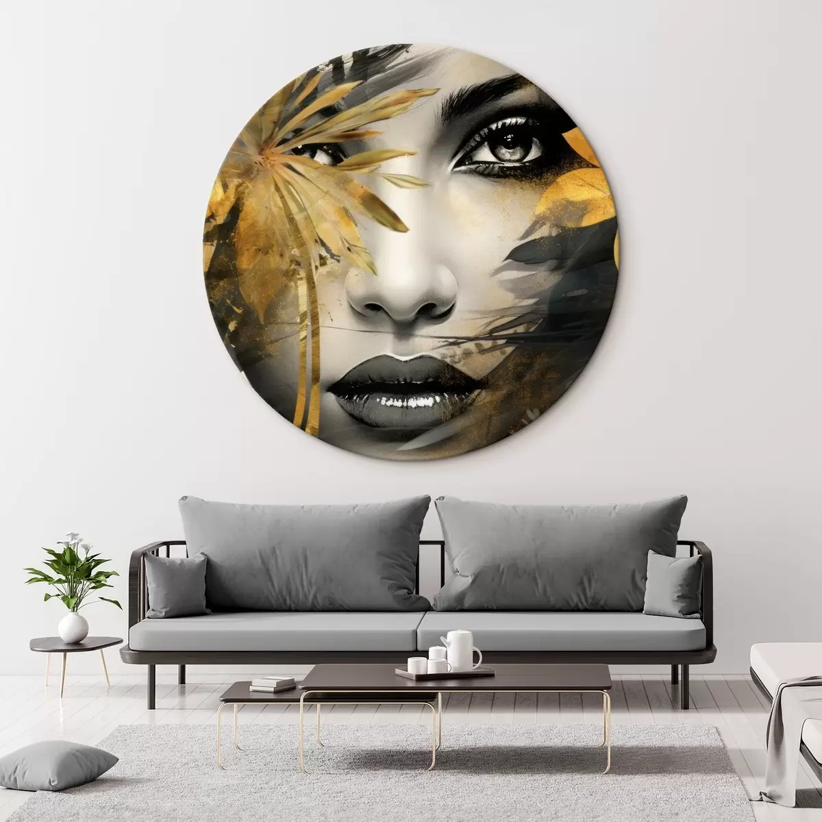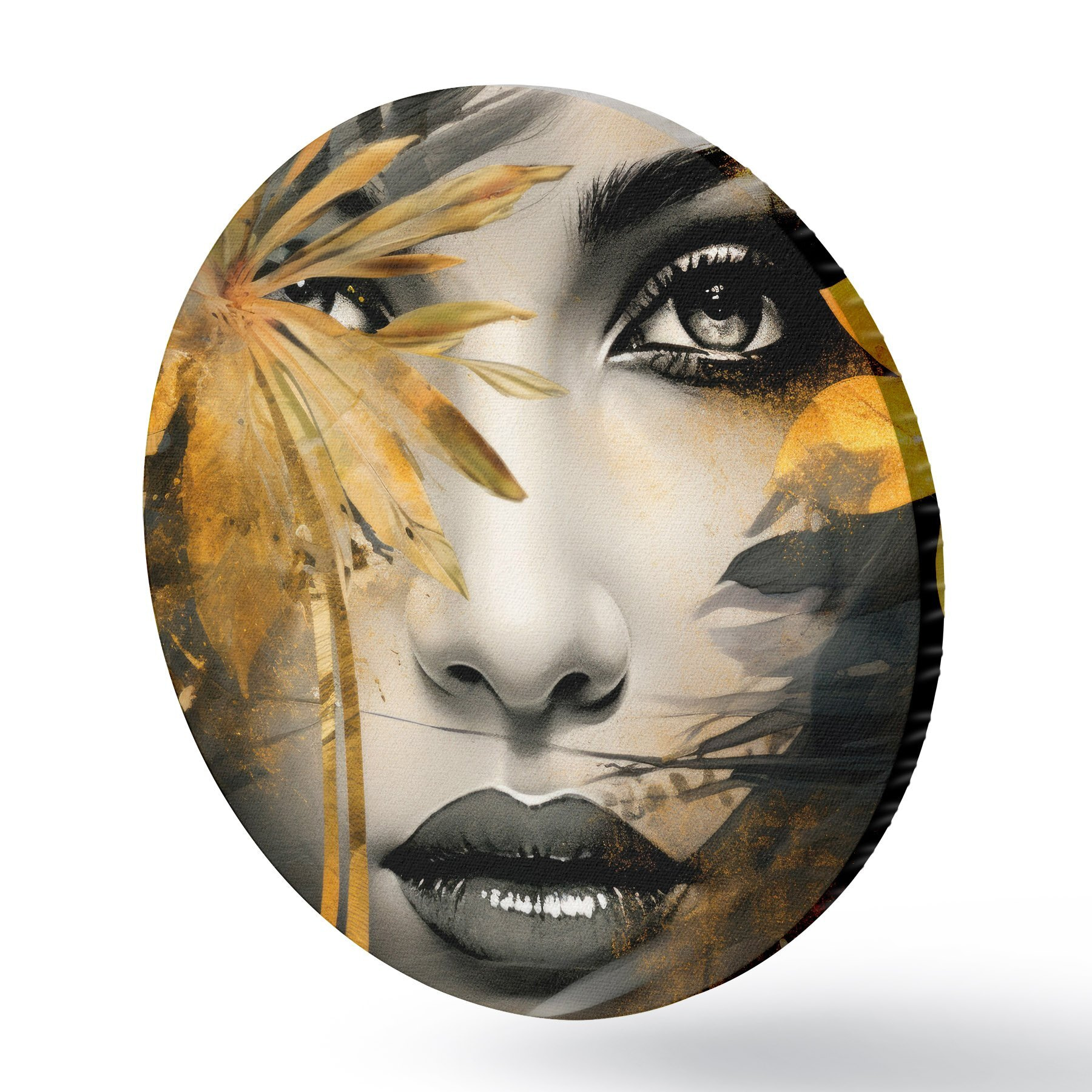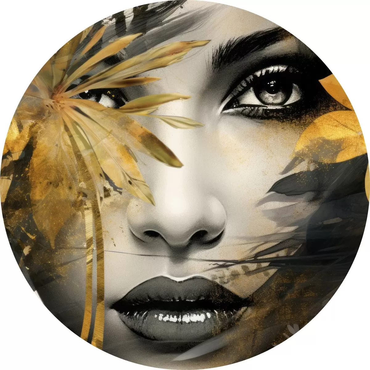 Ronde schilderijen Meisjesgezicht in handgeschilderde stijl r43469