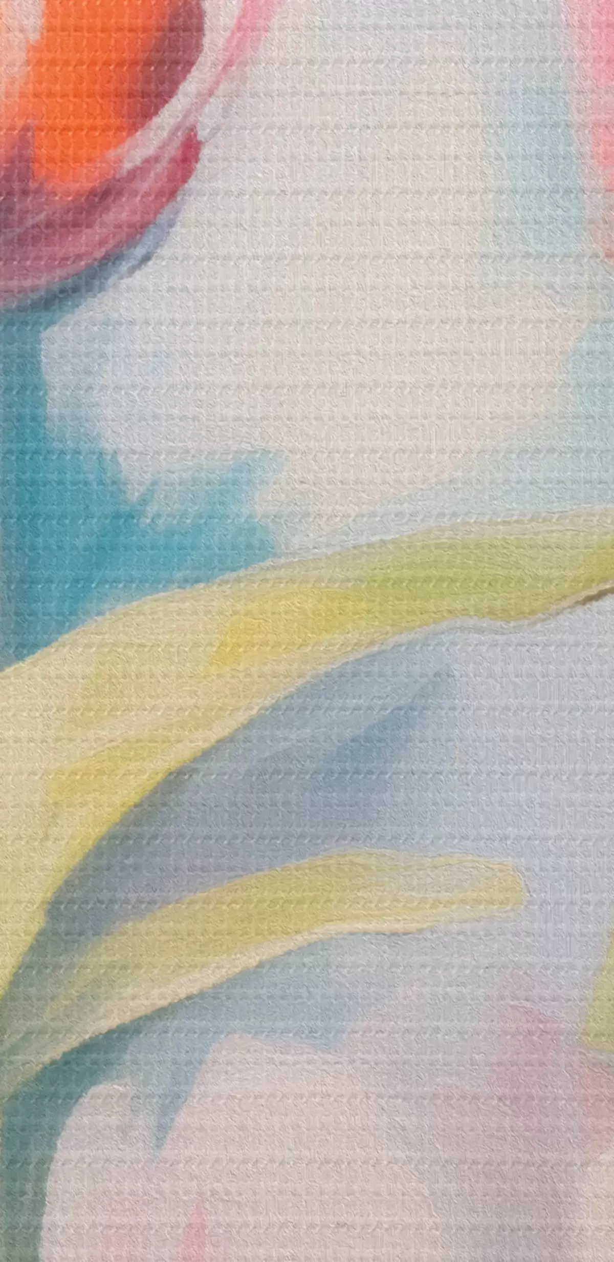 Het schilderij kan direct na ontvangst worden opgehangen. Het schilderij wordt opgespannen op een 2 cm breed houten spieraam.