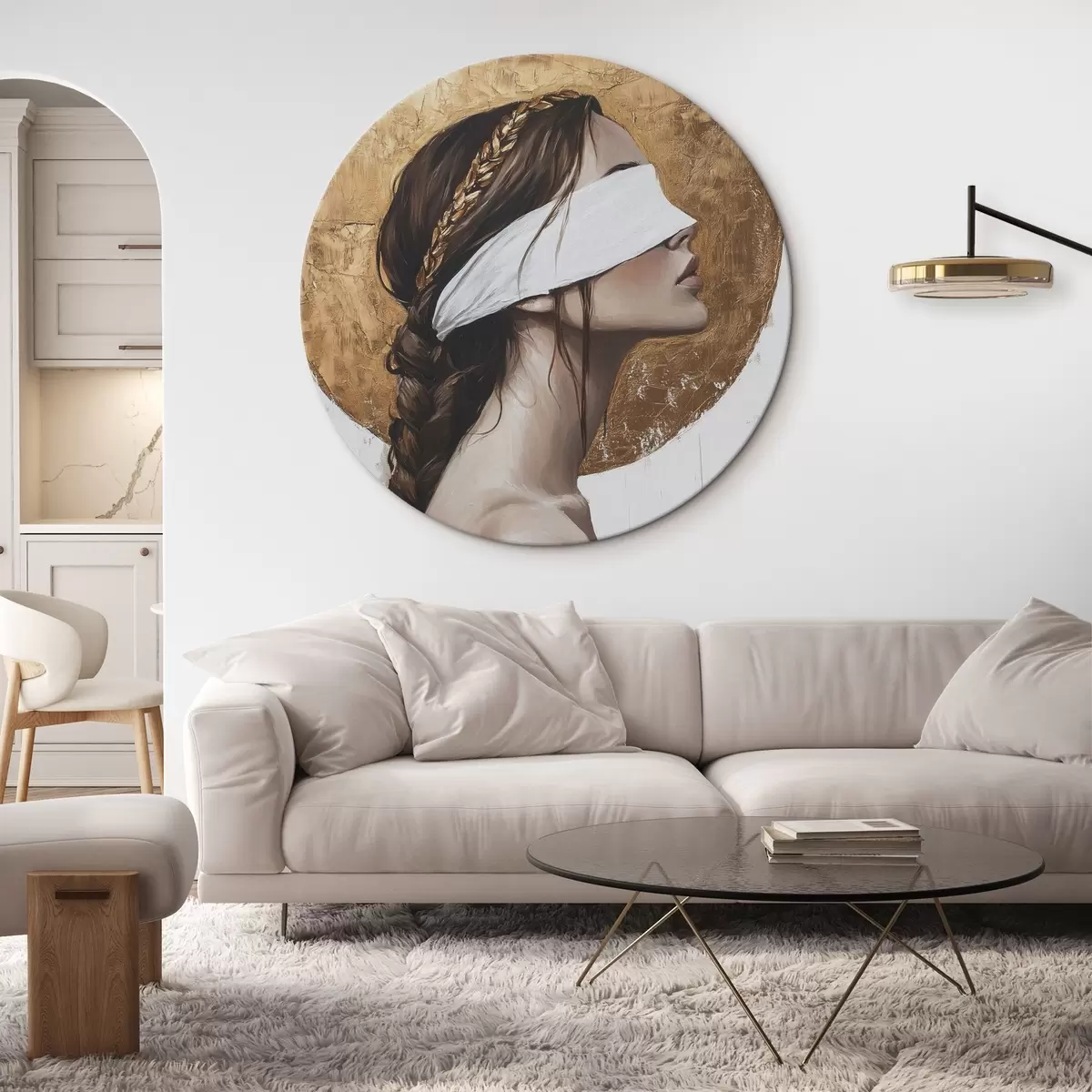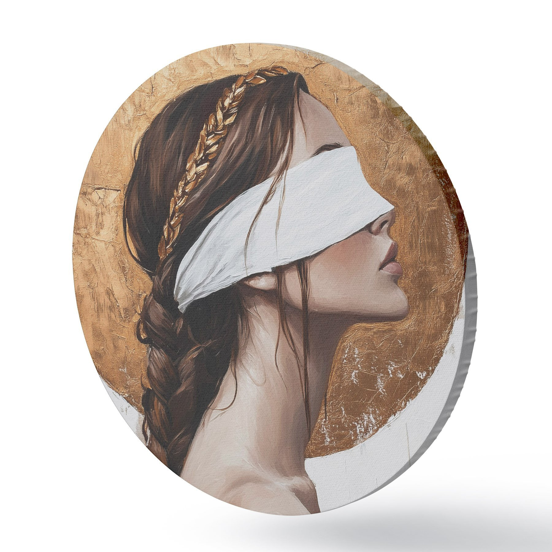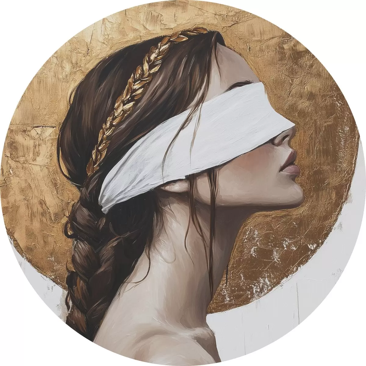 Ronde schilderijen Vrouw met verband om haar ogen, Griekenland, acrylstijl tekening r43502