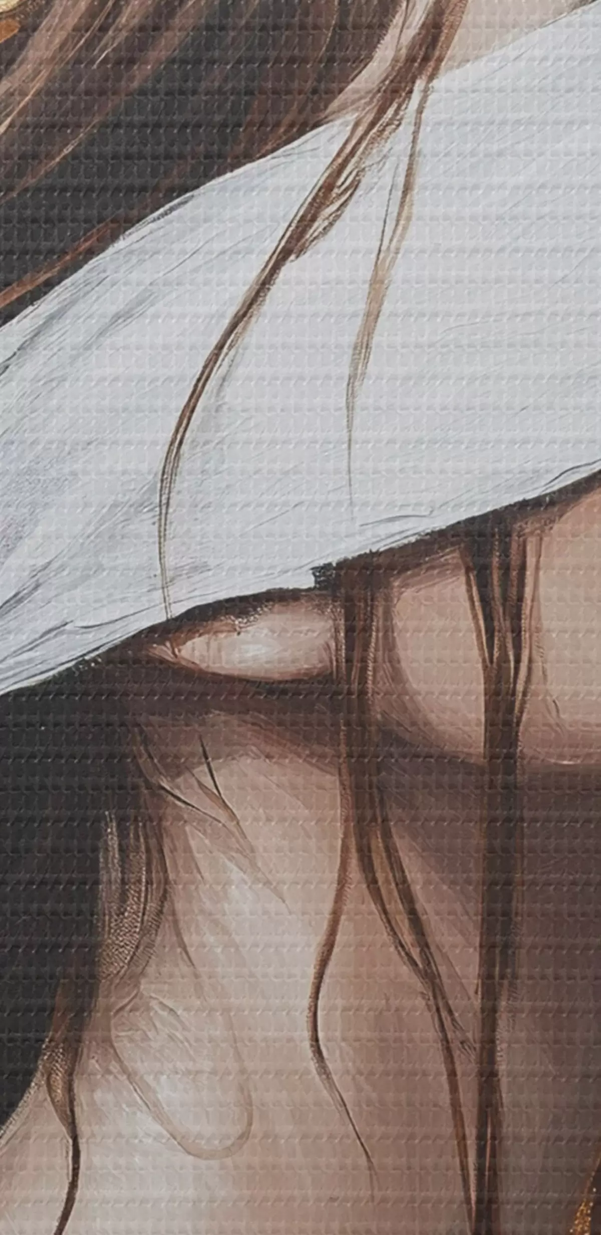 De fijne weving van draden op dit doek lijkt op het oppervlak van professionele schildersdoeken.
