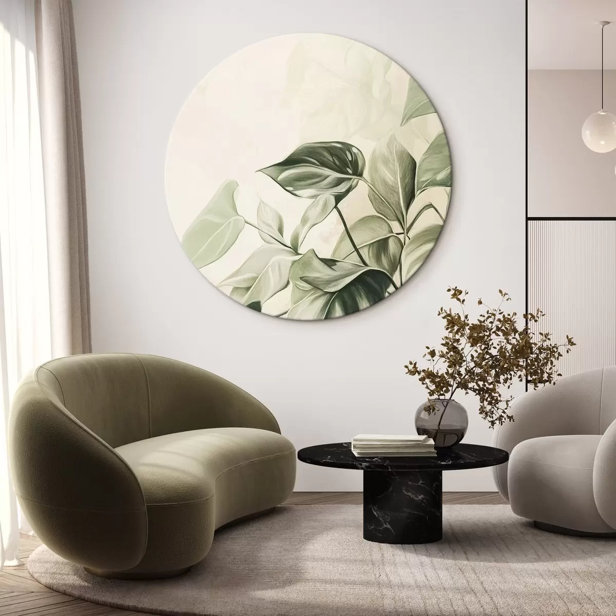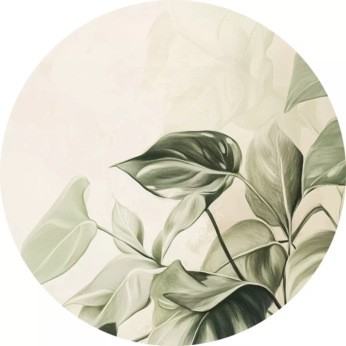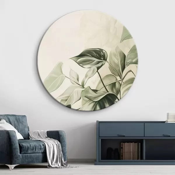 Ronde schilderijen Palmbladeren, potlood tekening, tropisch, groen r43509