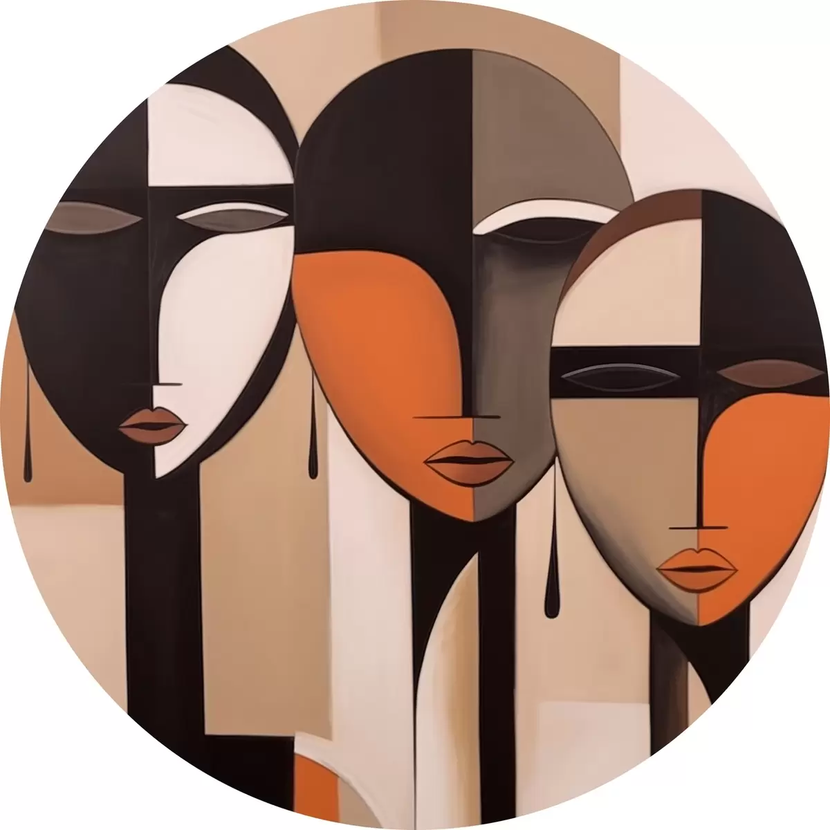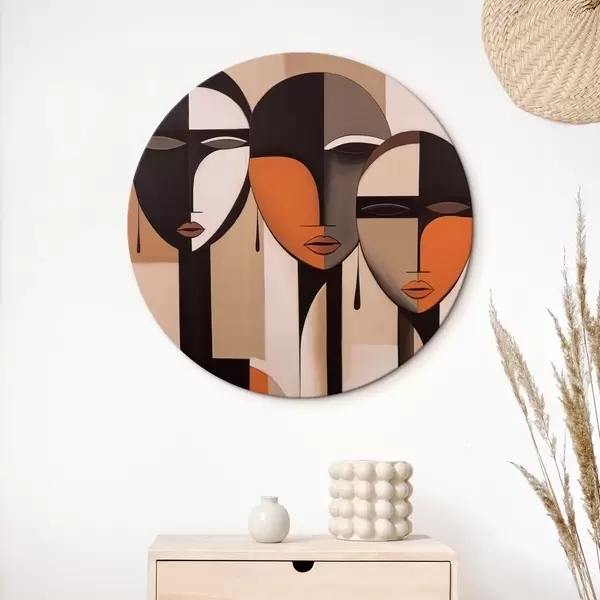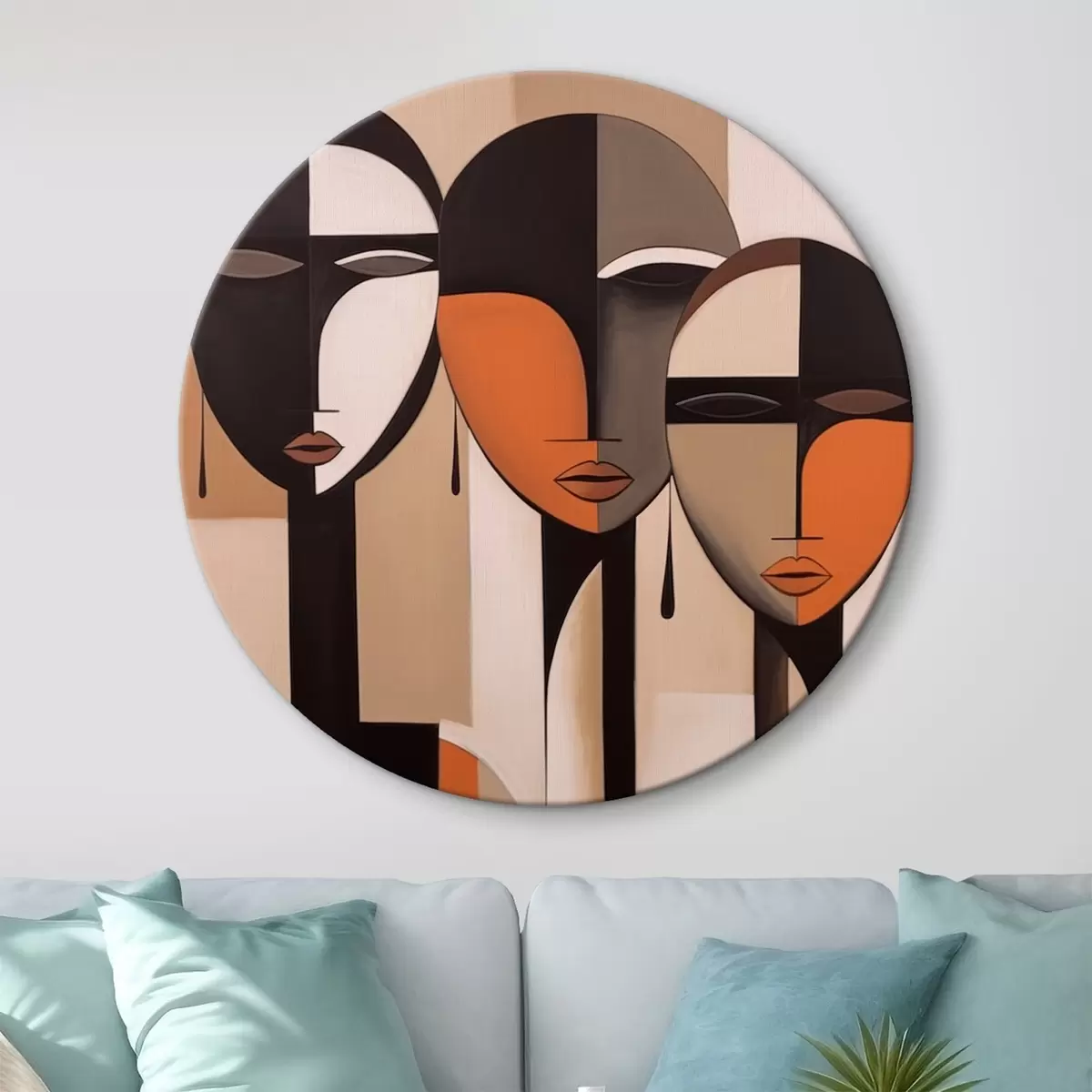 Ronde schilderijen Abstracte gezichten in harmonieuze kleuren r43525