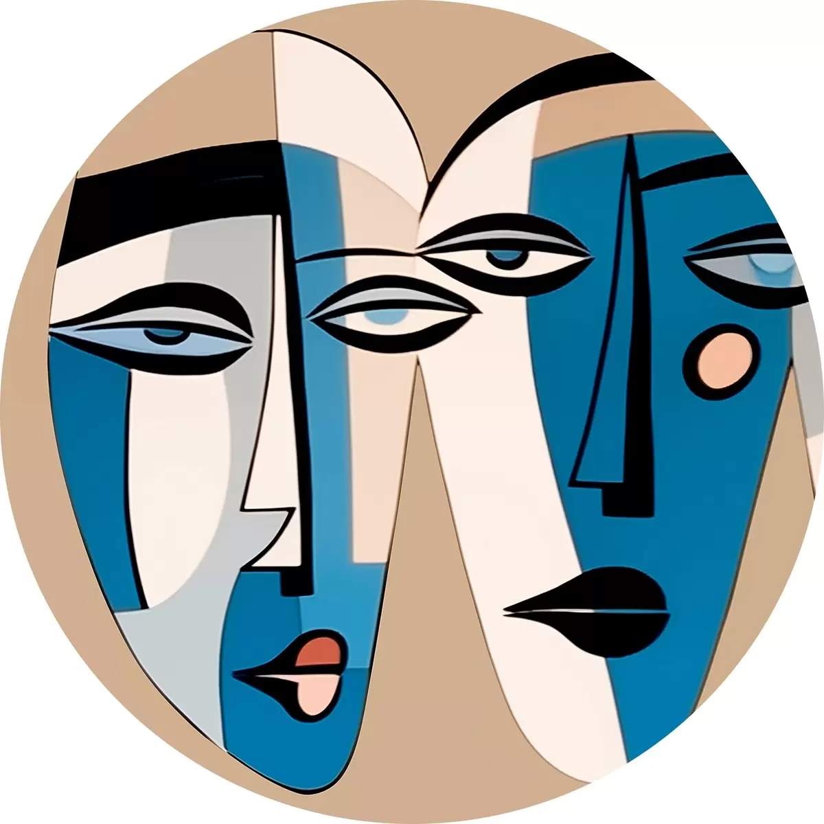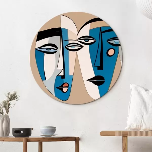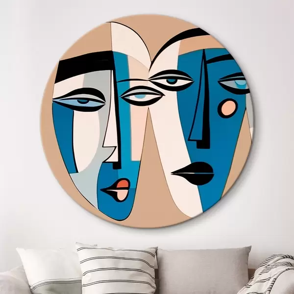 Ronde schilderijen Abstract portret van een kat in geometrische stijl r43526