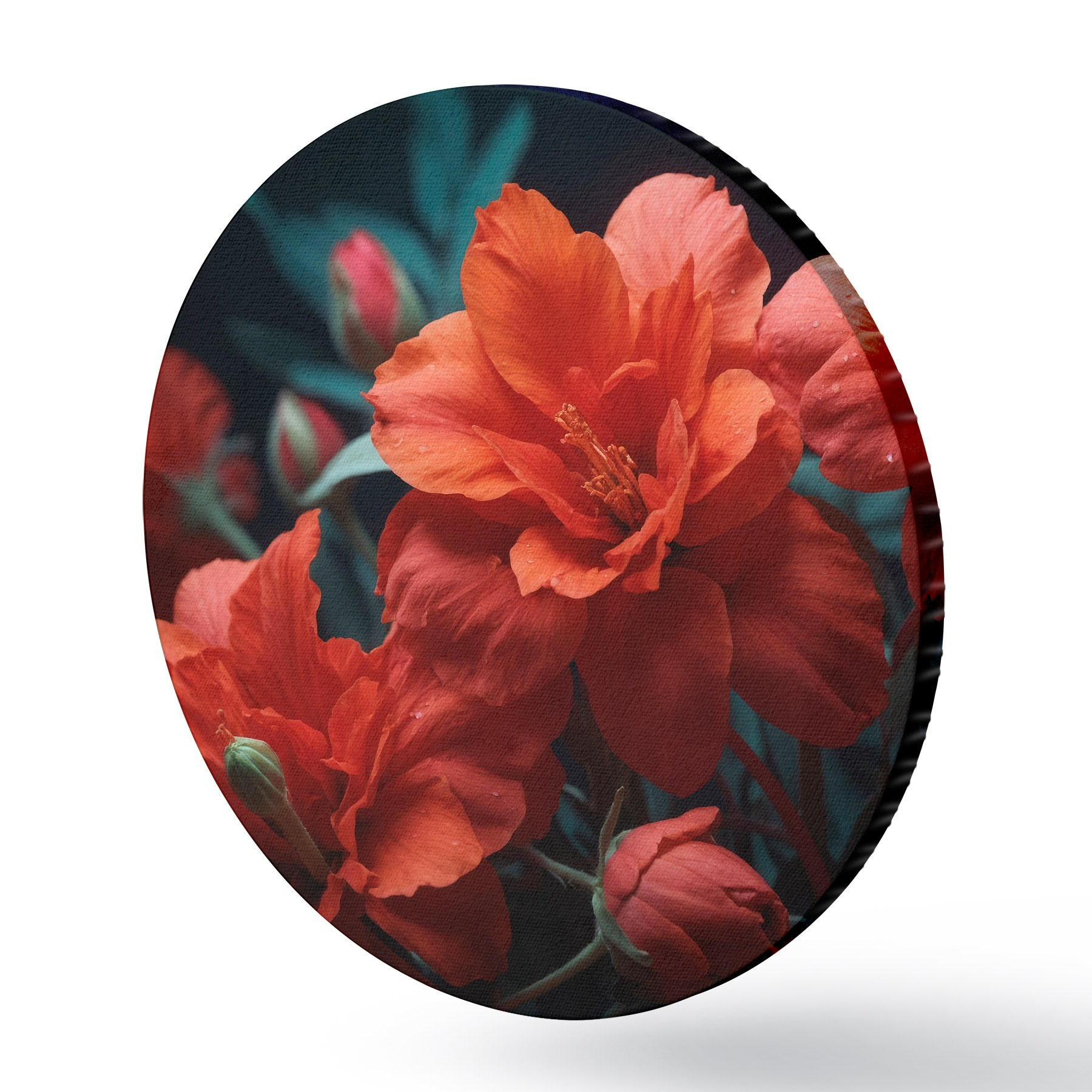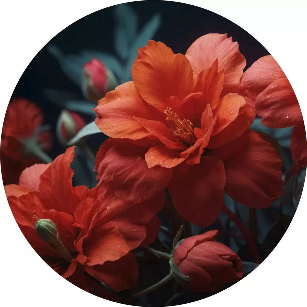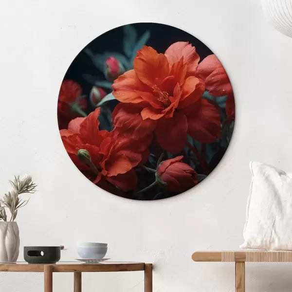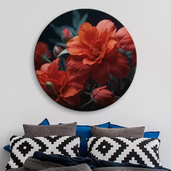 Ronde schilderijen Rode bloemen op donkere achtergrond r43877